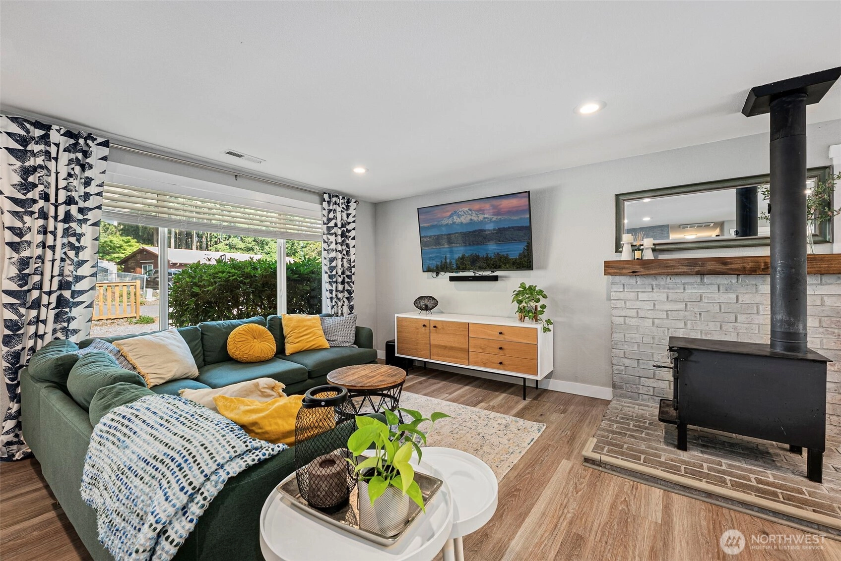 Welcome to this charming rambler—perfect for a first home or downsizing! Move-in ready with fresh updates, this energy-efficient home features stylish paint, updated laminate flooring, newer windows, and a cozy wood-burning stove for chilly nights. The extra finished room creates a spacious primary retreat. Outside, enjoy a sunny, fully fenced backyard with room to garden and relax in privacy—all just minutes from the Cedar River Trail.