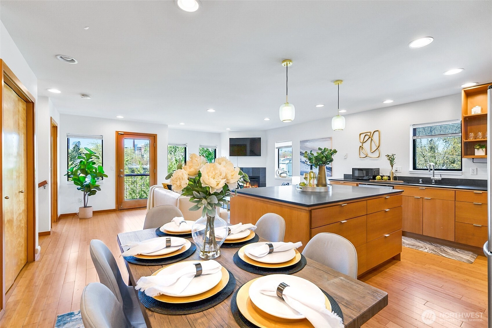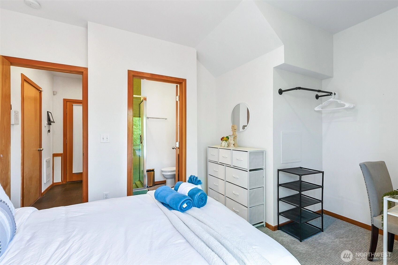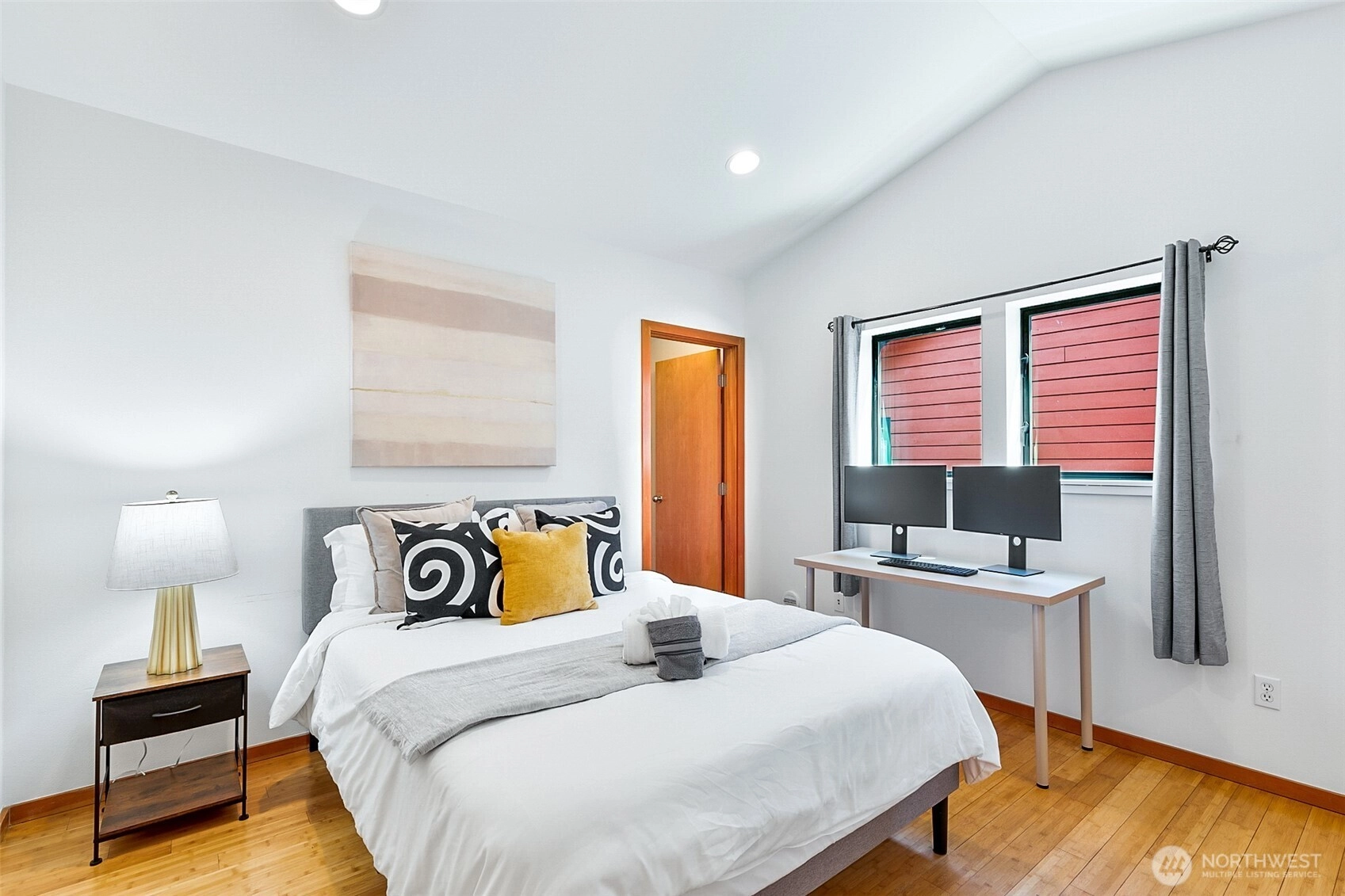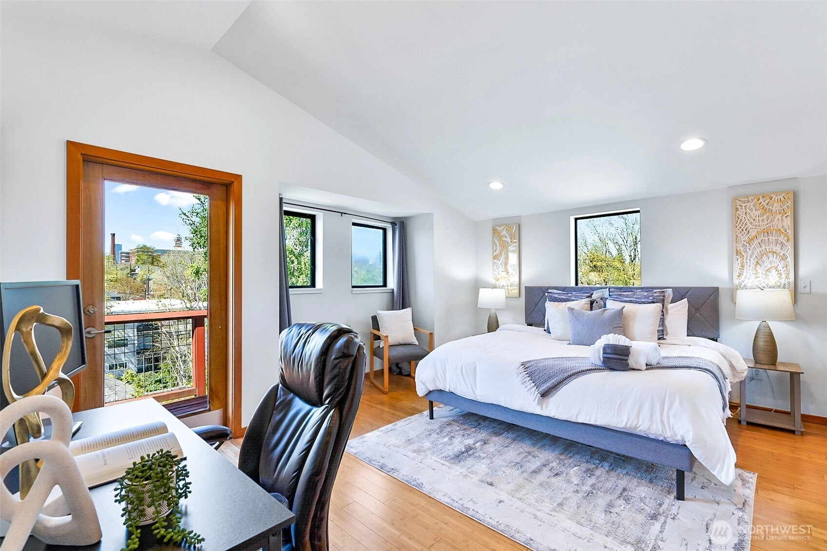 Nestled in the heart of Seattle’s vibrant Central District, this stylish townhome delivers modern comfort, rare convenience, and unmatched luxury—each bedroom features its own ensuite bathroom, a true rarity! The open main floor boasts a sleek kitchen with gas stove, slab countertops, island seating, and a spacious living area with gas fireplace, plus a deck perfect for BBQs. Upstairs, vaulted ceilings elevate both bedrooms, with the primary suite offering a private balcony and city views. The lower-level guest suite opens to a fenced yard and second deck—ideal for tea time while you relax with your favorite book. Enjoy an attached garage, no HOA dues, Airbnb-friendly, and pet-welcoming. Near parks and restaurants ! STAGING REMOVED.