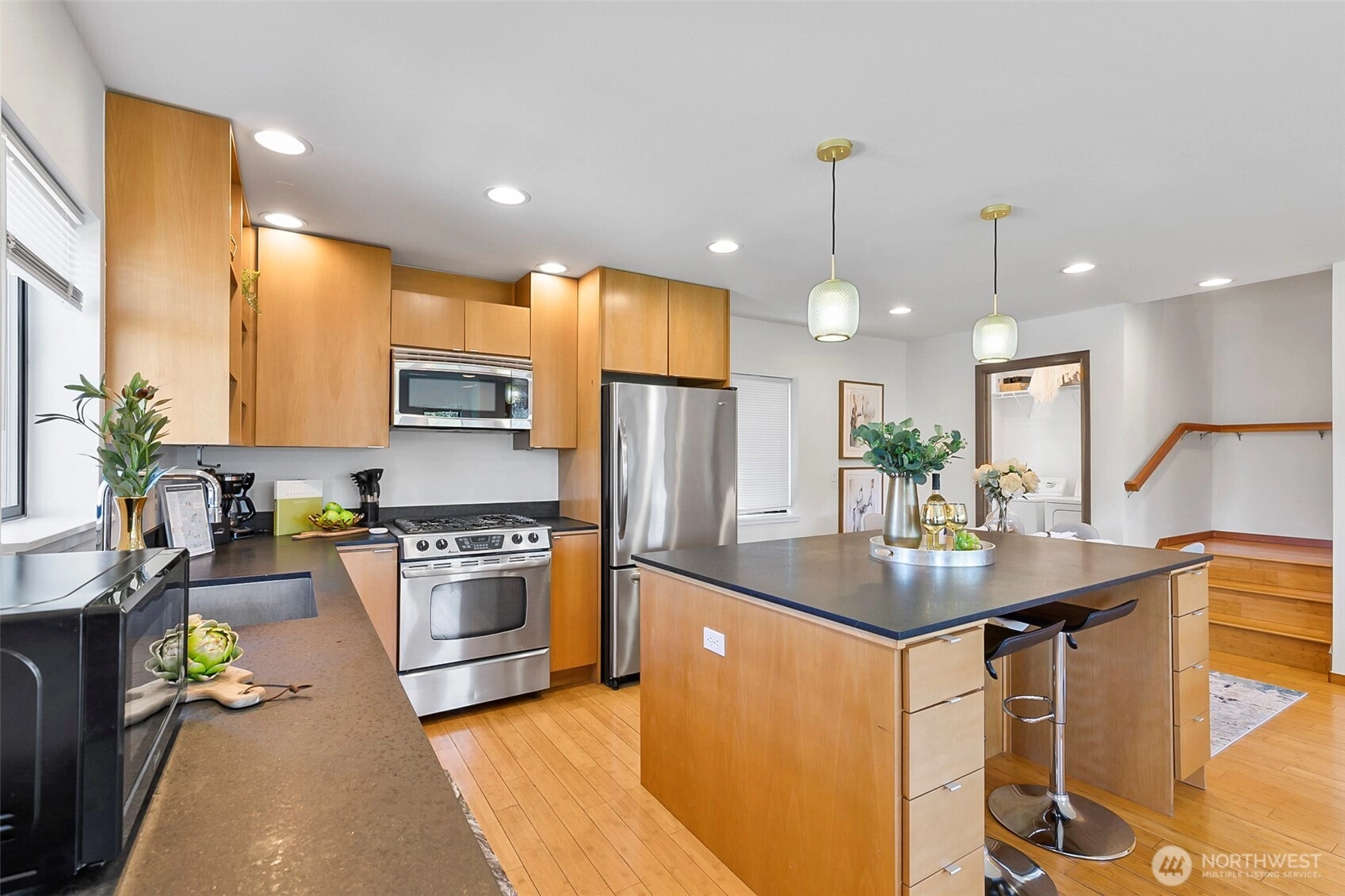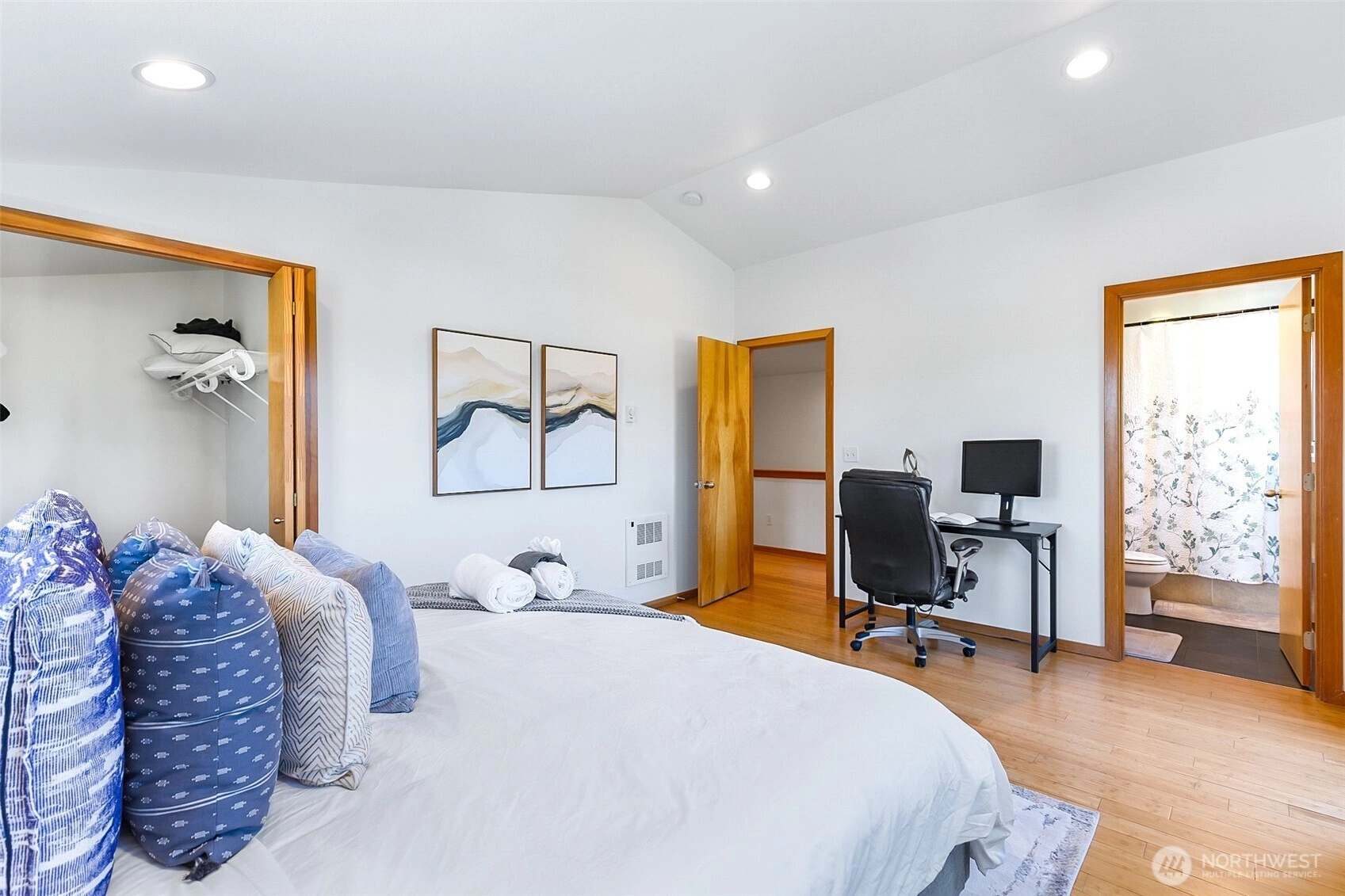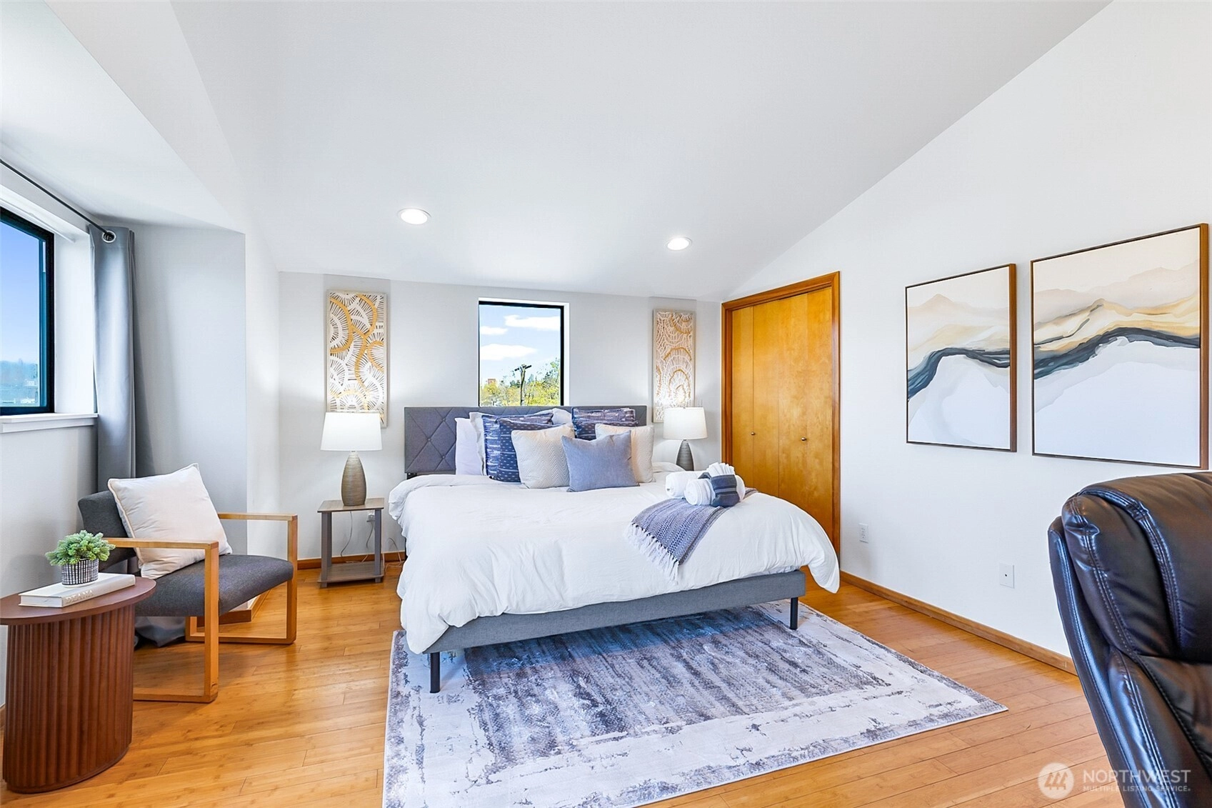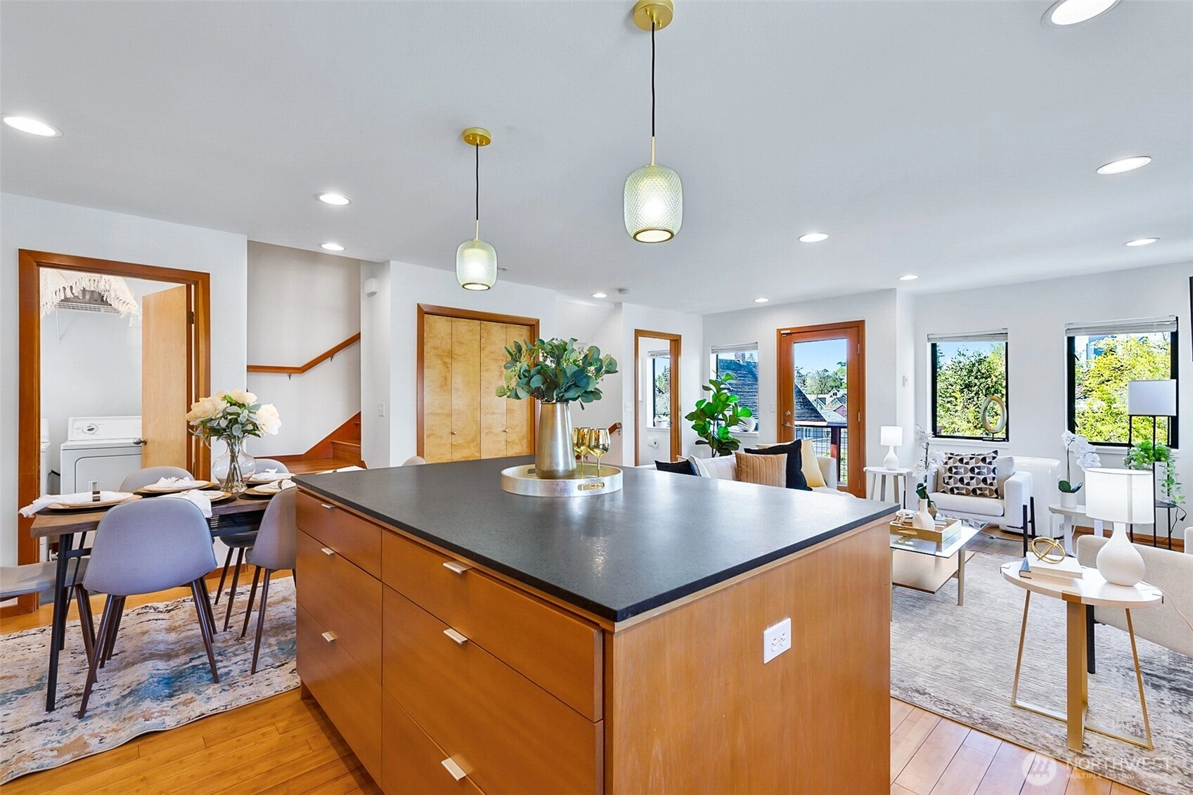 Nestled in the heart of Seattle’s vibrant Central District, this stylish townhome delivers modern comfort, rare convenience, and unmatched luxury—each bedroom features its own ensuite bathroom, a true rarity! The open main floor boasts a sleek kitchen with gas stove, slab countertops, island seating, and a spacious living area with gas fireplace, plus a deck perfect for BBQs. Upstairs, vaulted ceilings elevate both bedrooms, with the primary suite offering a private balcony and city views. The lower-level guest suite opens to a fenced yard and second deck—ideal for tea time while you relax with your favorite book. Enjoy an attached garage, no HOA dues, Airbnb-friendly, and pet-welcoming. Near parks and restaurants ! STAGING REMOVED.