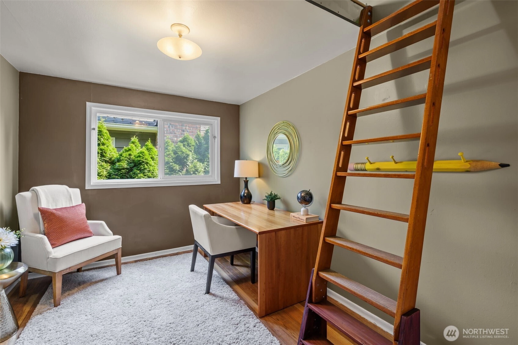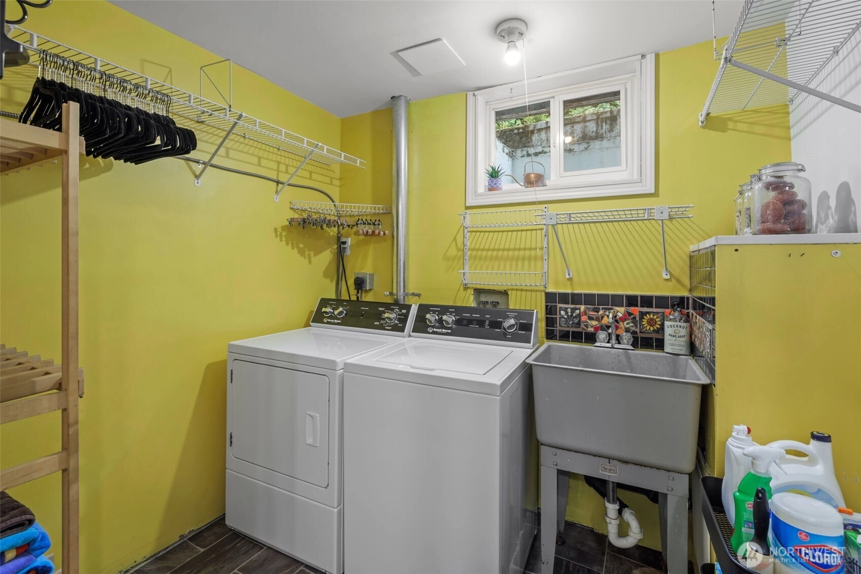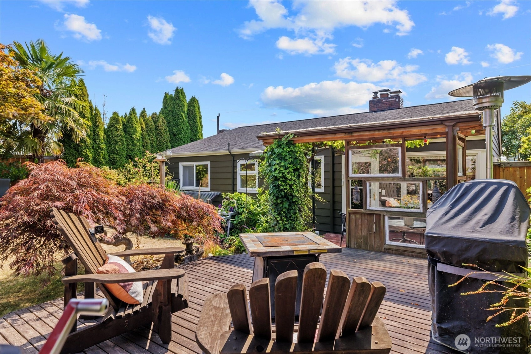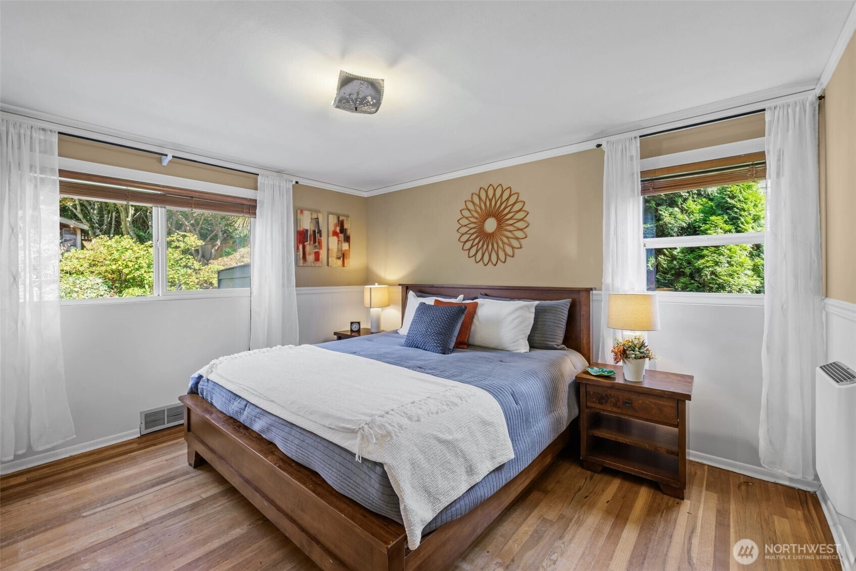 This enchanting Sunset Hill home blends timeless character with thoughtful updates. The main floor features a circular floor plan: light-filled living room which flows effortlessly into a well-appointed kitchen, breakfast nook, and formal dining followed by two guest bedrooms and one primary bedroom along with a full bath. The lower level offers a flexible fourth bedroom, 3/4 bath, utility and bonus rooms, and potential to be reimagined as a separate ADU or multi-generational living. A large, extended garage provides additional storage, workshop options. Outdoors, the landscaped grounds create a serene retreat. Ideally situated in a friendly, walkable neighborhood with many amenities: minutes from Golden Gardens, Shilshole Marina, and more!