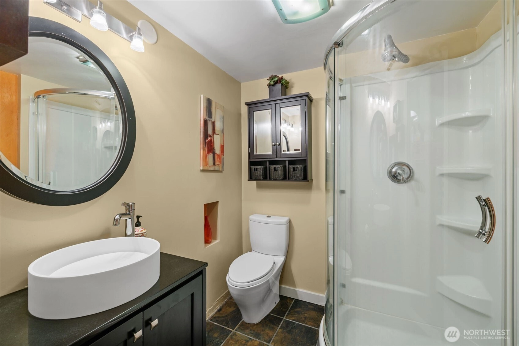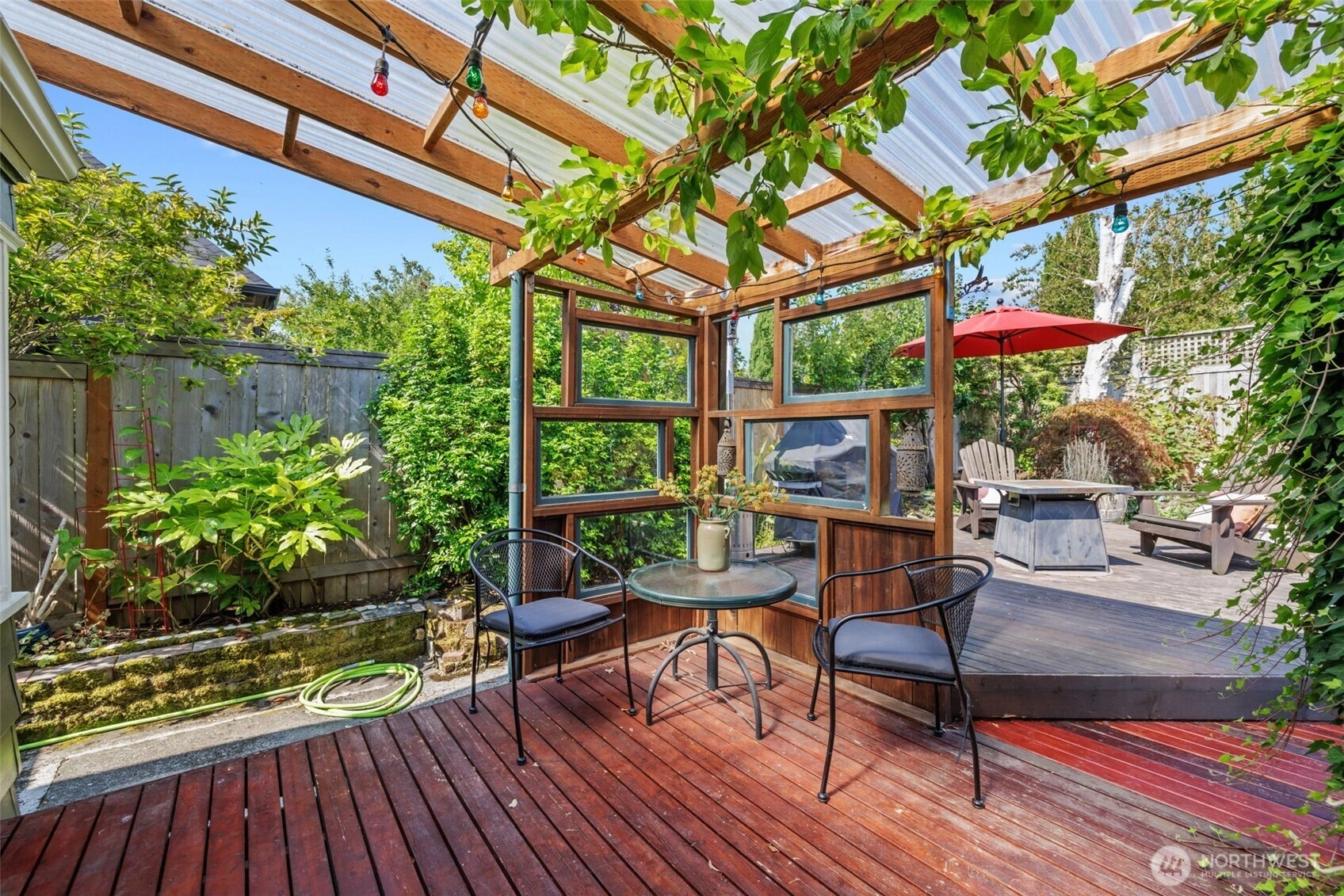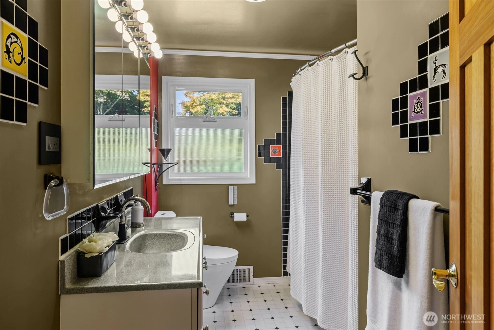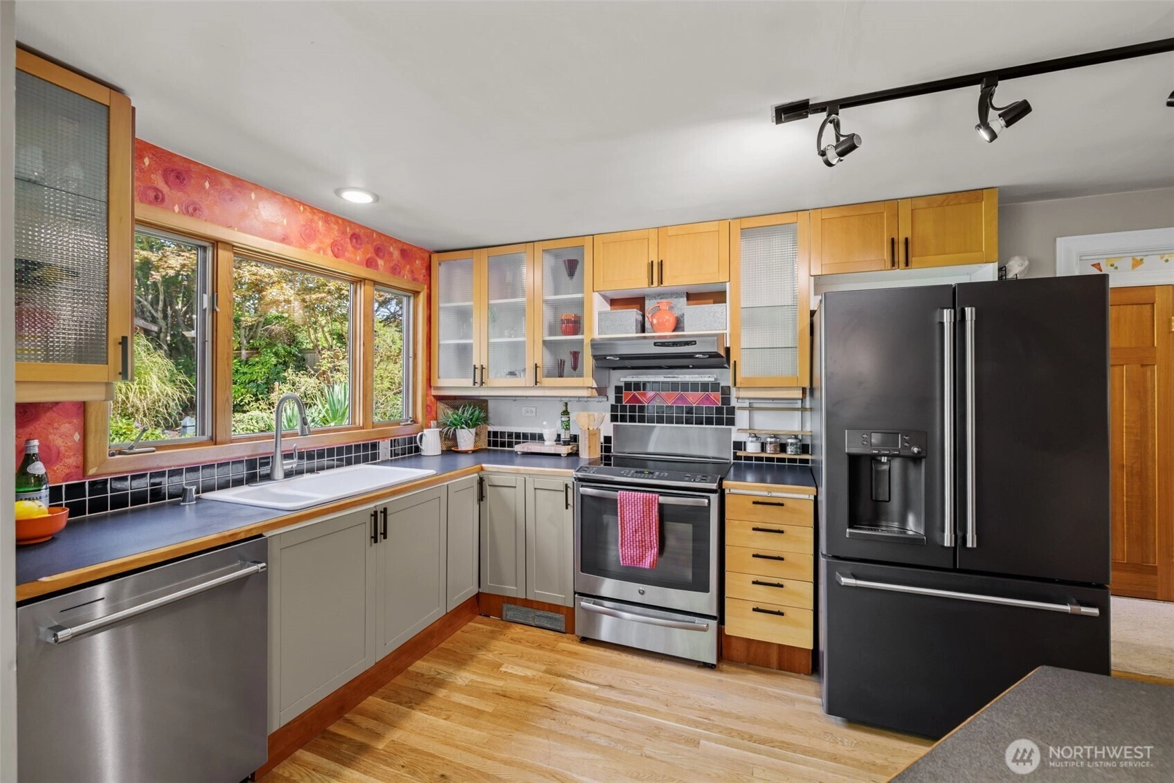 This enchanting Sunset Hill home blends timeless character with thoughtful updates. The main floor features a circular floor plan: light-filled living room which flows effortlessly into a well-appointed kitchen, breakfast nook, and formal dining followed by two guest bedrooms and one primary bedroom along with a full bath. The lower level offers a flexible fourth bedroom, 3/4 bath, utility and bonus rooms, and potential to be reimagined as a separate ADU or multi-generational living. A large, extended garage provides additional storage, workshop options. Outdoors, the landscaped grounds create a serene retreat. Ideally situated in a friendly, walkable neighborhood with many amenities: minutes from Golden Gardens, Shilshole Marina, and more!