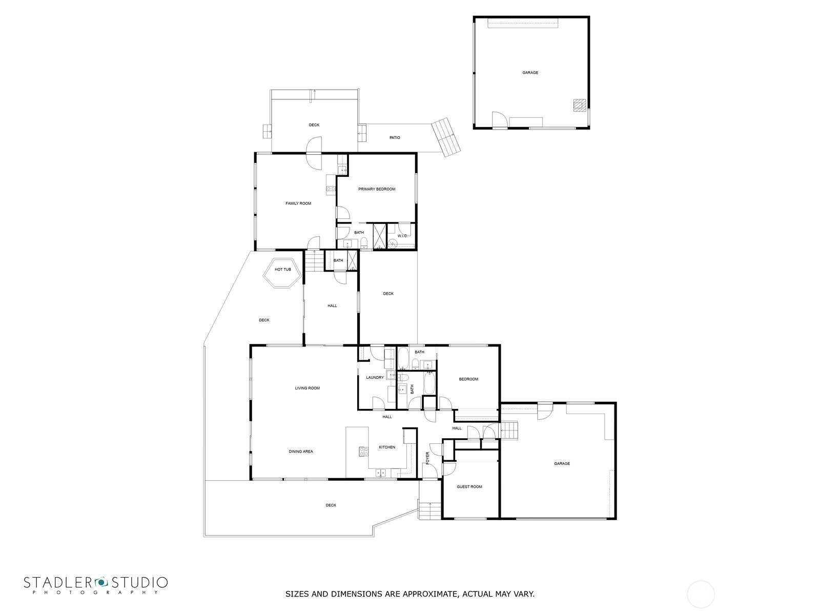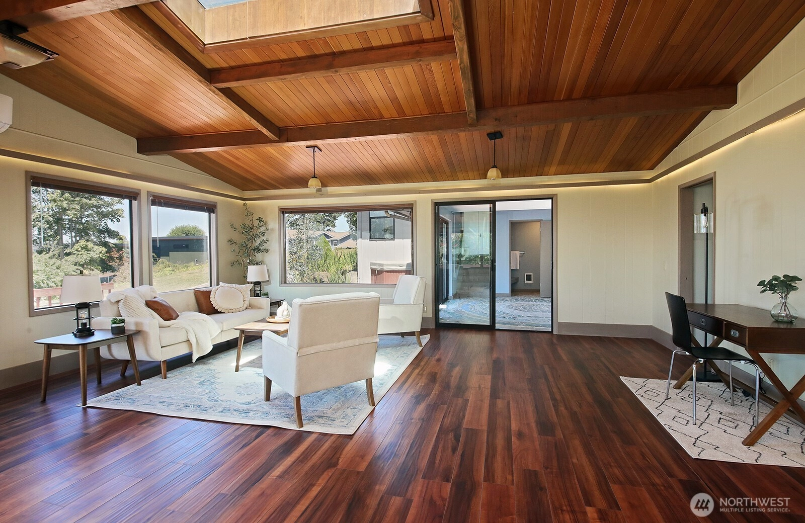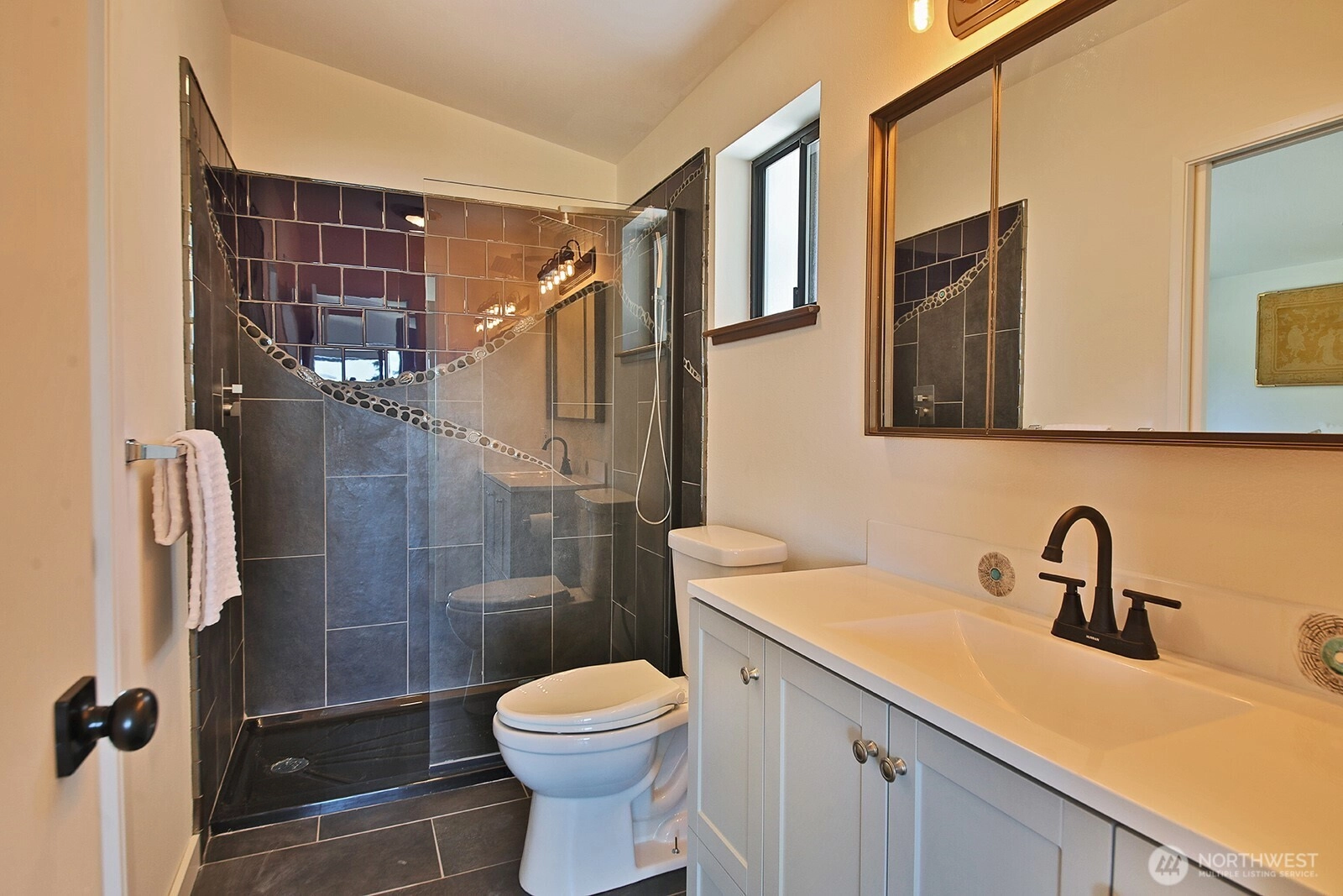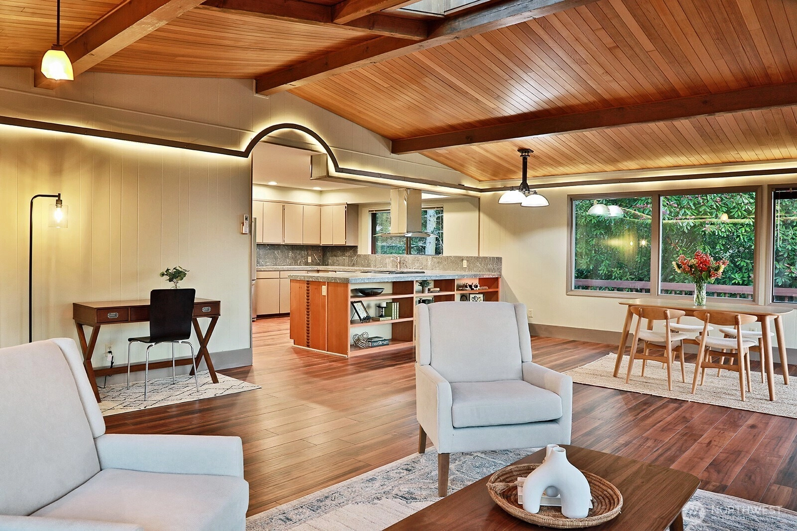 Perfectly perched with sweeping Western views of the Sound and Majestic Olympics, this one-level, mid-century home has been remodeled to maximize your view. Enjoy the rare combination of privacy and spaciousness that typically comes with acreage properties. Possibilities live Big with over 3/4 of an acre of mature landscaping an expansive entertaining deck, a spacious backyard, two driveways, a garage and a shop! Your kitchen & Primary bath have been updated with marble countertops & custom tile work, new flooring throughout most of the home and ductless mini-splits, too! The Primary Suite can easily live as a separate guest space with great potential for rental income. Enjoy beach & boat access at nearby Bush Point. Welcome to Whidbey!