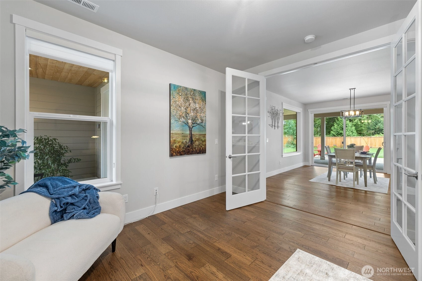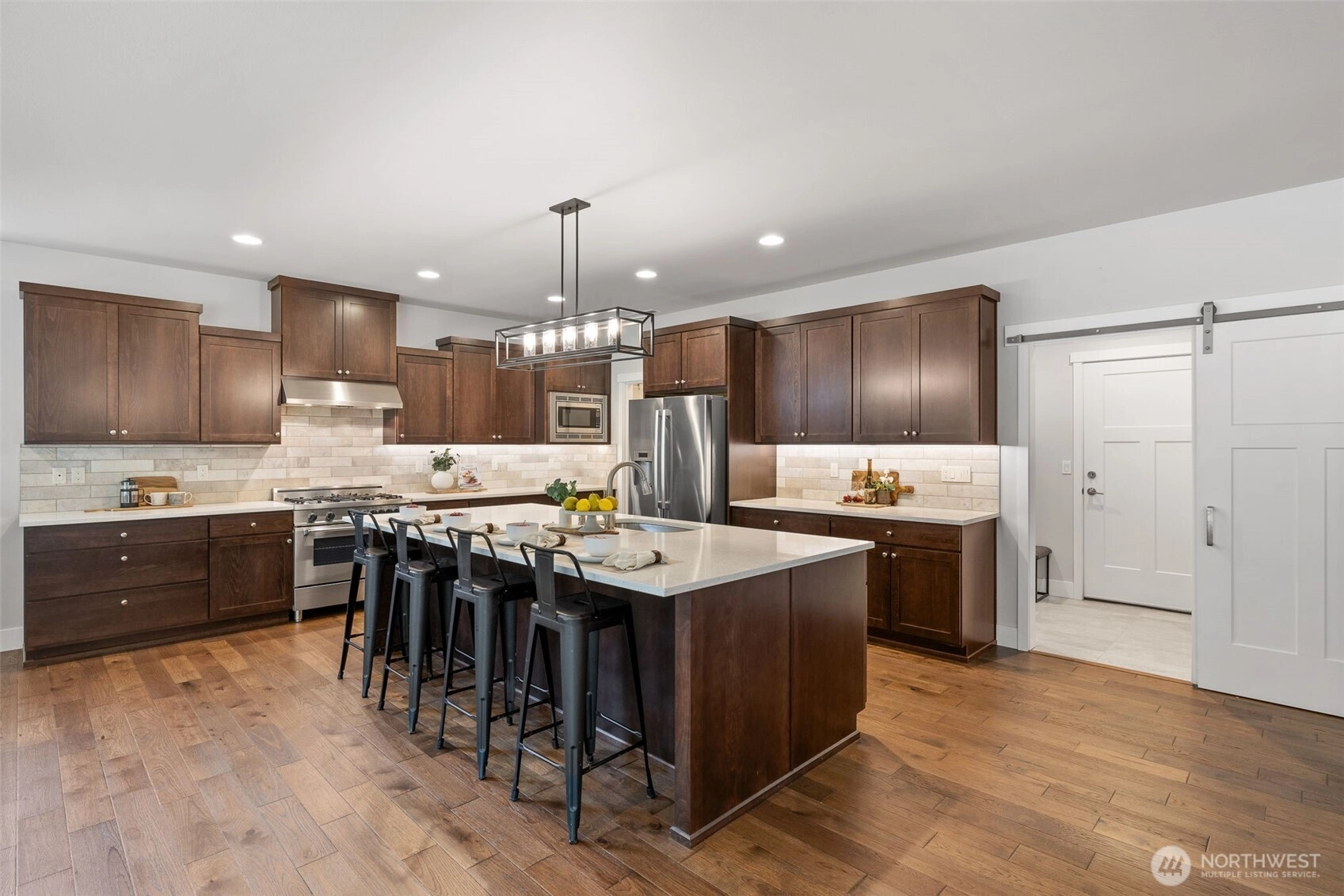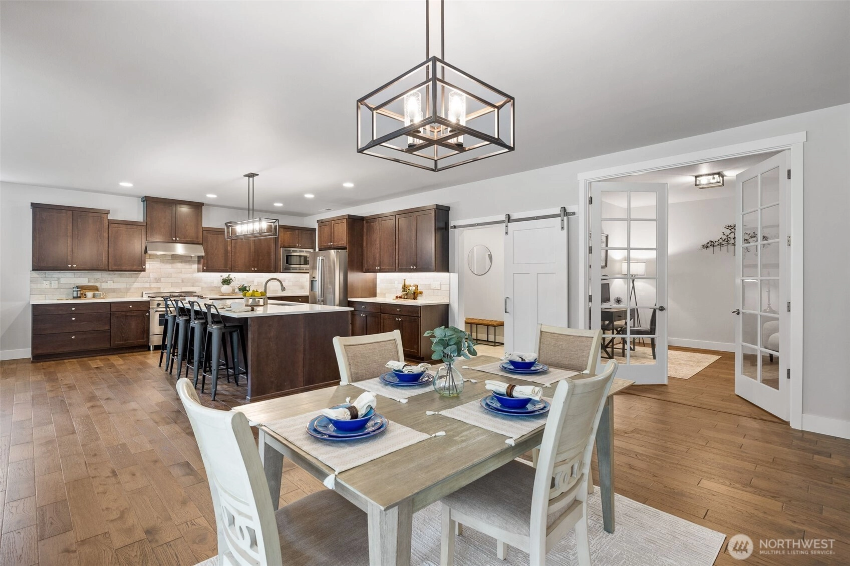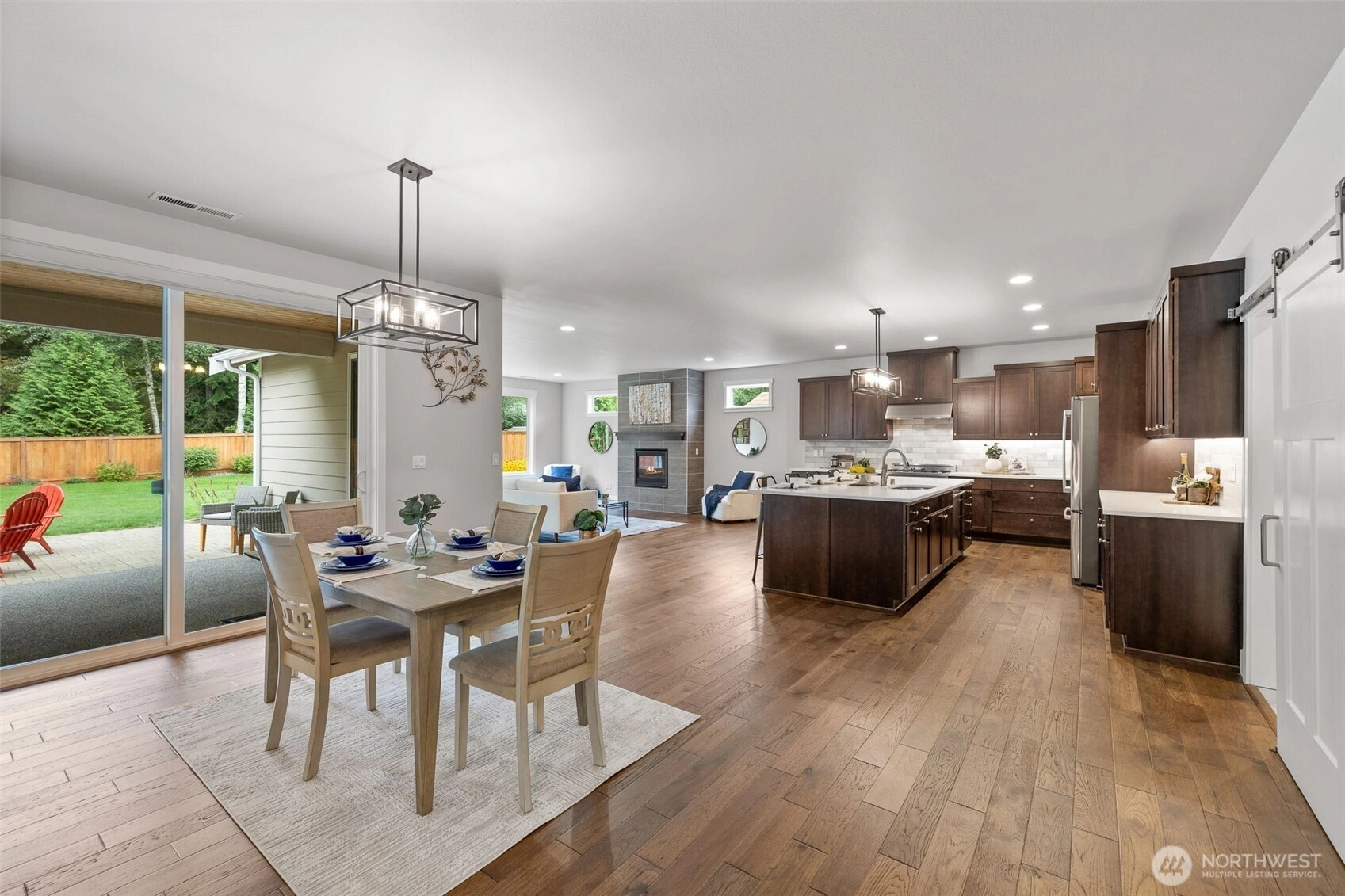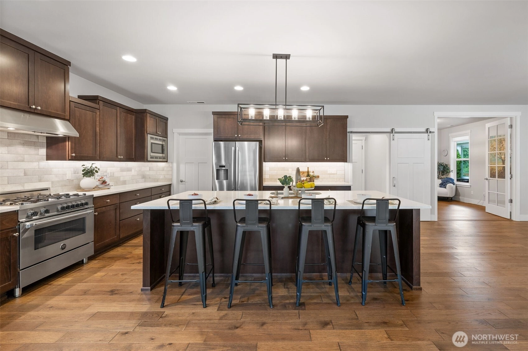 Beautiful rambler in desirable community of Kaiana Meadows. Bordering Echo Falls of Snohomish, the grand double door foyer entry to an exceptional 3201sqft floor plan features spacious Great Room, 4 bdrms (1 en-suite/2nd primary) + office & 3.5 baths. Gourmet kitchen w/premium Bertazzoni Range, expansive island, wonderful cabinetry & walk-in pantry. Primary suite exudes luxury w/large, stunning walk-in shower + 2 walk-in closets. Private & expansive covered back patio w/flat/fully fenced south facing backyard w/room to play, backing to dedicated community greenspace. Large utility room off 3 car garage + RV/toy parking & shed for your tools. This exceptional, quiet dead-end street is located close to Duvall/Woodinville & Eastside amenities.