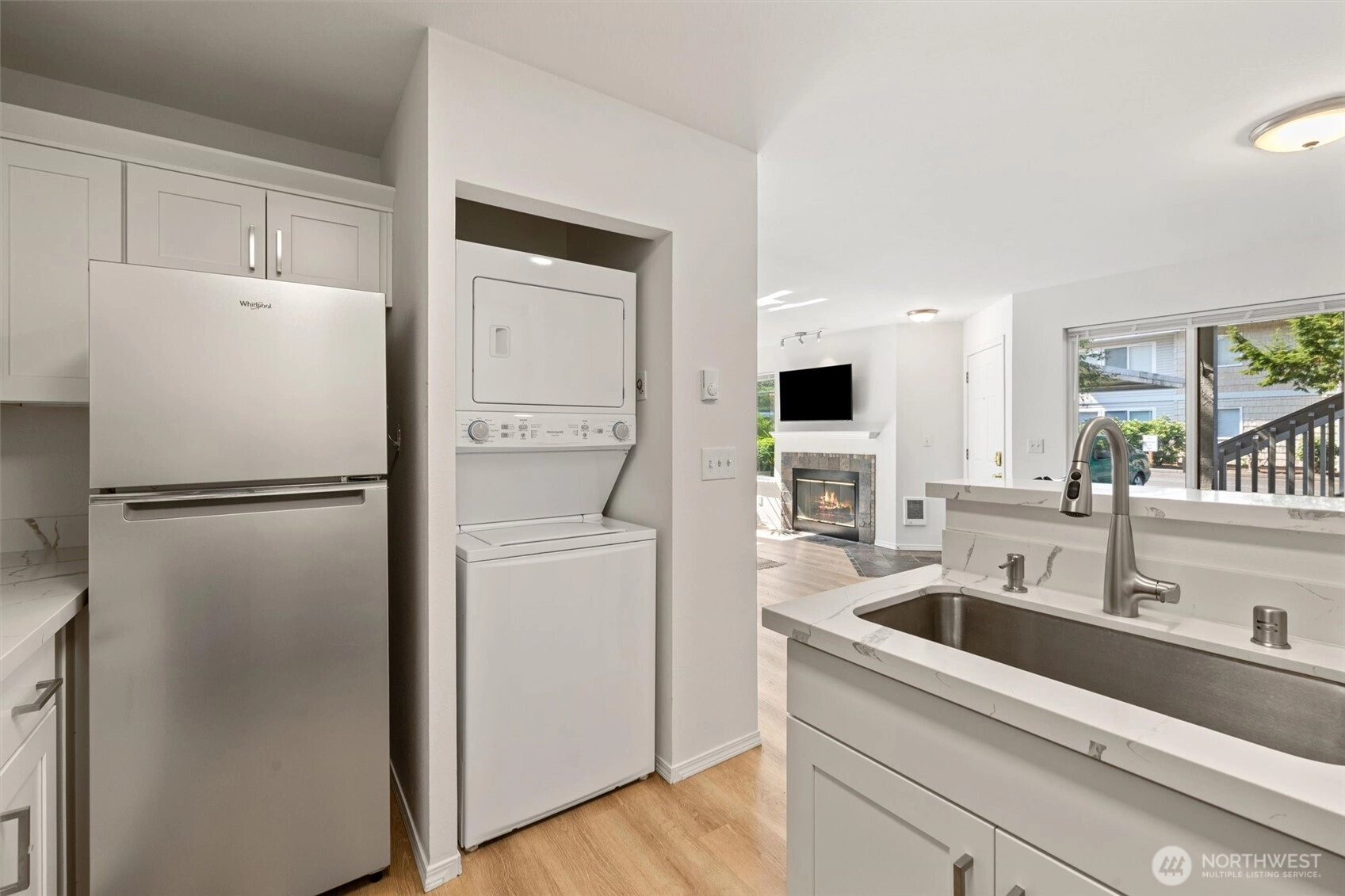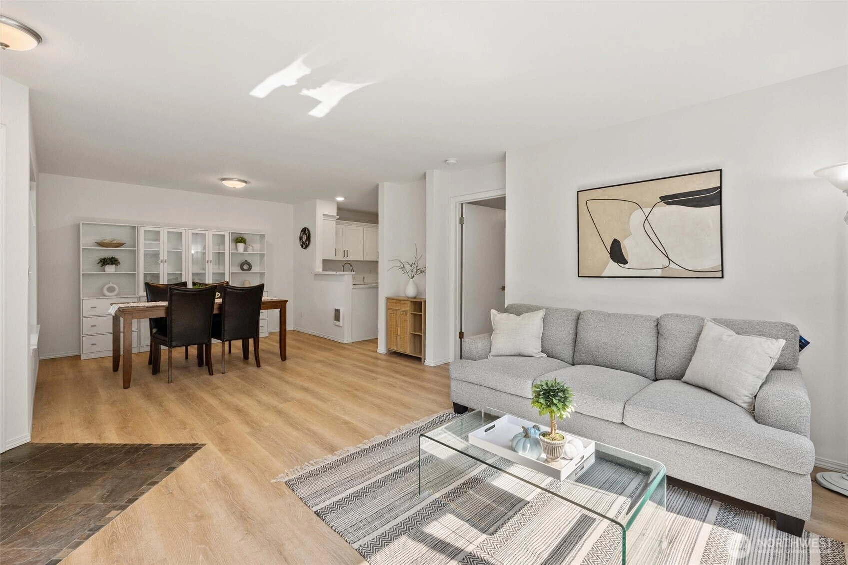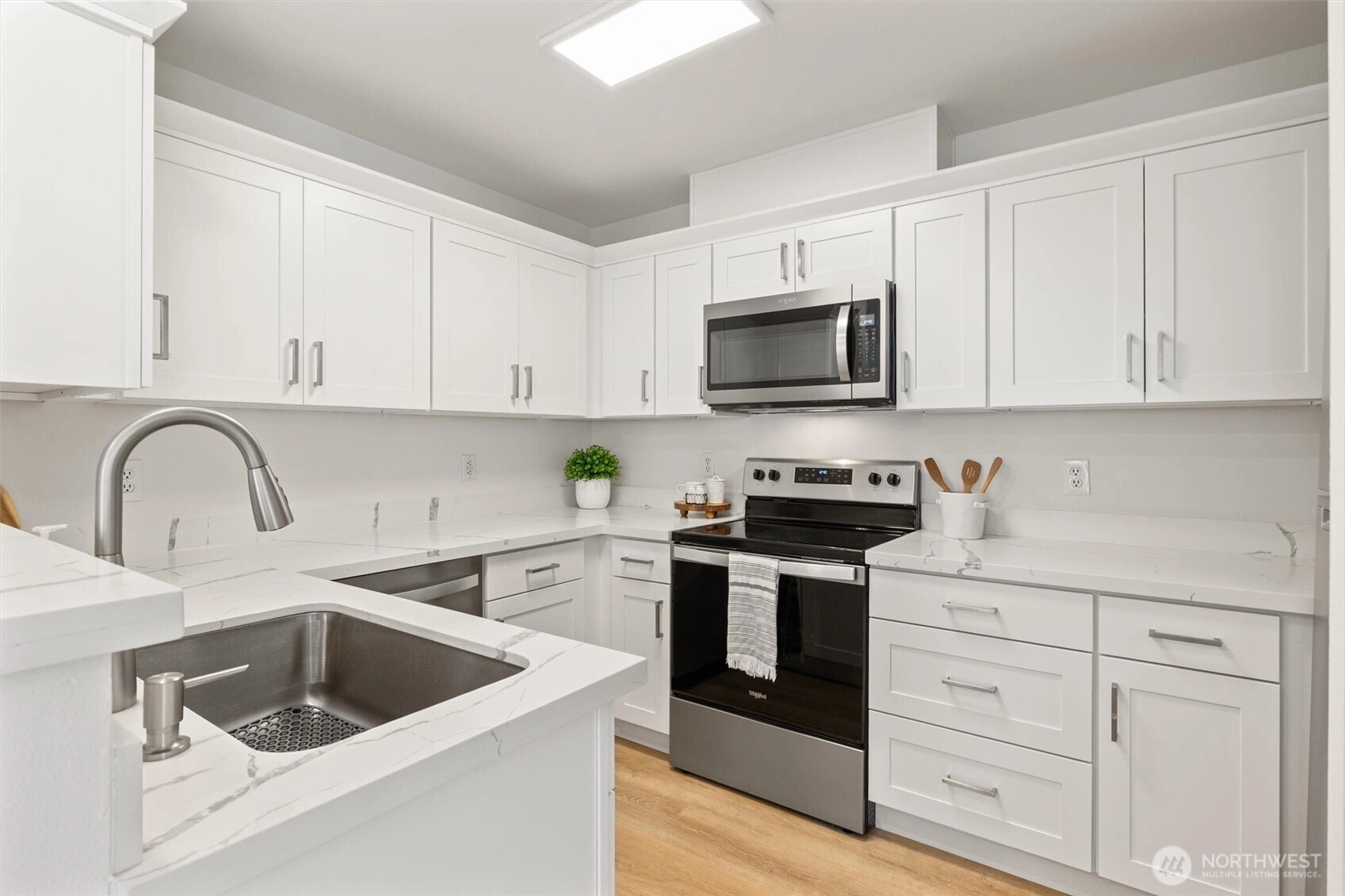 Beautifully remodeled and updated, this turn key home is the perfect find in Lake Stevens. This charming corner unit is flooded with natural light. Enjoy the ease of ground level living with no steps making accessibility super easy. Covered parking is in front of the unit. Featuring white kitchen cabinets with gleaming quartz counters and stainless steel appliances, all appliance will stay. Open and spacious floorplan with LVP flooring throughout. Wood burning fireplace to cozy up to. Shopping, grocery store and restaurants are located just a minute away. Prime location with quick access to Highway 9 and I-5. Plenty of guest parking. No rental cap. Community amenities include hot tub, exercise room, and clubhouse. This one won't last!