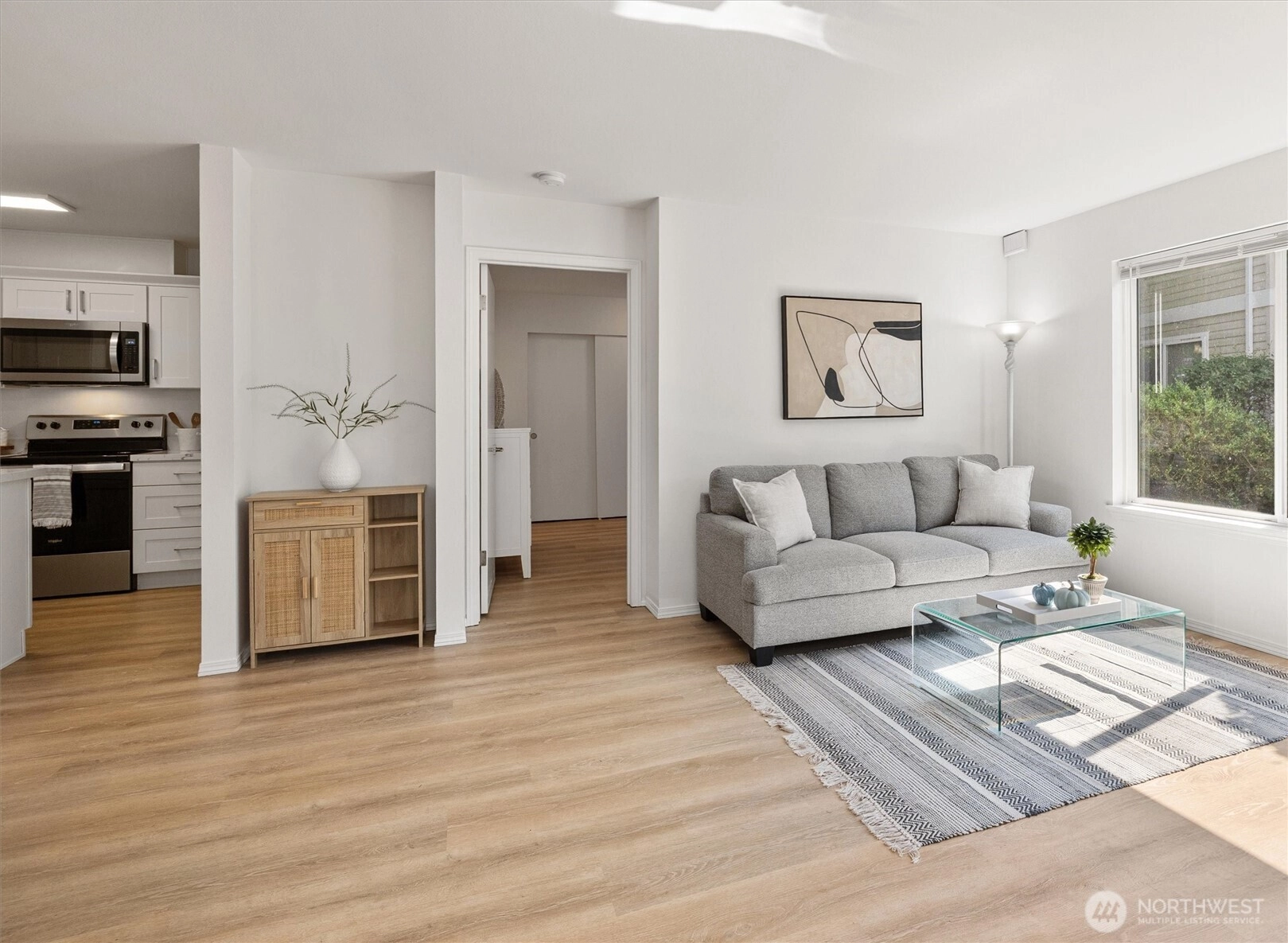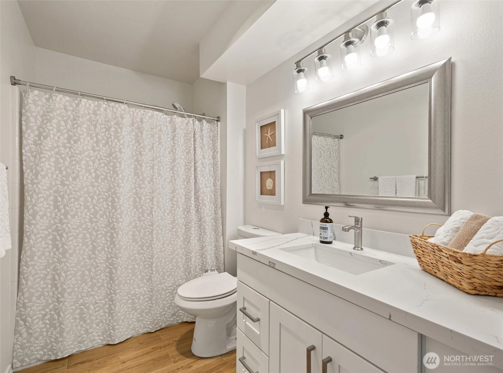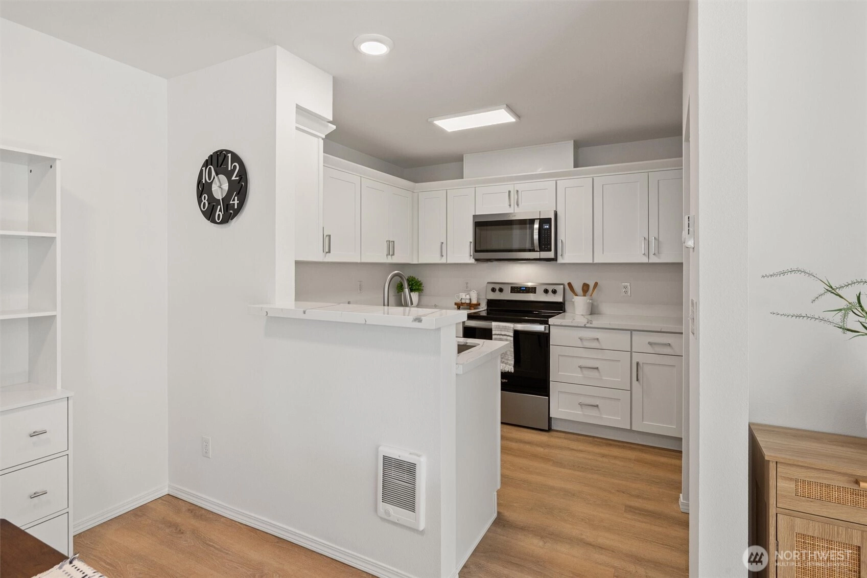 Beautifully remodeled and updated, this turn key home is the perfect find in Lake Stevens. This charming corner unit is flooded with natural light. Enjoy the ease of ground level living with no steps making accessibility super easy. Covered parking is in front of the unit. Featuring white kitchen cabinets with gleaming quartz counters and stainless steel appliances, all appliance will stay. Open and spacious floorplan with LVP flooring throughout. Wood burning fireplace to cozy up to. Shopping, grocery store and restaurants are located just a minute away. Prime location with quick access to Highway 9 and I-5. Plenty of guest parking. No rental cap. Community amenities include hot tub, exercise room, and clubhouse. This one won't last!