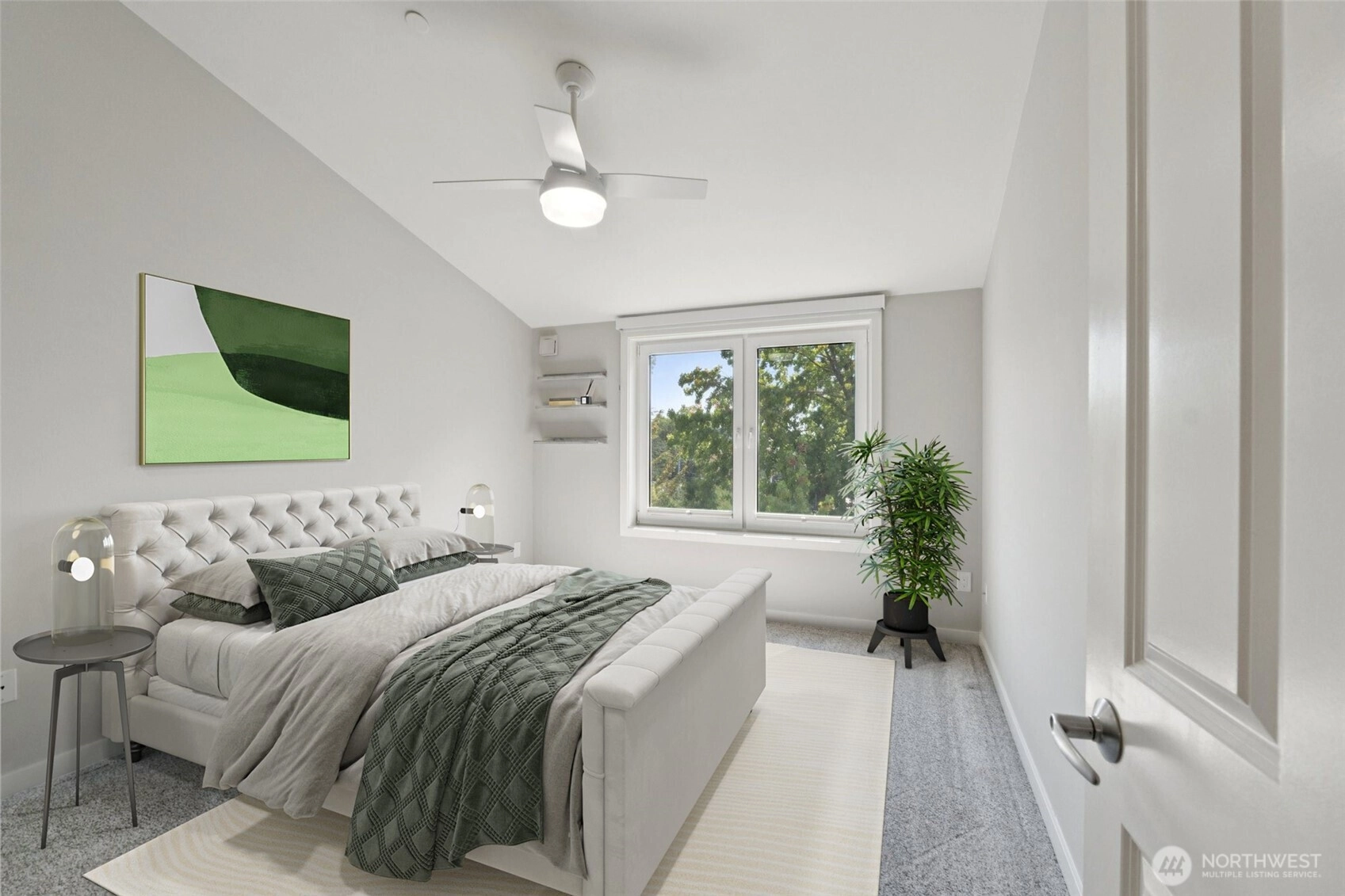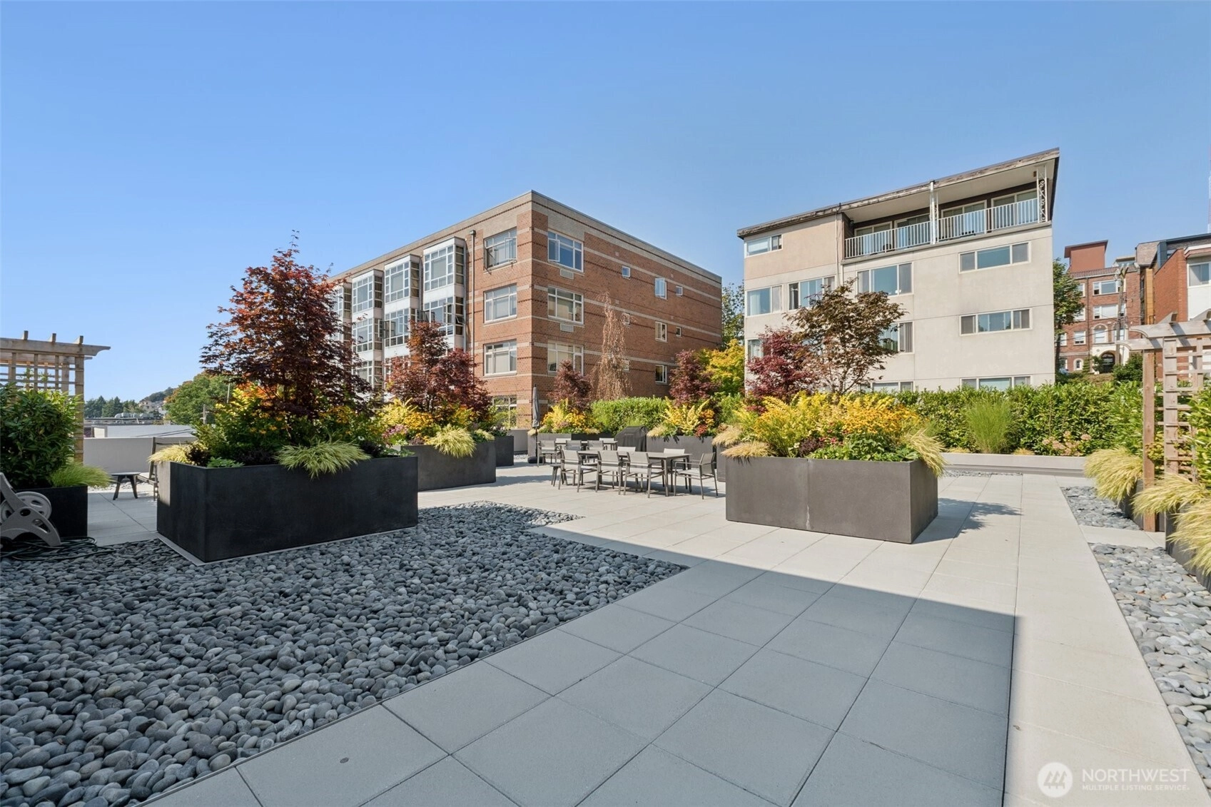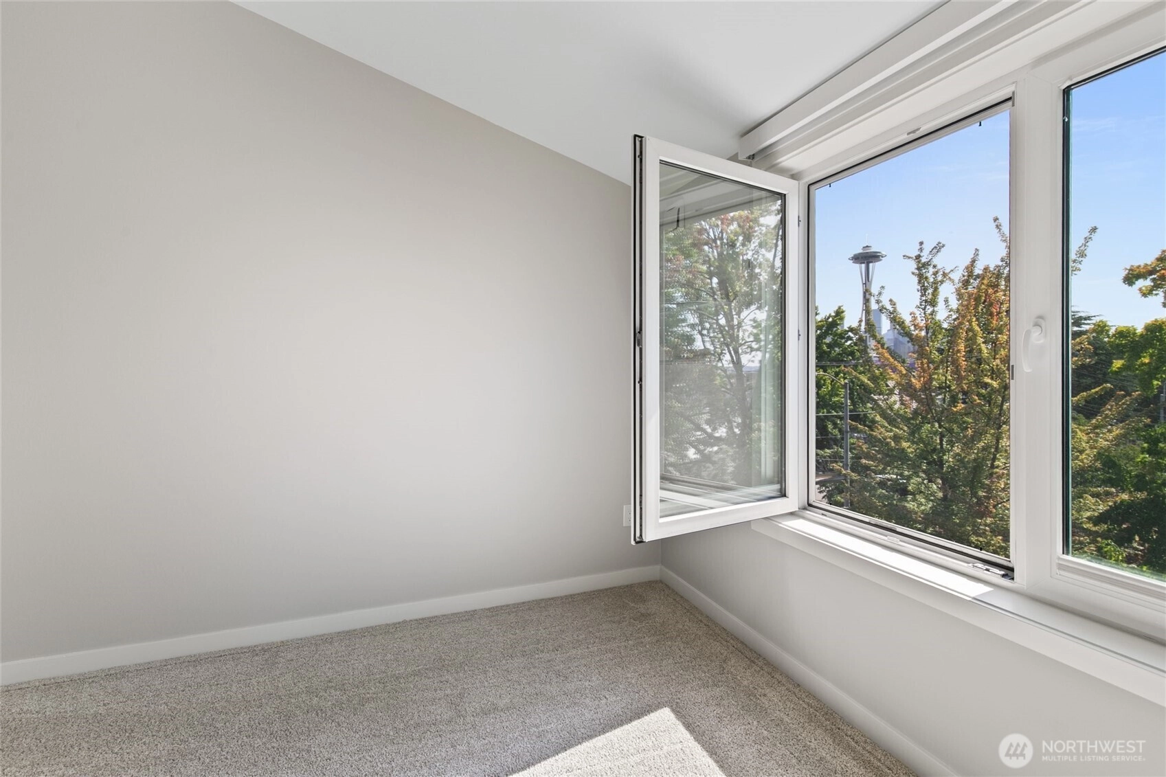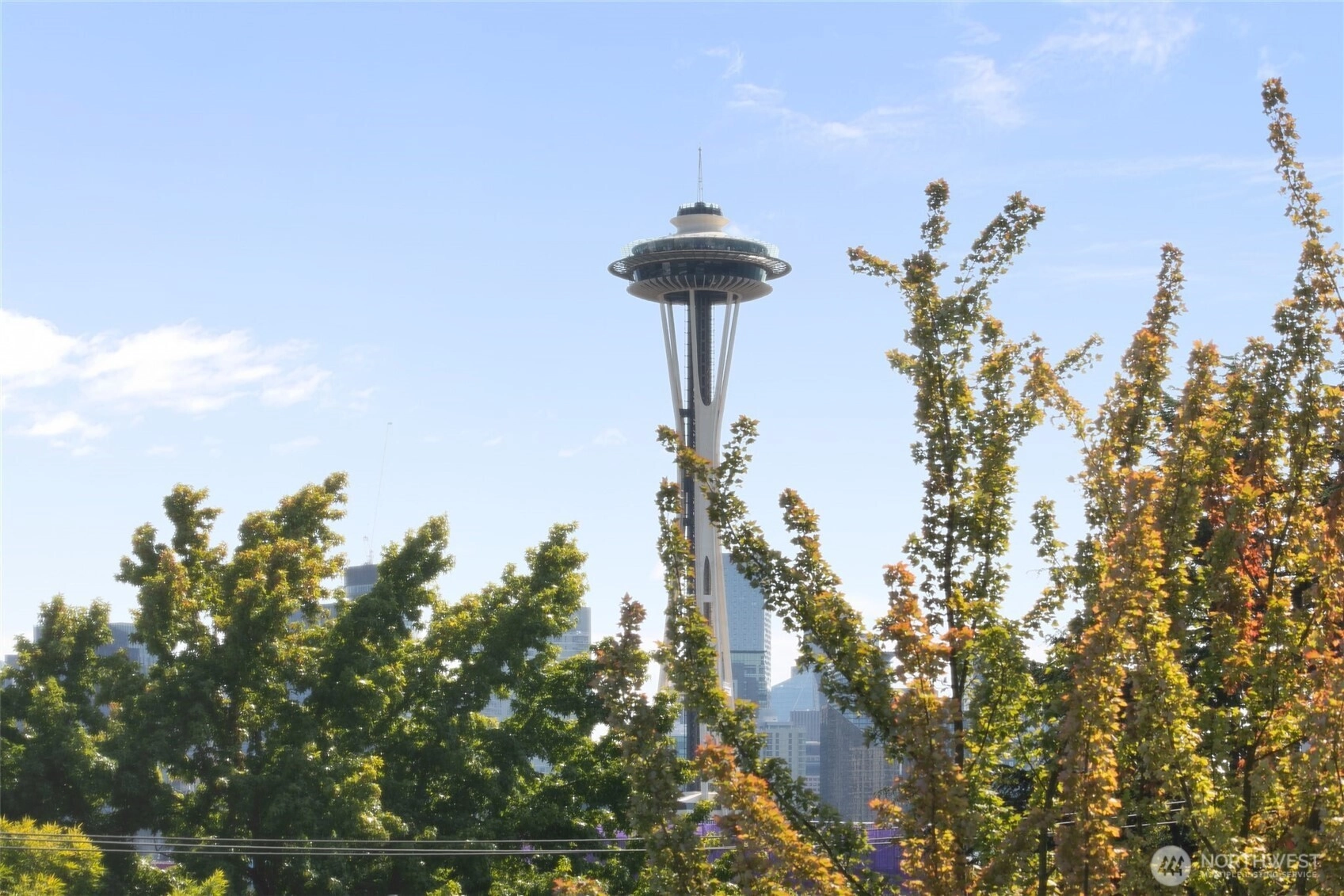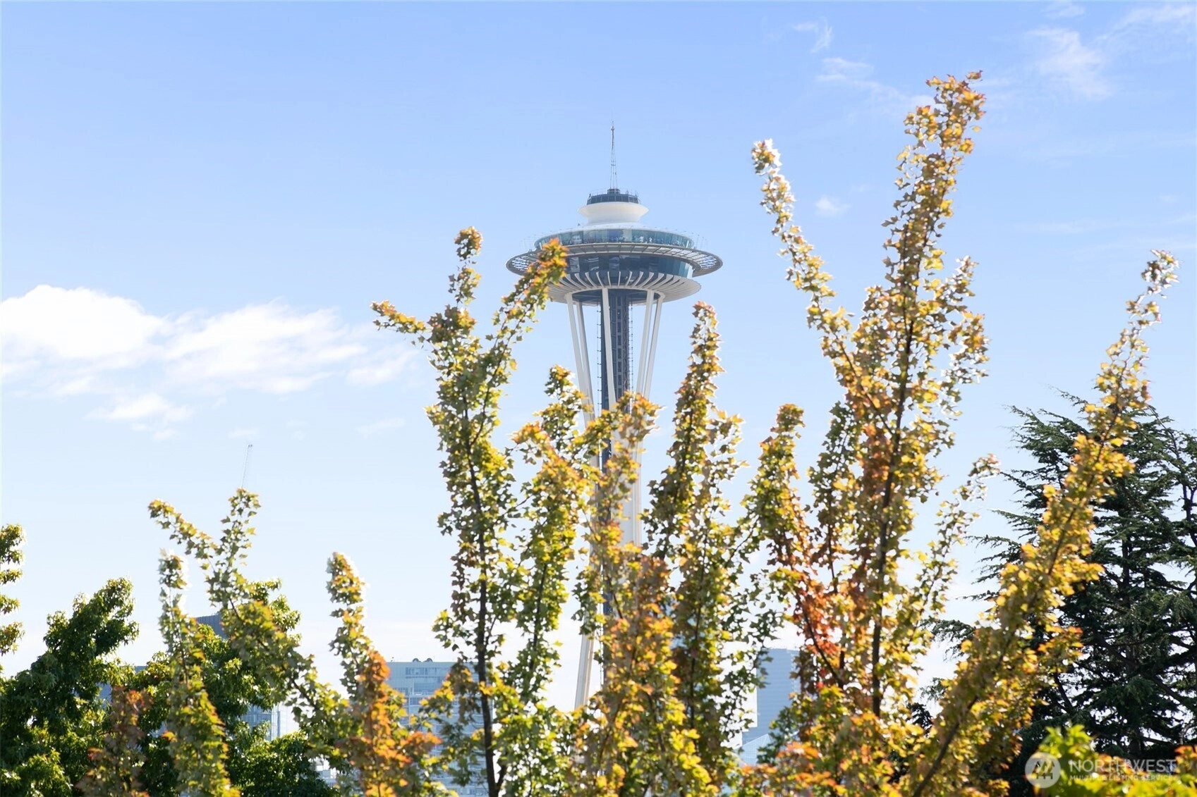 Top-floor condo in the heart of Lower Queen Anne - natural light and Space Needle views! This 1BD/1BA home features vaulted ceilings, updated interior, stainless steel appliances, remote controlled blinds & ceiling fans, in-unit laundry, and recently added A/C. The open-concept layout maximizes space and light. Enjoy building amenities including a garden terrace, gym, Google fiber, secure garage parking, and a separate storage unit. Commute with ease, or enjoy the impressive 97 WalkScore. City living at its best with restaurants, parks, grocery stores, museums, Seattle Center, and transit just moments away. Pre-inspected for your convenience.