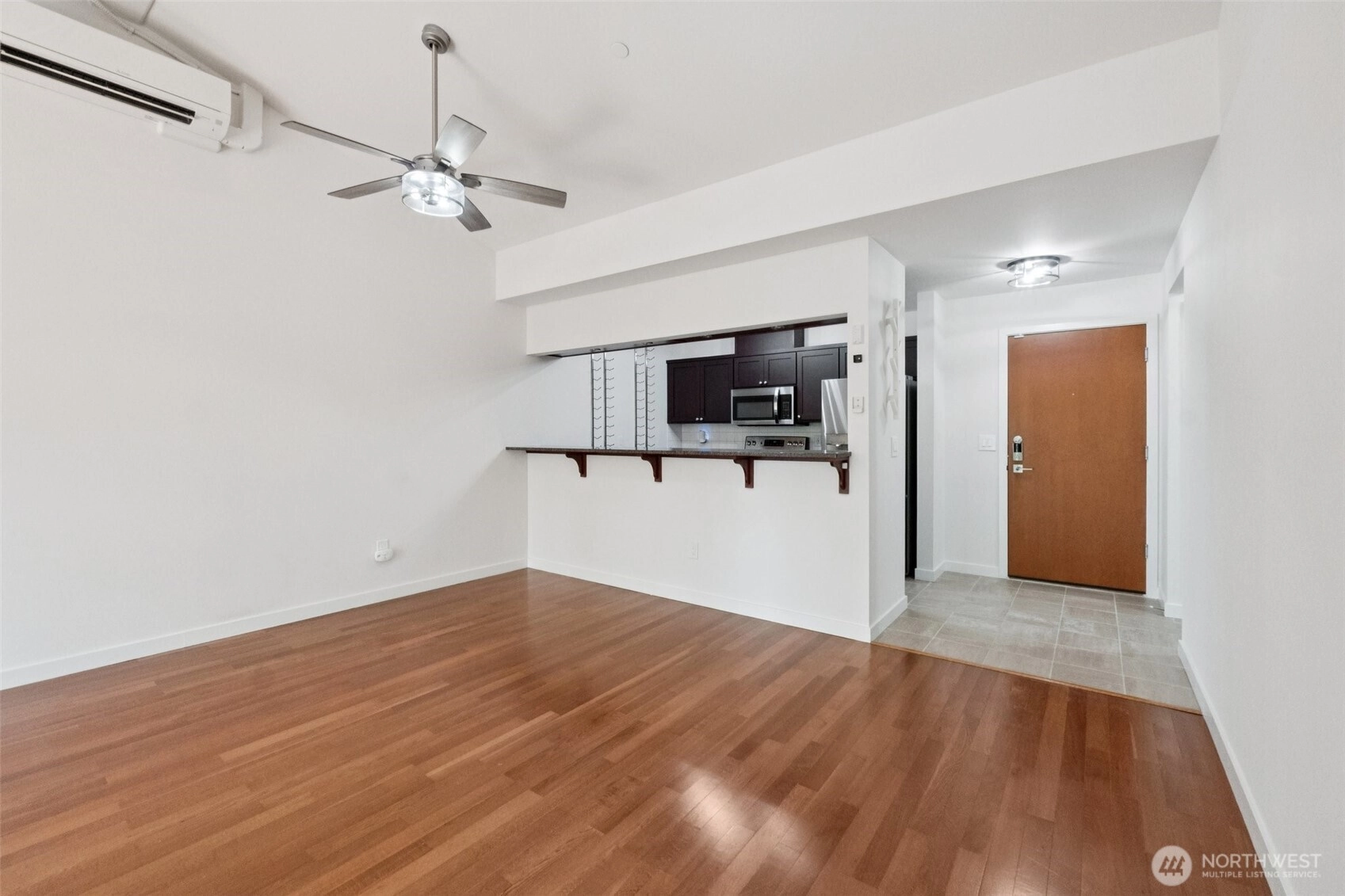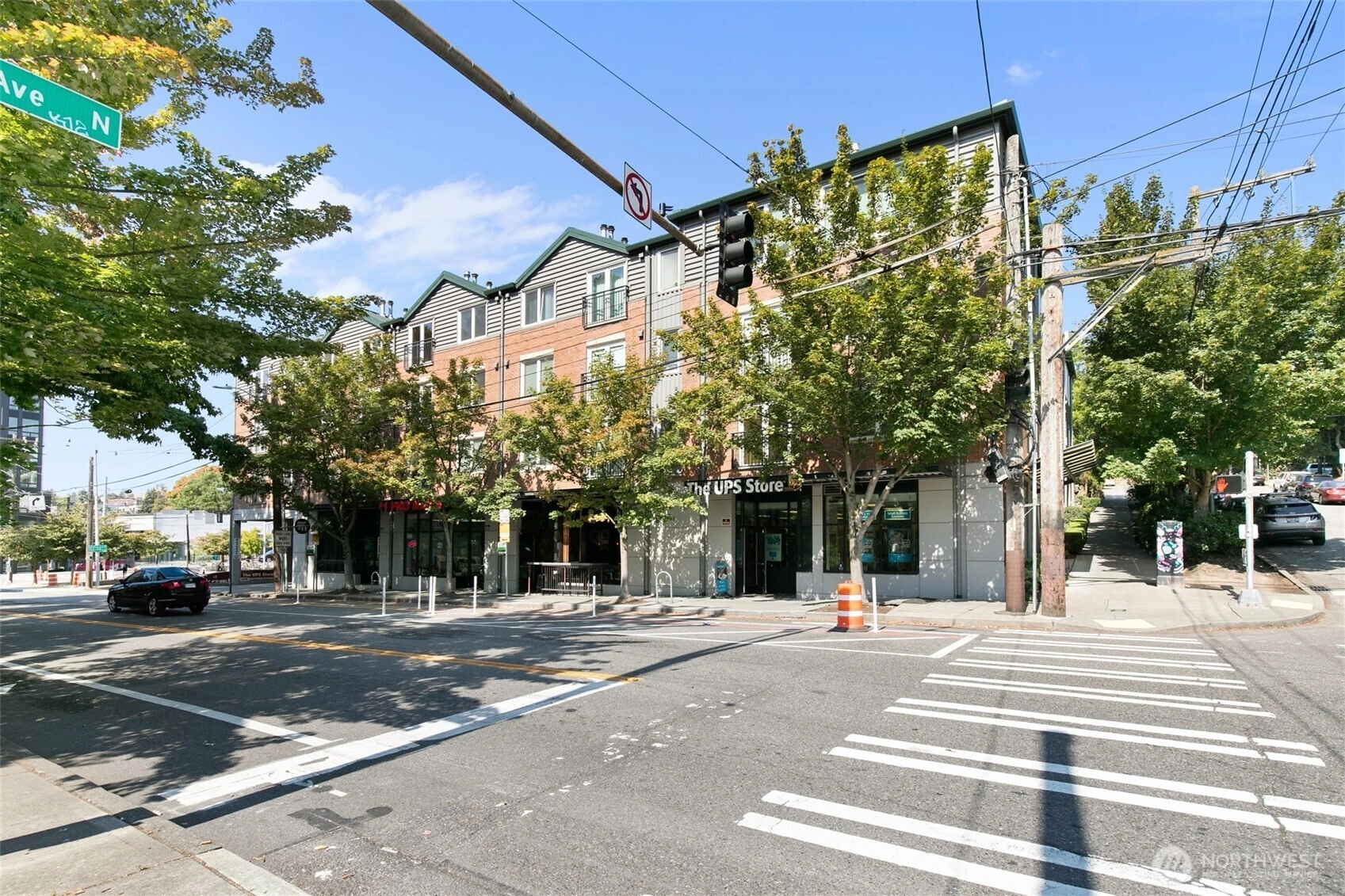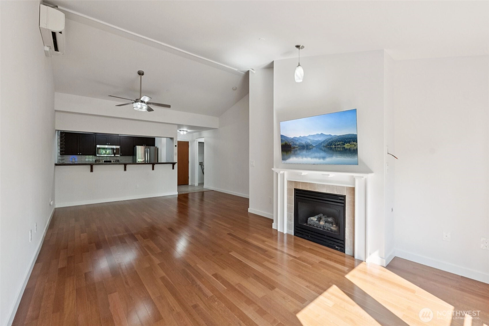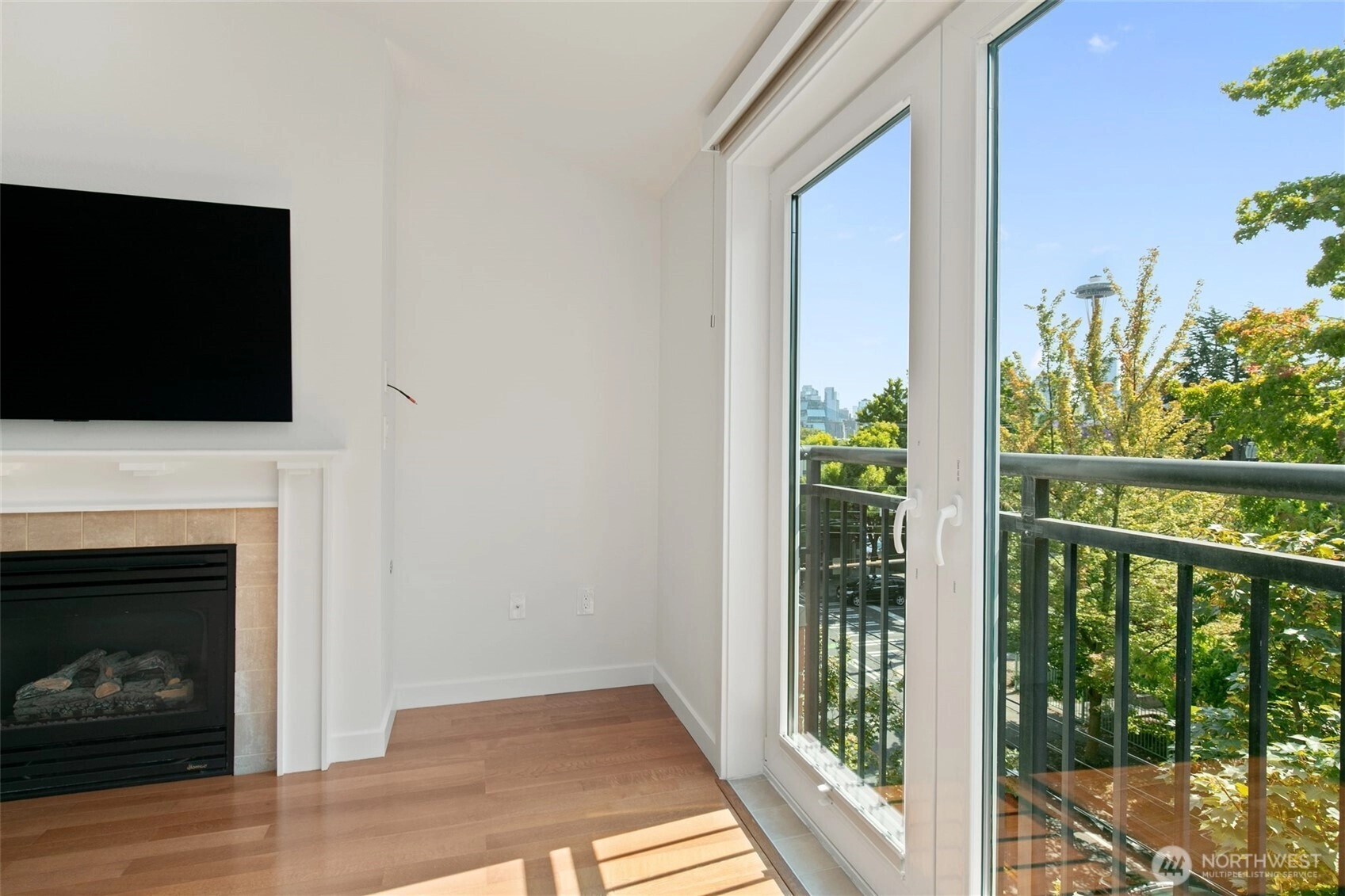 Top-floor condo in the heart of Lower Queen Anne - natural light and Space Needle views! This 1BD/1BA home features vaulted ceilings, updated interior, stainless steel appliances, remote controlled blinds & ceiling fans, in-unit laundry, and recently added A/C. The open-concept layout maximizes space and light. Enjoy building amenities including a garden terrace, gym, Google fiber, secure garage parking, and a separate storage unit. Commute with ease, or enjoy the impressive 97 WalkScore. City living at its best with restaurants, parks, grocery stores, museums, Seattle Center, and transit just moments away. Pre-inspected for your convenience.