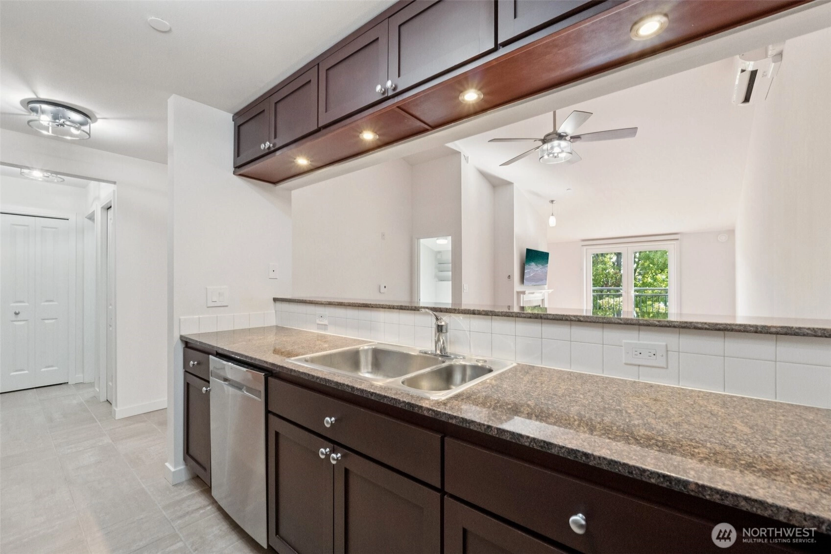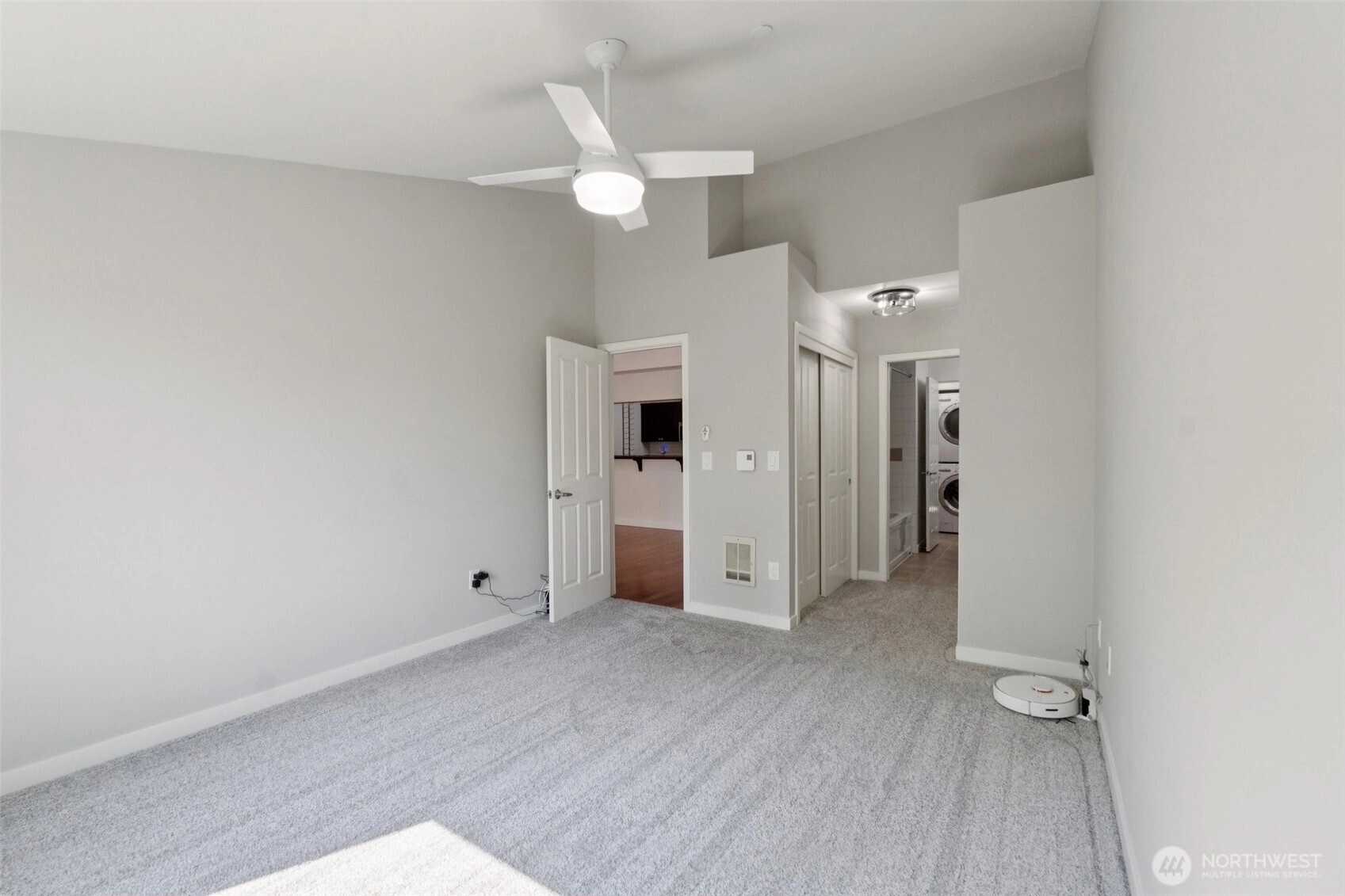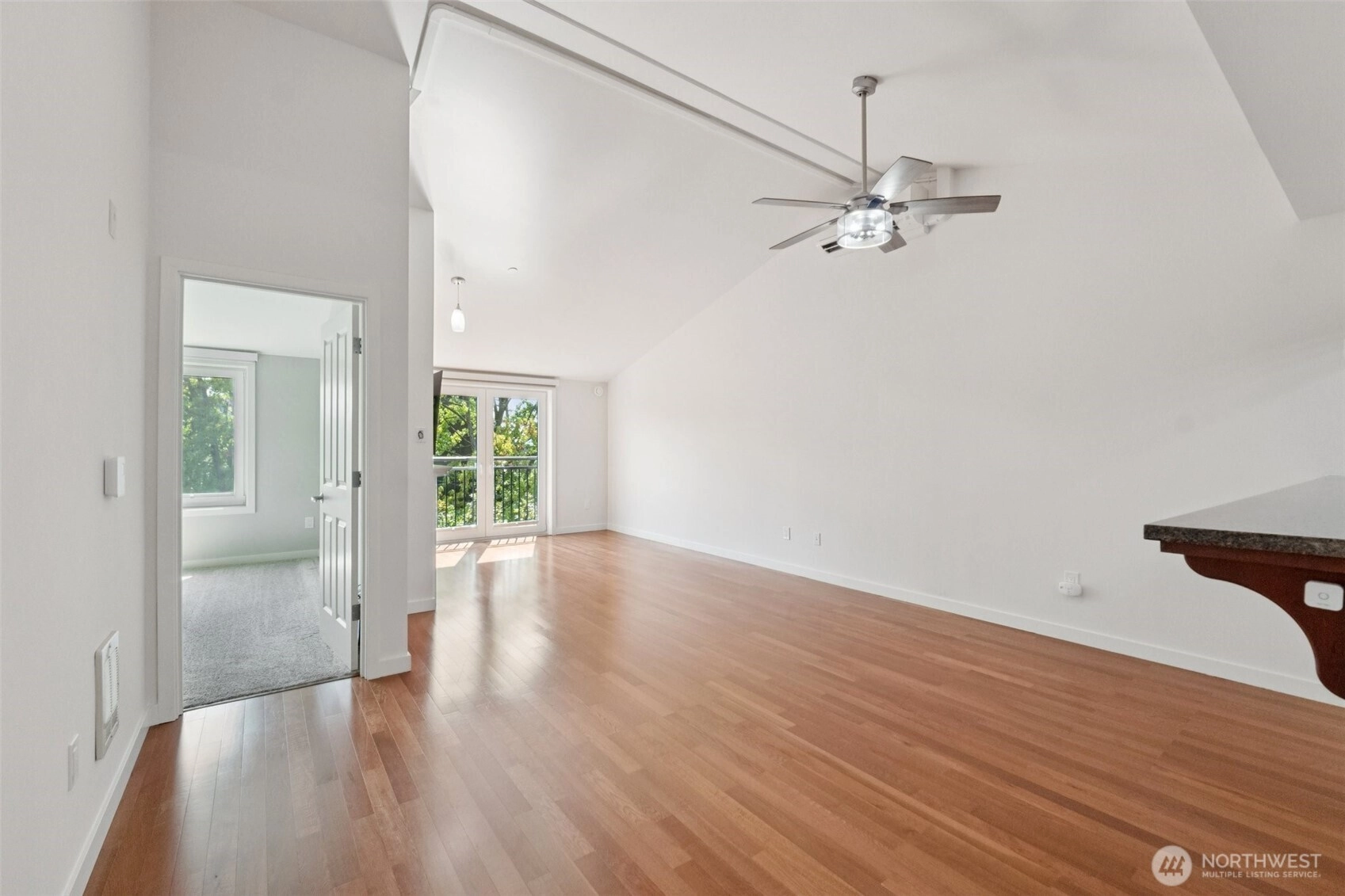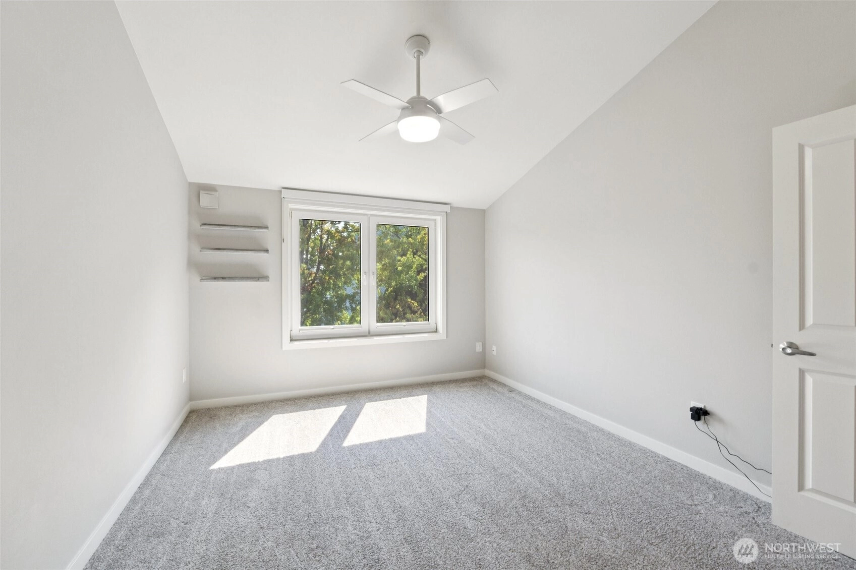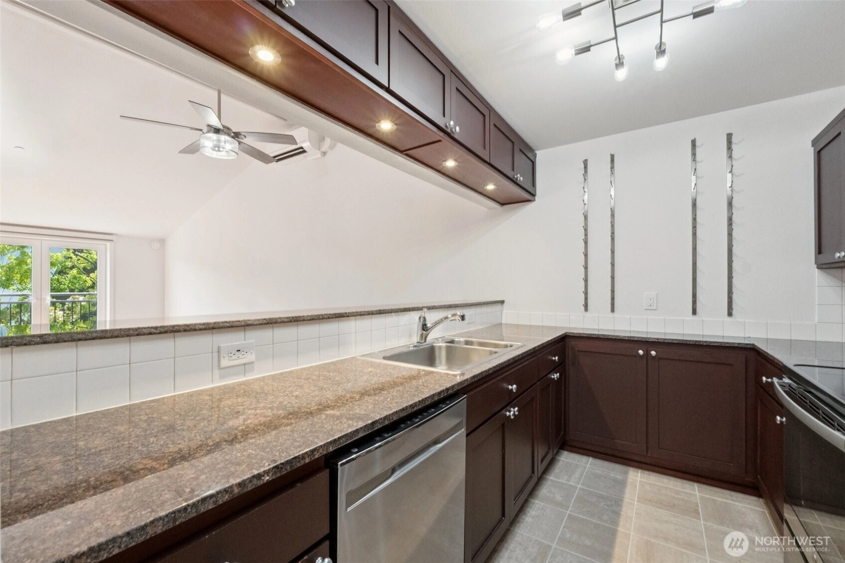 Top-floor condo in the heart of Lower Queen Anne - natural light and Space Needle views! This 1BD/1BA home features vaulted ceilings, updated interior, stainless steel appliances, remote controlled blinds & ceiling fans, in-unit laundry, and recently added A/C. The open-concept layout maximizes space and light. Enjoy building amenities including a garden terrace, gym, Google fiber, secure garage parking, and a separate storage unit. Commute with ease, or enjoy the impressive 97 WalkScore. City living at its best with restaurants, parks, grocery stores, museums, Seattle Center, and transit just moments away. Pre-inspected for your convenience.