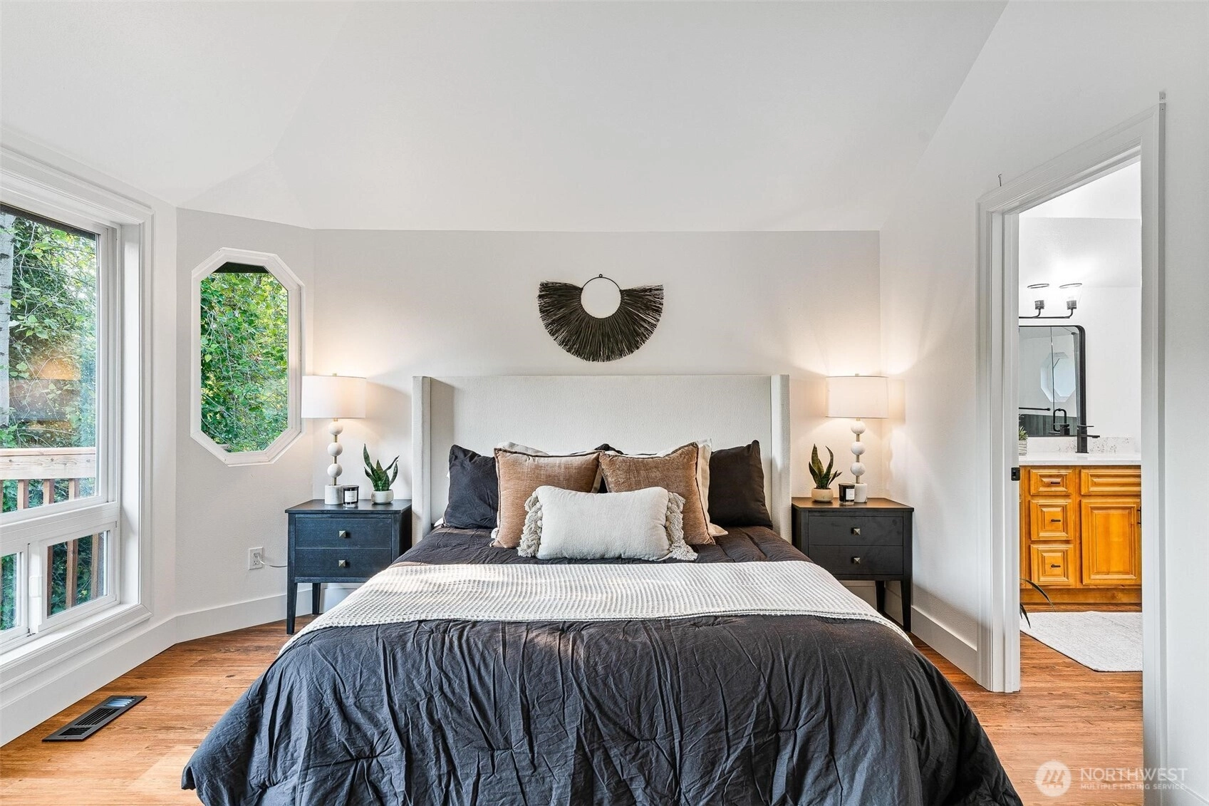 This exceptional four-bedroom home combines a sought-after neighborhood, prime location, and top-rated schools—all in one perfect package with convenient access to freeways, and shopping. Vaulted ceilings and an open, welcoming space, invites you into the living room with private greenbelt views, kitchen with two dining areas including a sunken sun space inviting you for morning coffee, and an oversized primary on the main floor that features a private deck, five-piece bath, & full walk-in closet with custom shelving. Downstairs offers a second living room with exterior access and three additional bedrooms. Don't miss the short walk to the park, trails and expansive two-car garage with shop space, updated heating components & 50 year roof.