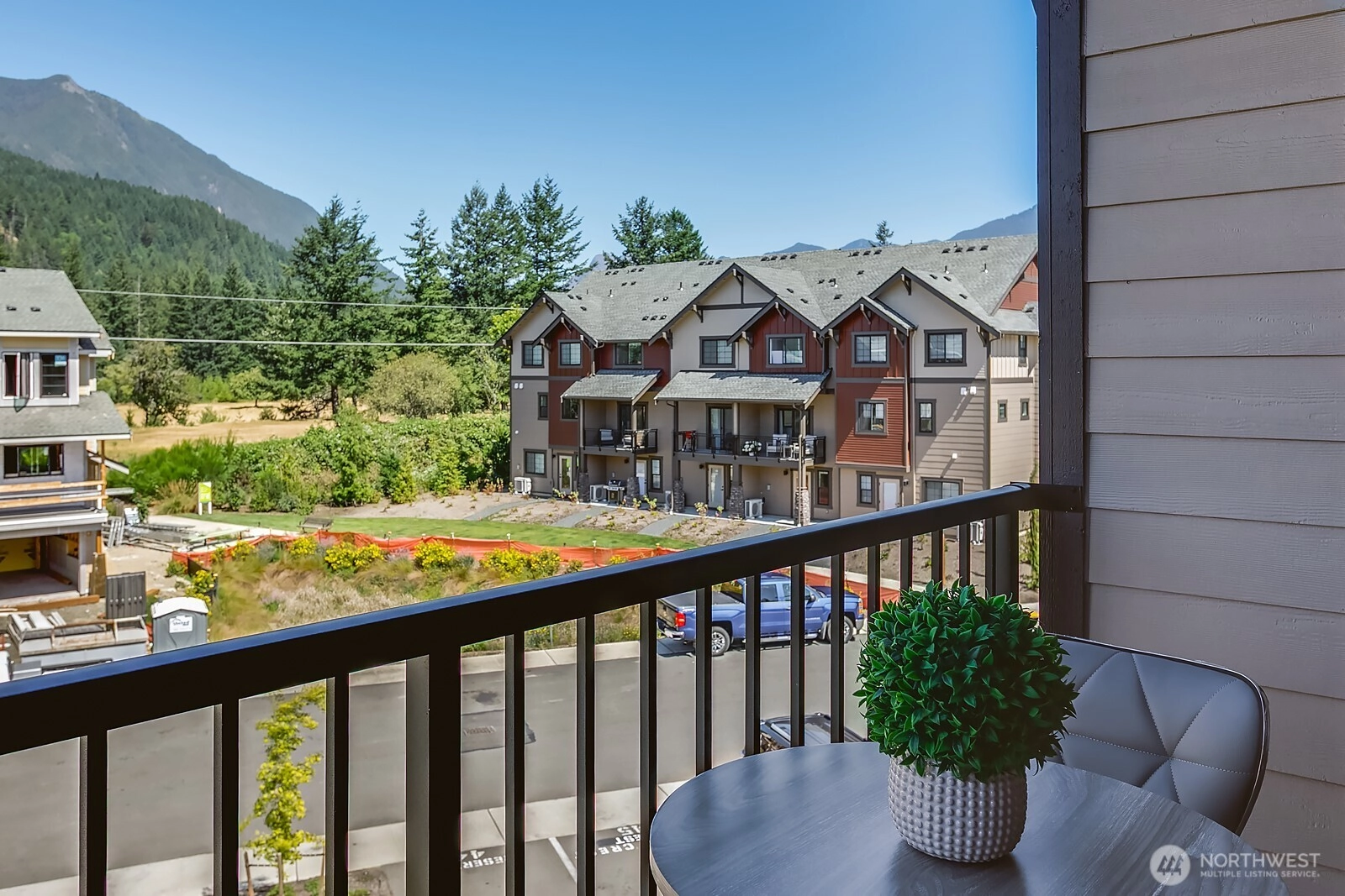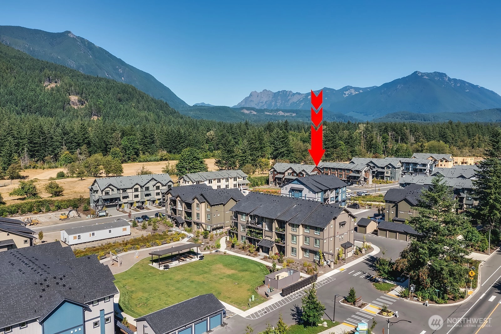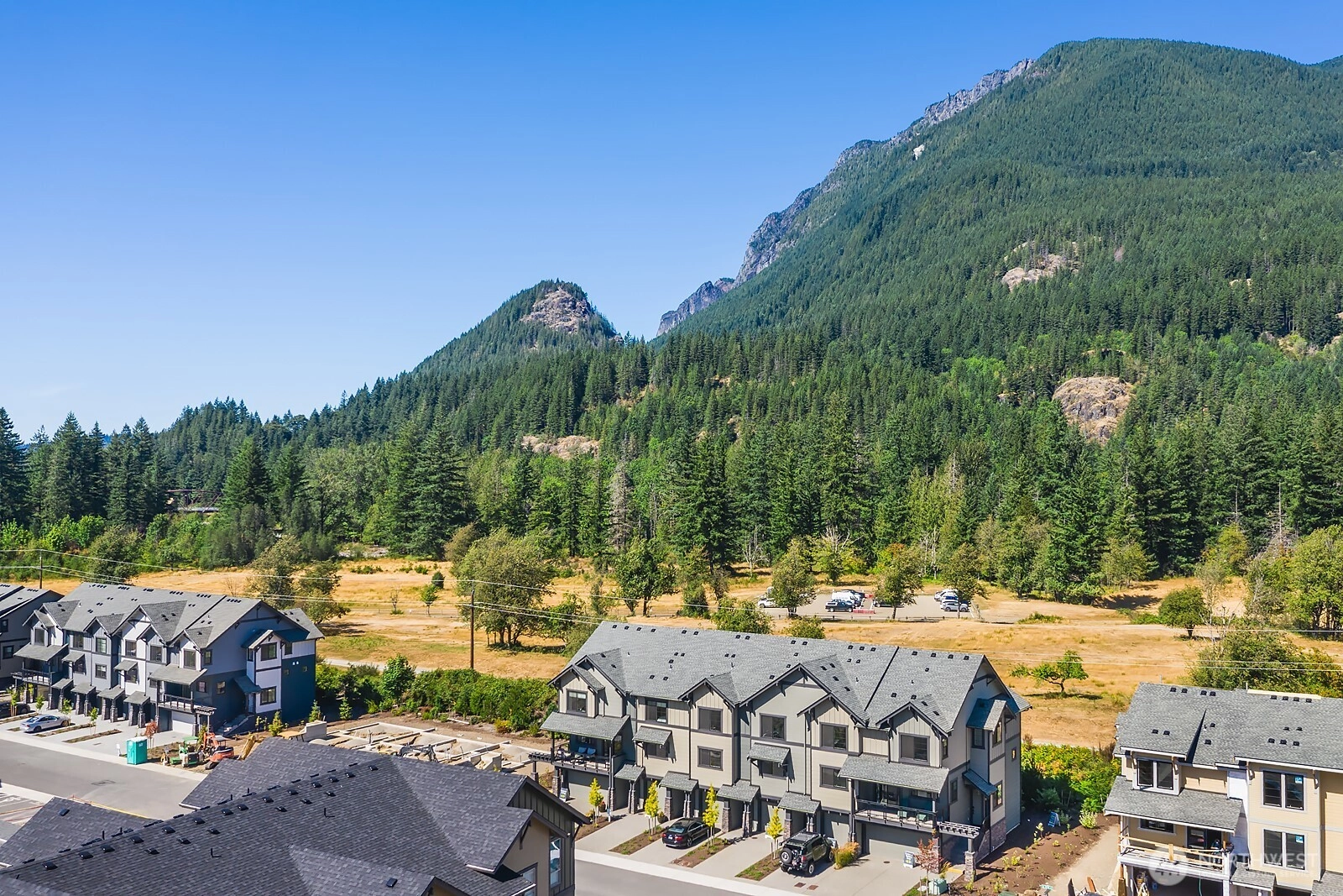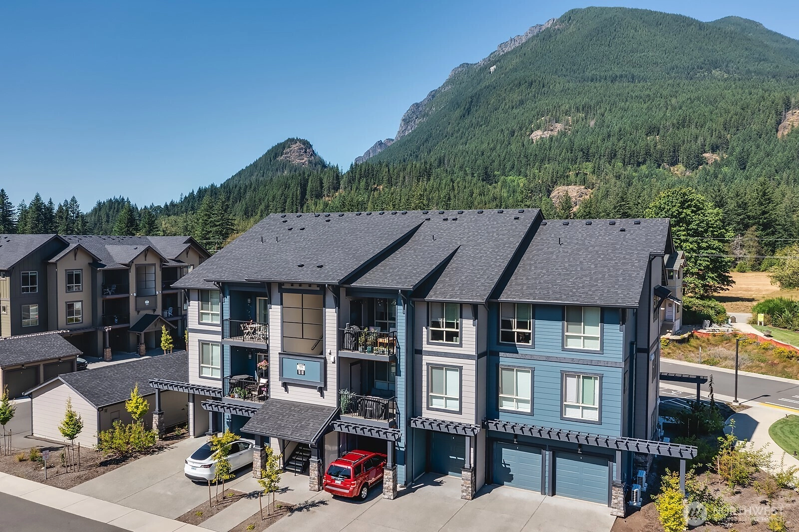 Better than new! This stunning top-floor, corner-unit condo offers sweeping views and modern style in one of the area's most desirable locations. Built in 2024, the home features an open layout, solid-surface counters, stainless steel appliances, and designer finishes throughout. Enjoy peace and privacy with no neighbors above, plus natural light from multiple exposures including a rare mountain-facing deck. The attached single-car garage adds convenience, while direct access to the community park—with pickleball, volleyball, and a covered picnic shelter—elevates your lifestyle. Don't miss the access to the Snoqualmie Valley Trail, river at Tanner Landing, and ample overflow parking options. Low maintenance, high style, and move-in ready!