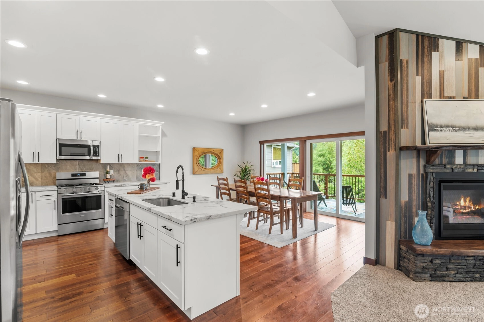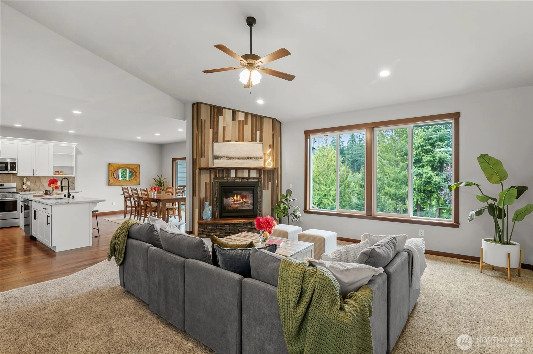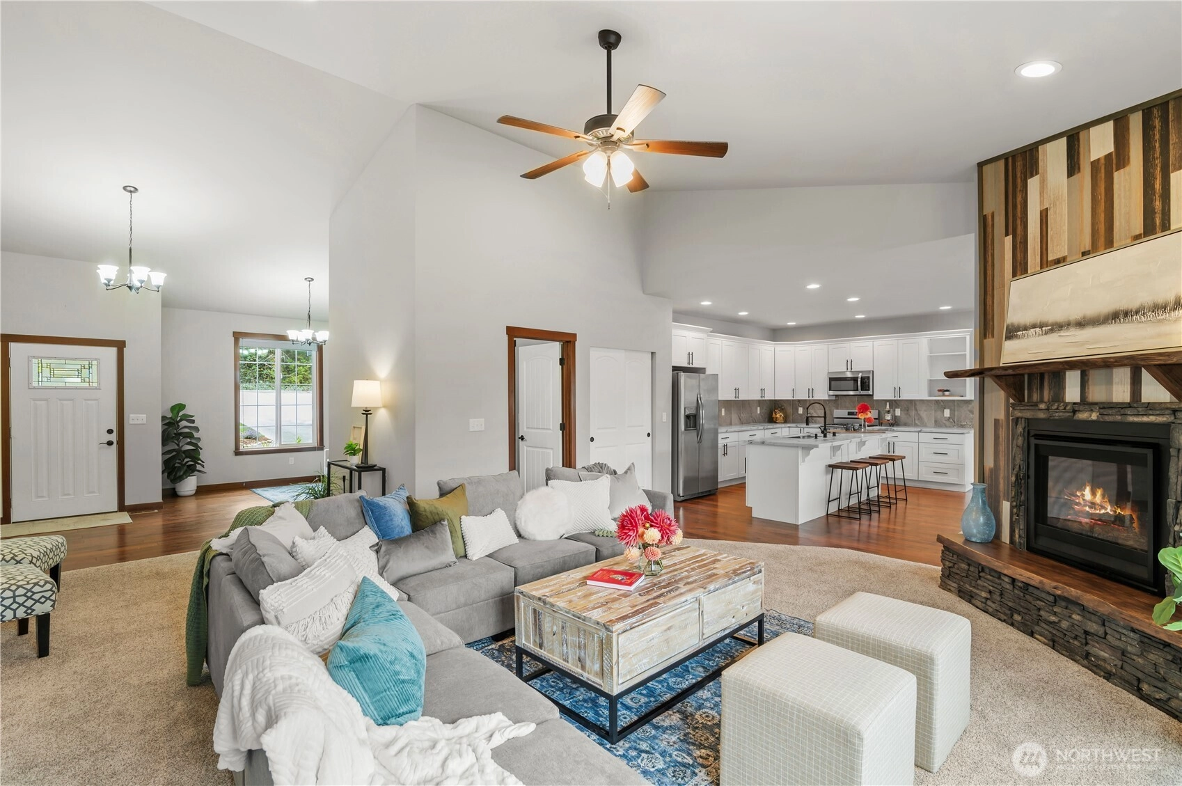 Experience waterfront living redefined in this lakefront rambler—a modern, light-filled home built in 2020, combining style, serenity, and private lake access. Step through expansive covered deck to panoramic water views; stroll through your own garden path to the private dock (boat included). Inside, soaring ceilings, quartz counters, and an open layout create seamless indoor-outdoor flow then cozy up by the fireplace overlooking lake reflections. With low HOA, efficient systems, and a home office, this home offers a rare turnkey lake retreat that lives like a 3 bedroom. Whether paddling at dawn or entertaining at sunset, this is waterfront living! Call for your private tour to experience the lifestyle you’re looking for.