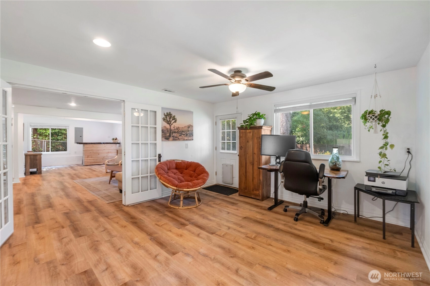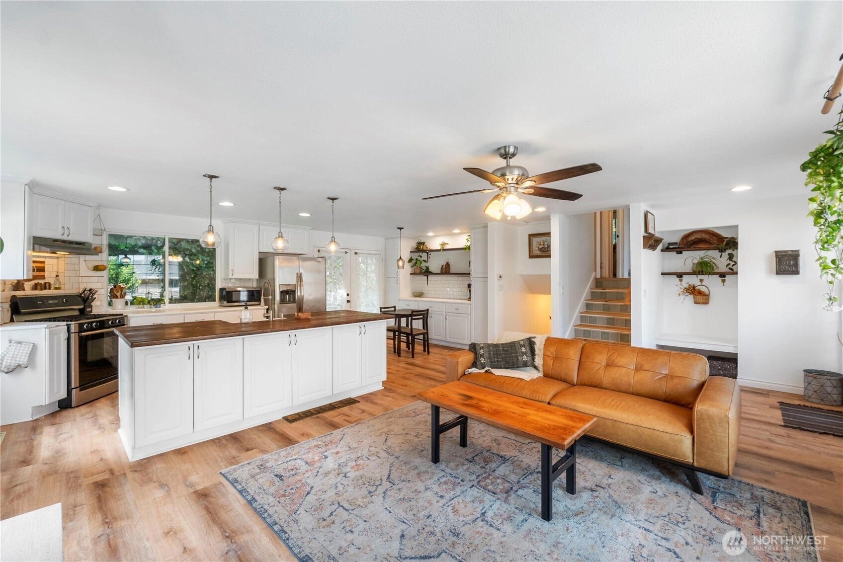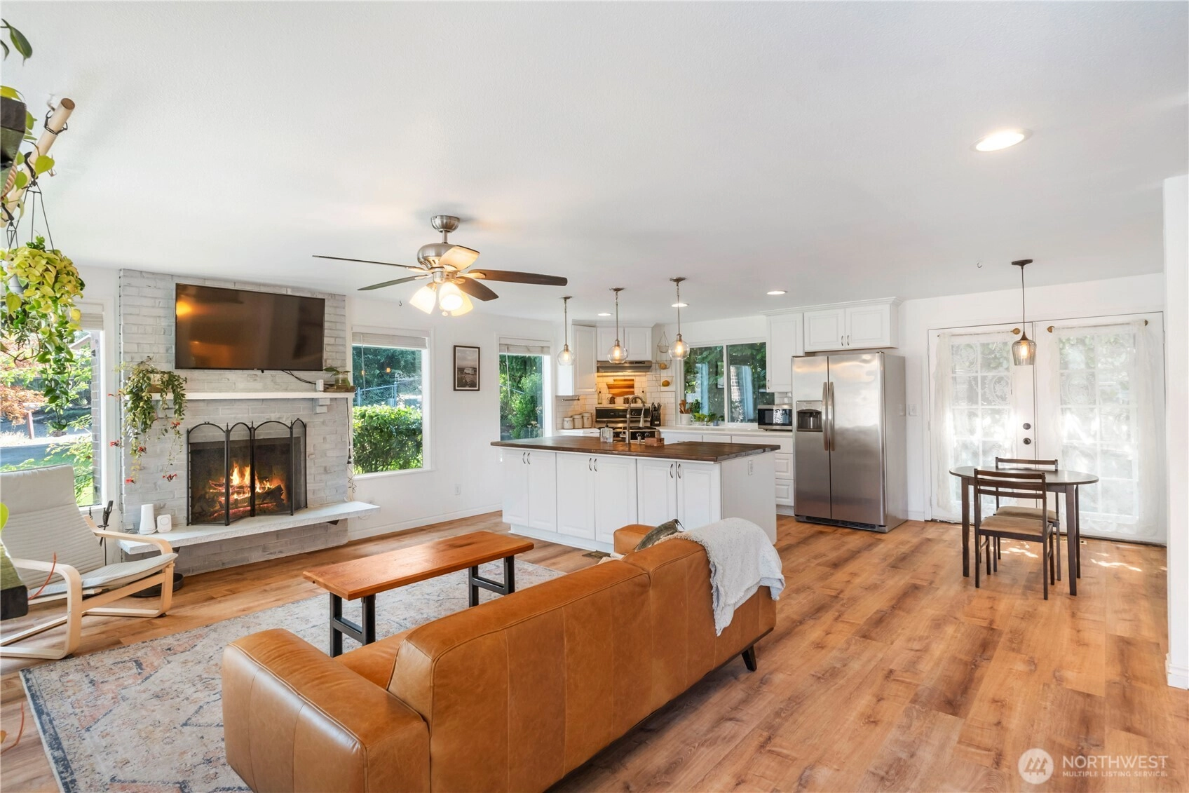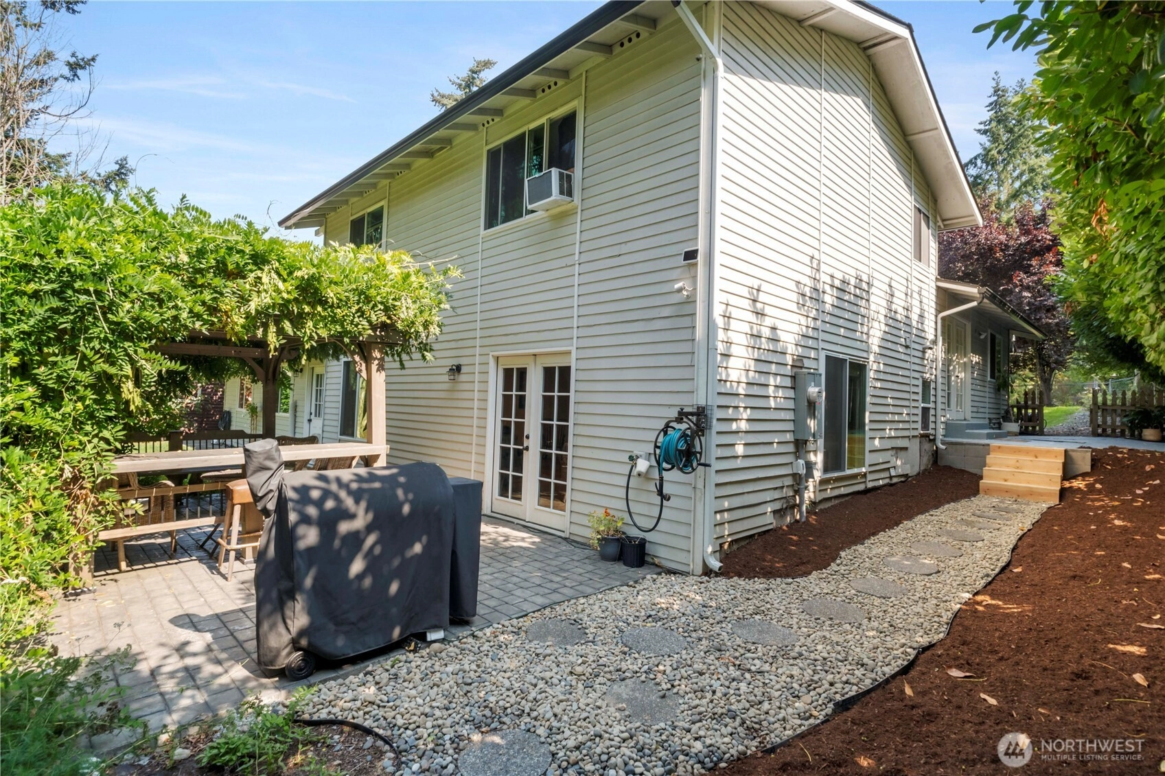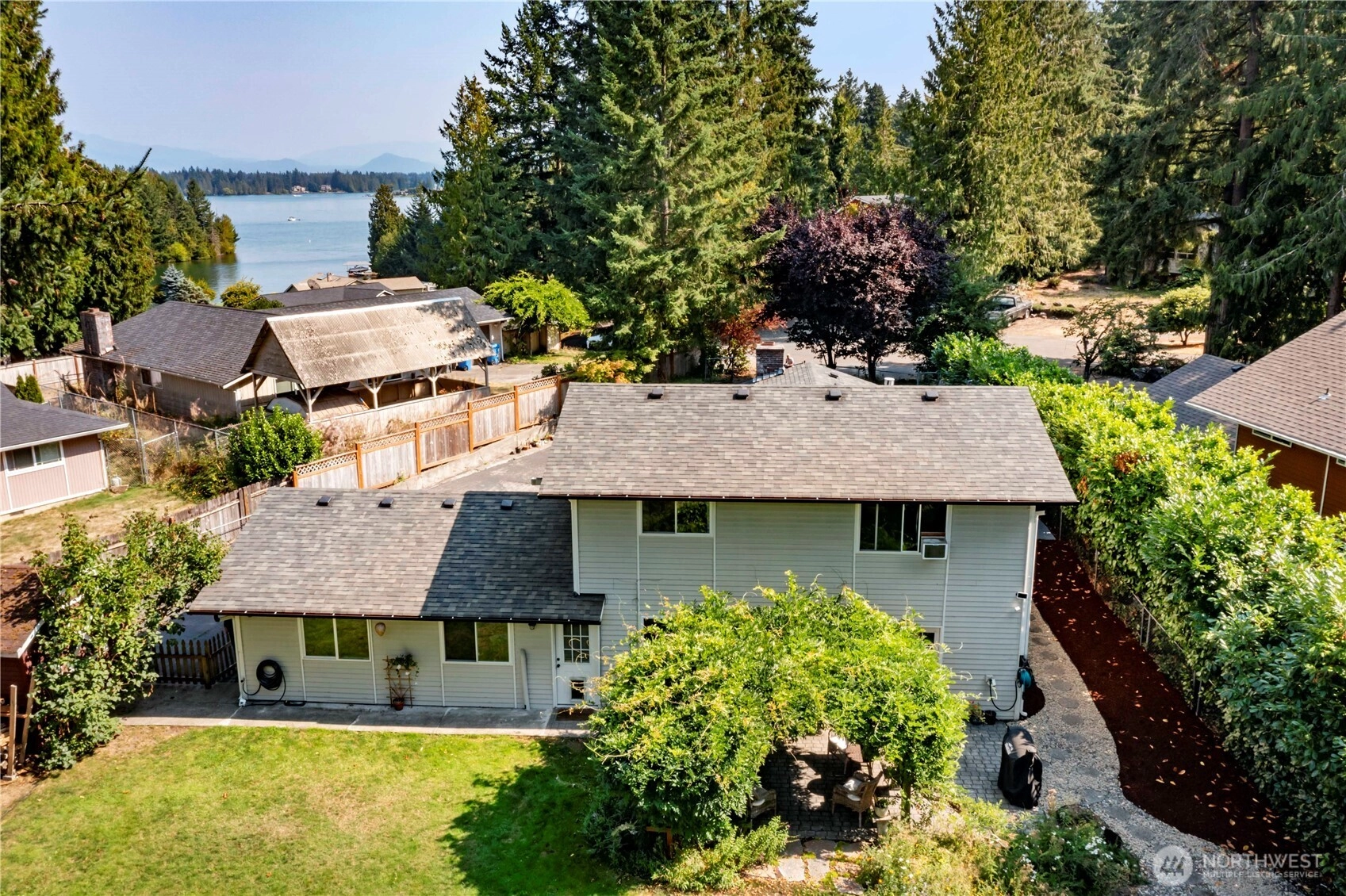 Nestled on a peaceful cul-de-sac steps from Lake Tapps, this updated open-concept home offers 2,356 sq ft on fully fenced, park-like lot. A gardener’s dream featuring fruit trees, mature landscaping, lilacs, rhodys, wisteria, blueberries, wildflowers+pergola for natural shade. A cobblestone patio, firepit & storage shed complete the outdoor retreat. Updates include newer roof, gutters, water heater, furnace, upgraded plumbing, electrical panel, windows, luxury vinyl flooring and dishwasher. Main floor great room boasts updated kitchen with island, eating area & built-ins. 3 bedrooms, 1.75 baths, bonus room, office space+ laundry. 1-car+abundant storage. Enjoy access to community parks, boat launch, beach, athletic courts & walking trails