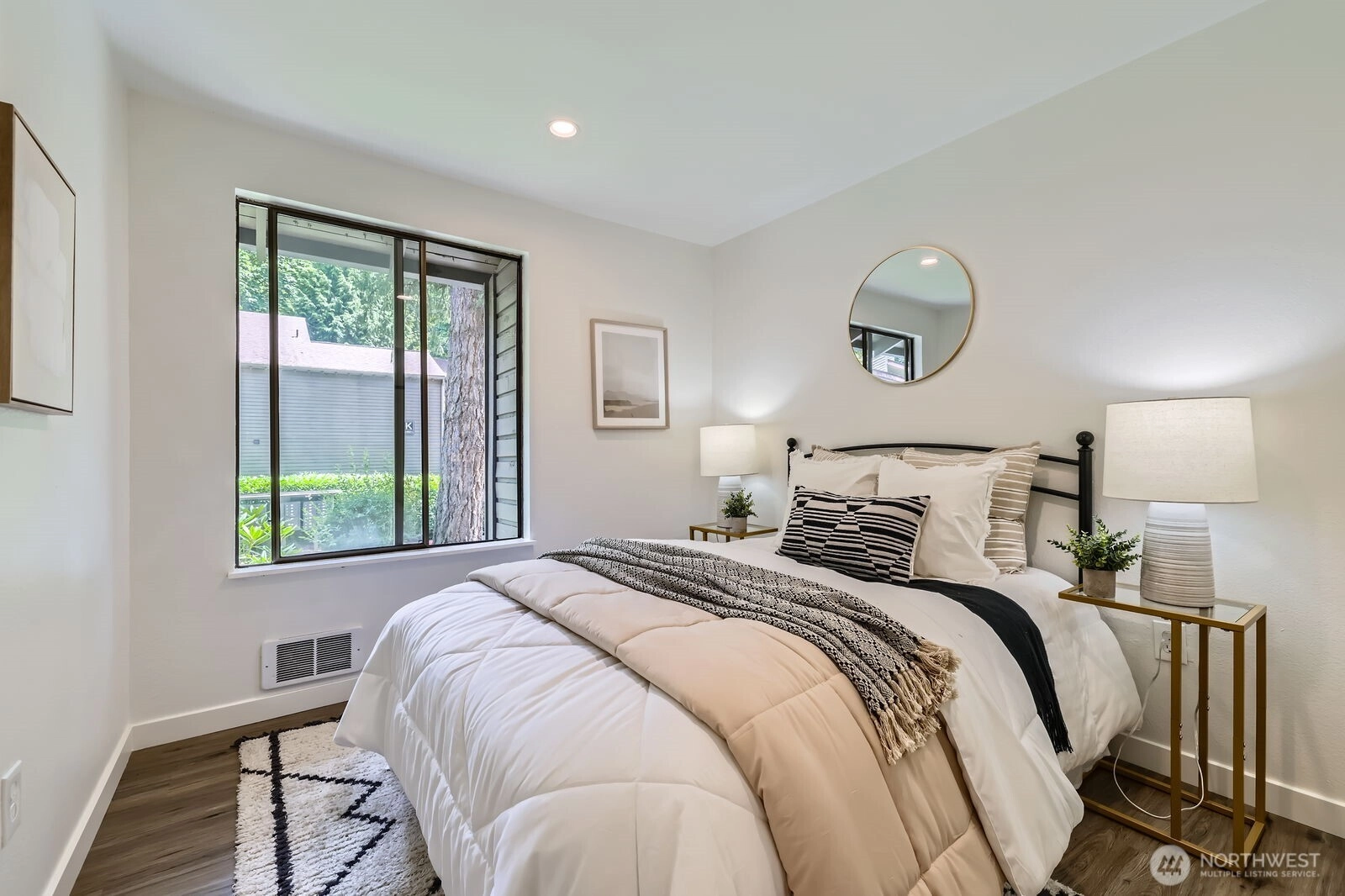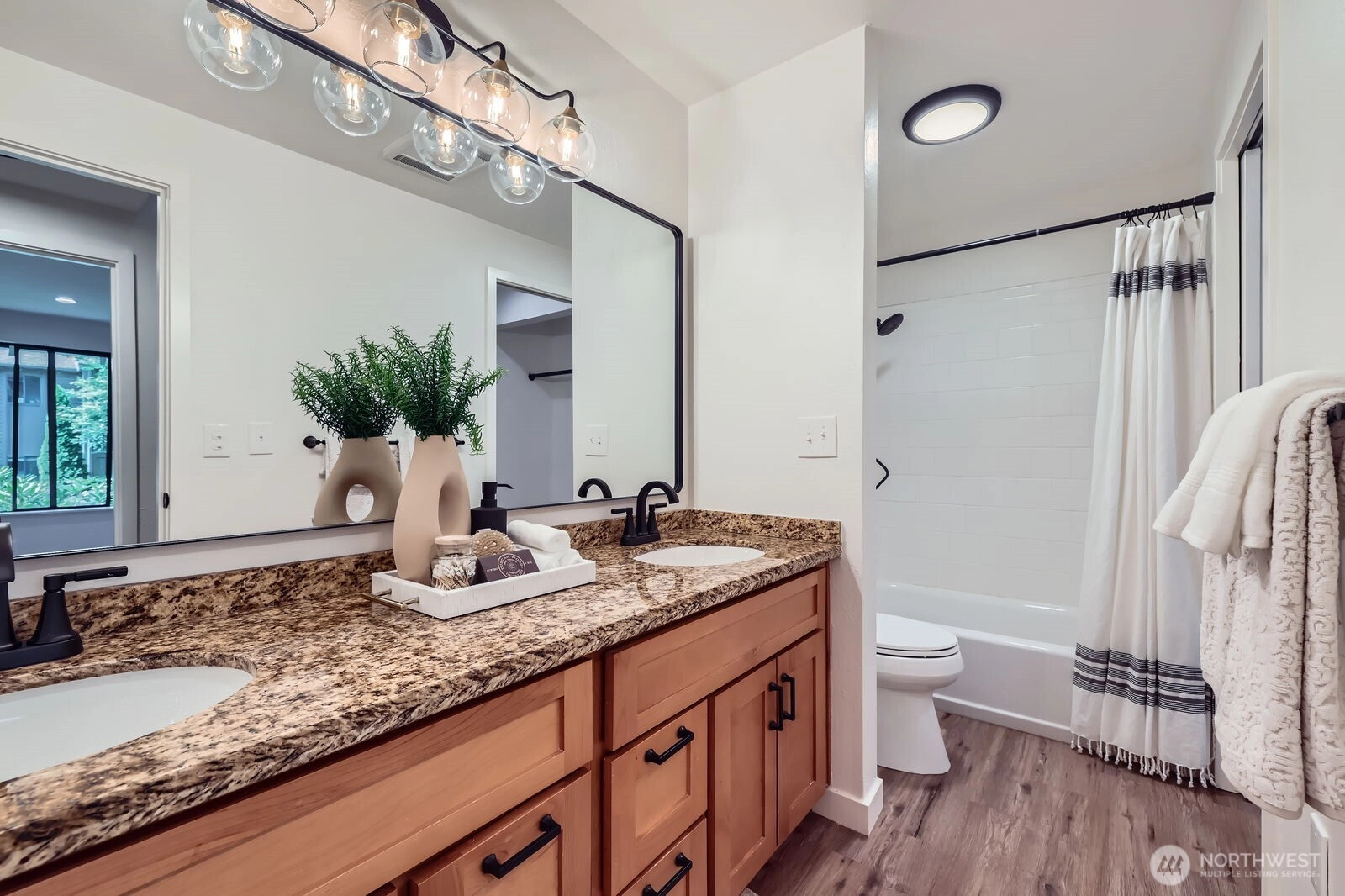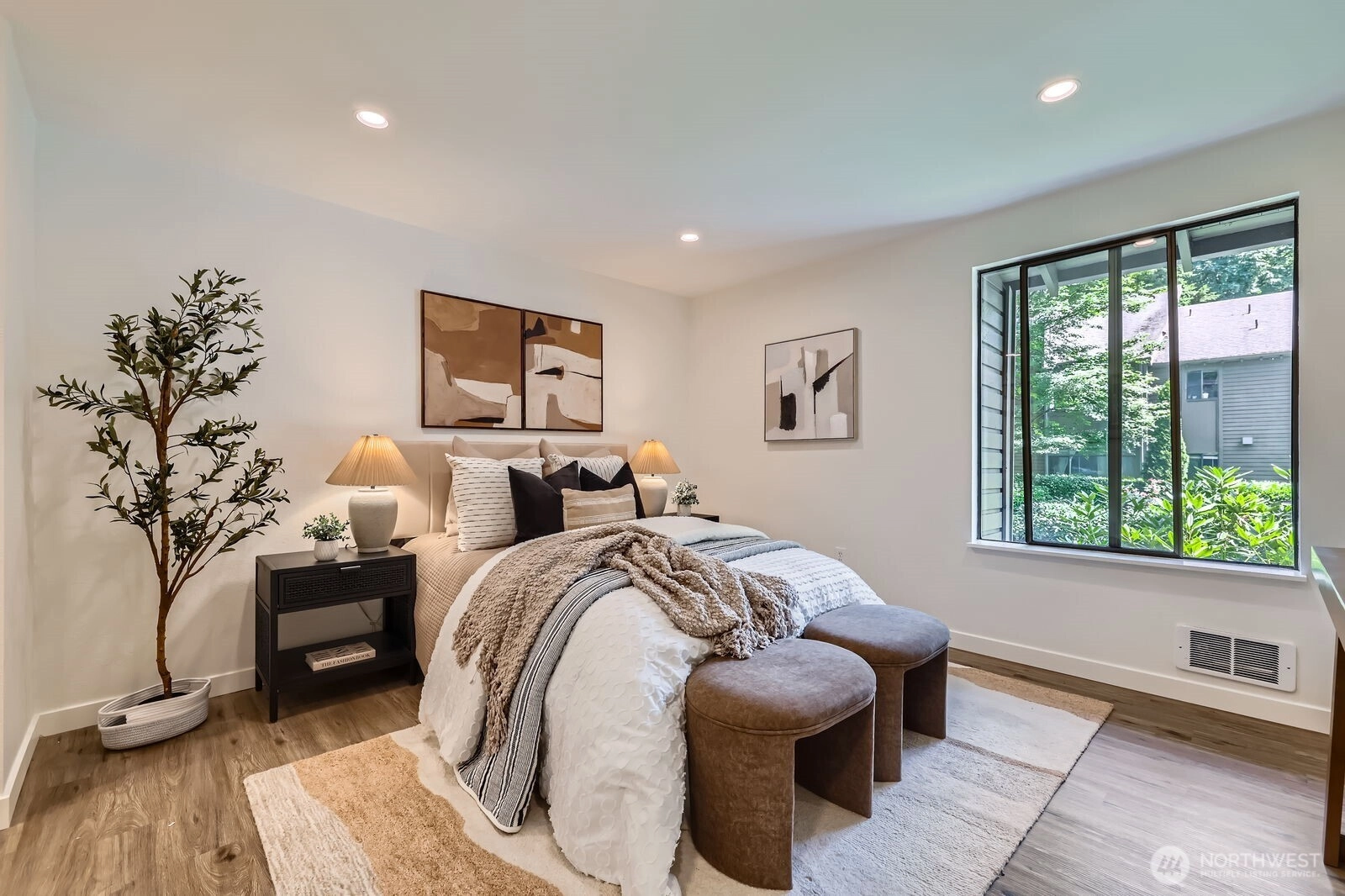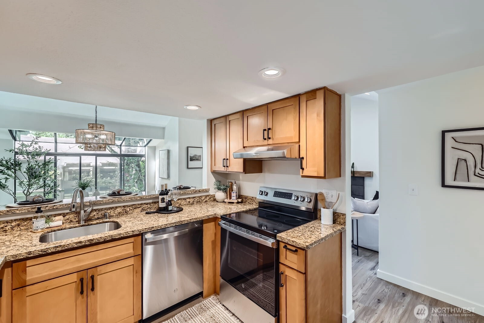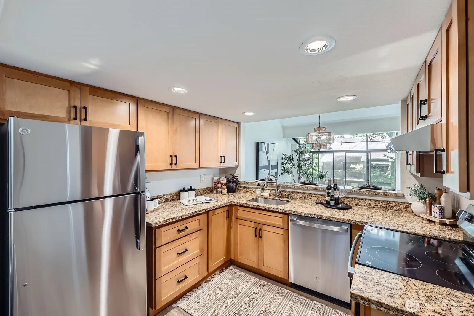 Your Kirkland lifestyle upgrade awaits! This rare top unit lives large like a 3-bedroom home, complete with a spacious loft + bonus storage - perfect for a den, office, or guest retreat (& no bumping your head!). Soaring vaulted ceilings paired w/ NW-facing windows flood the home with light and views of treetops. Discover fresh paint, new lighting, & brand-new luxury vinyl plank flooring + plush carpet throughout. The kitchen shines with granite countertops, stainless steel appliances, & a brand-new W&D. It's move-in ready comfort meets everyday convenience. Low HOA dues, no rental cap, prime location just steps to Juanita Beach, on bike trails & minutes to Totem Lake’s dining, shops, and commuter routes. Own instead of rent in Kirkland.