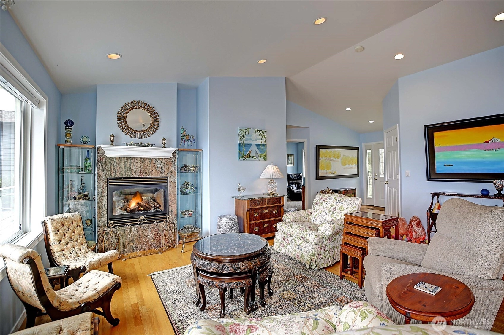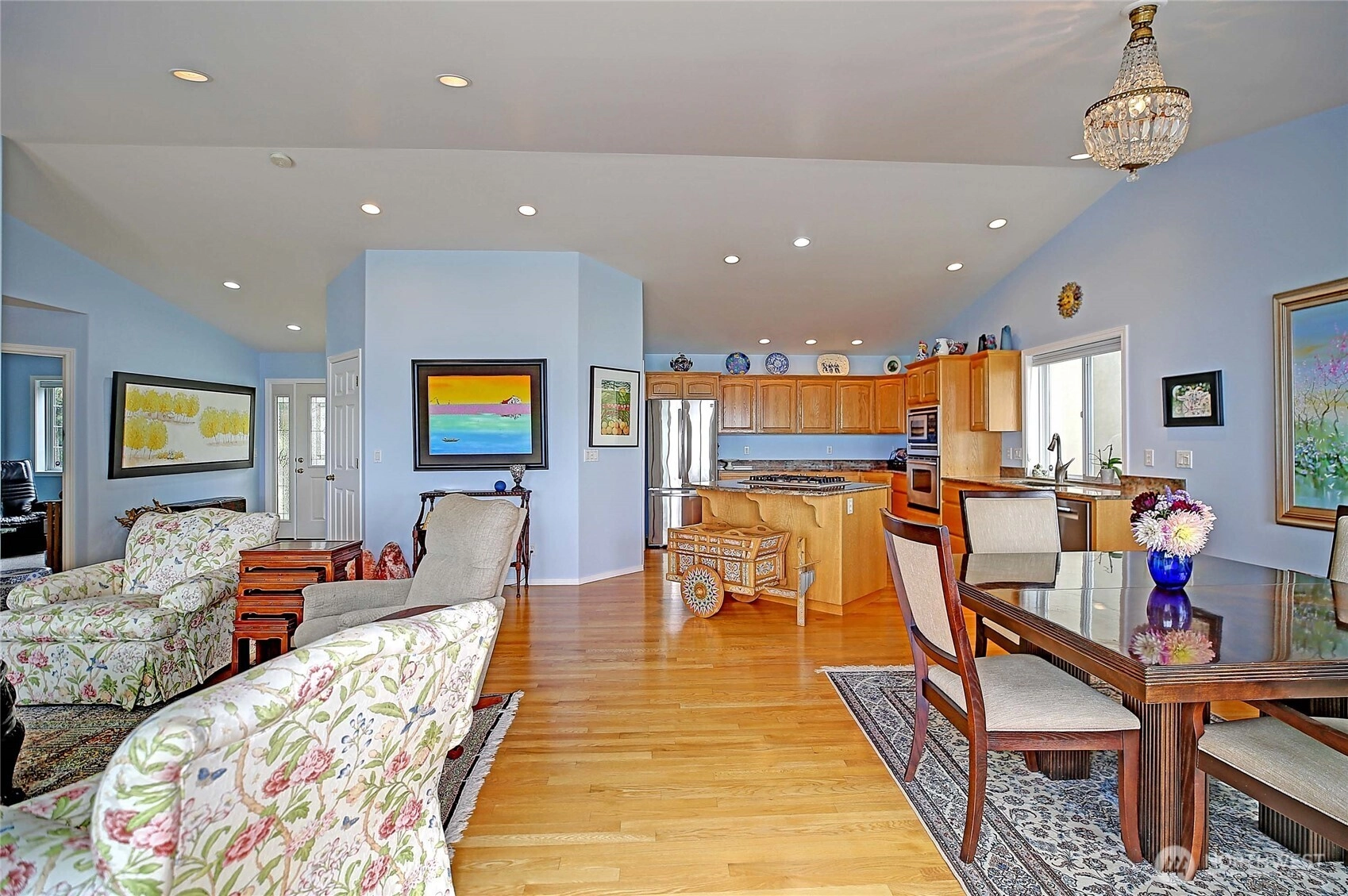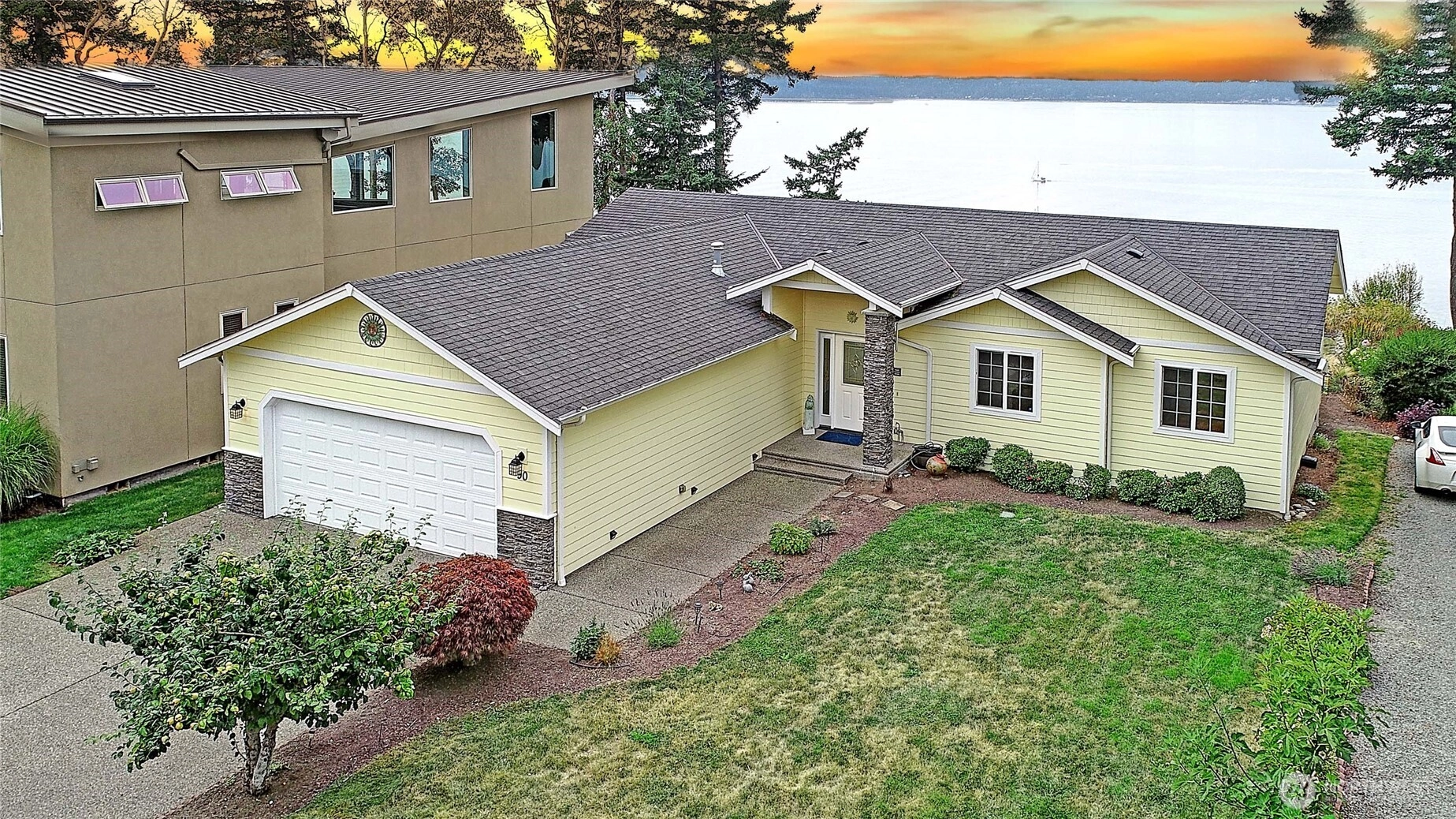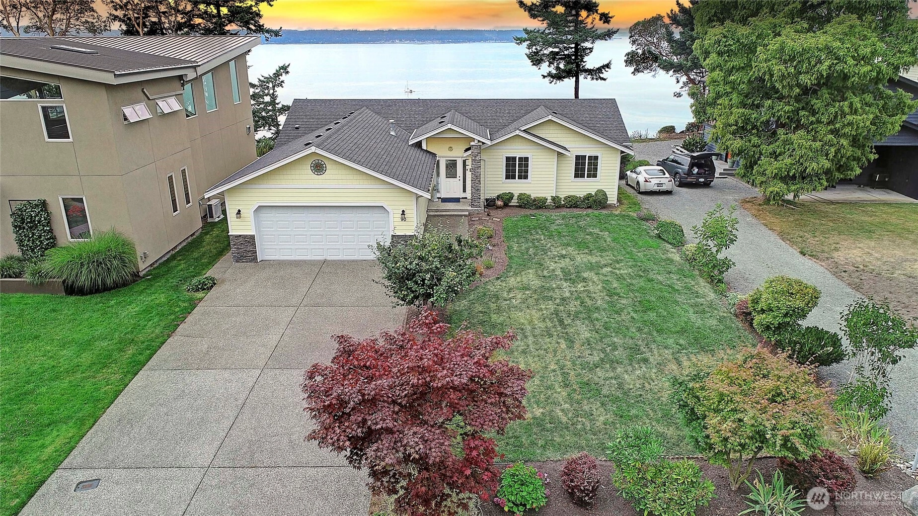 Experience island living at its finest in this west-side Camano view home, situated on 65 feet of level, high-bluff waterfront! Property stretches to the shoreline, offering a rare opportunity for true waterfront ownership. Custom-built, this rambler showcases thoughtful design & timeless craftsmanship, oriented to capture sweeping views of Saratoga Passage, Whidbey Island, Olympic Mountains, & west-side sunsets. Inside, the open-concept layout features granite countertops, hardwood floors, abundant windows, & seamless flow between living, dining, & outdoor spaces w/oversized deck extending the living space outdoors. From soaring eagles overhead to boats passing below, have a front-row seat to the beauty of the PNW. Welcome home!