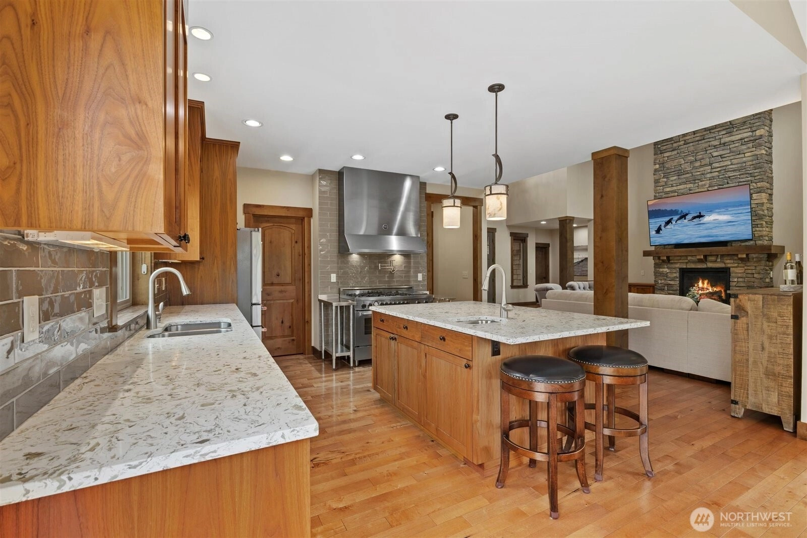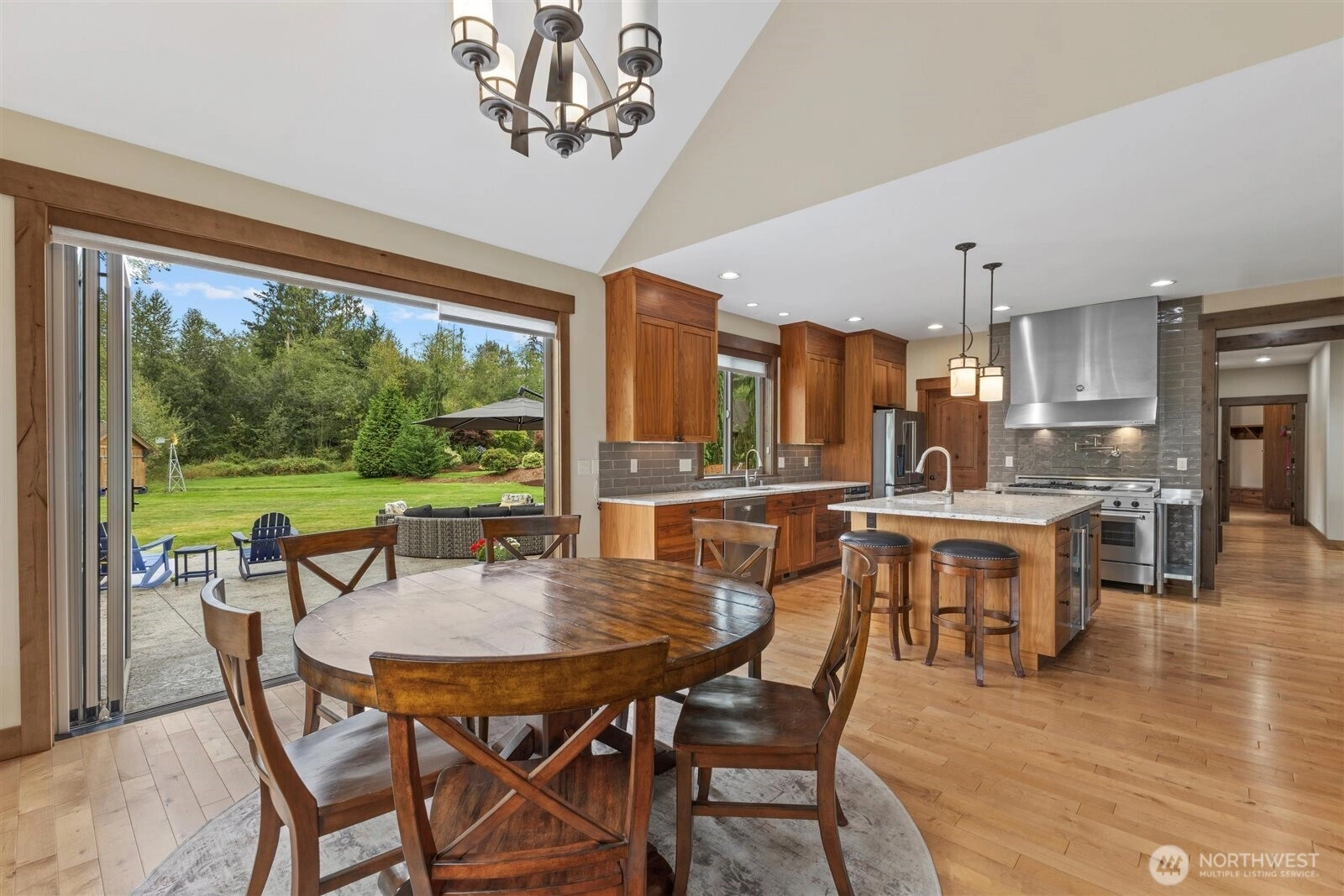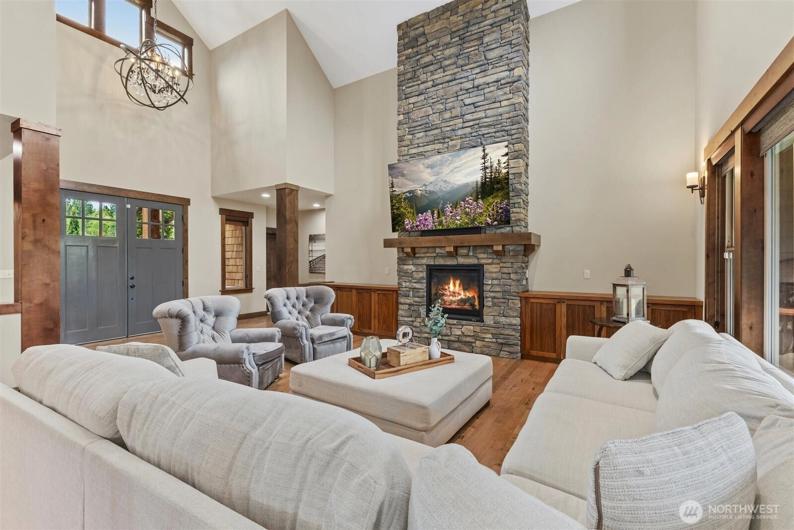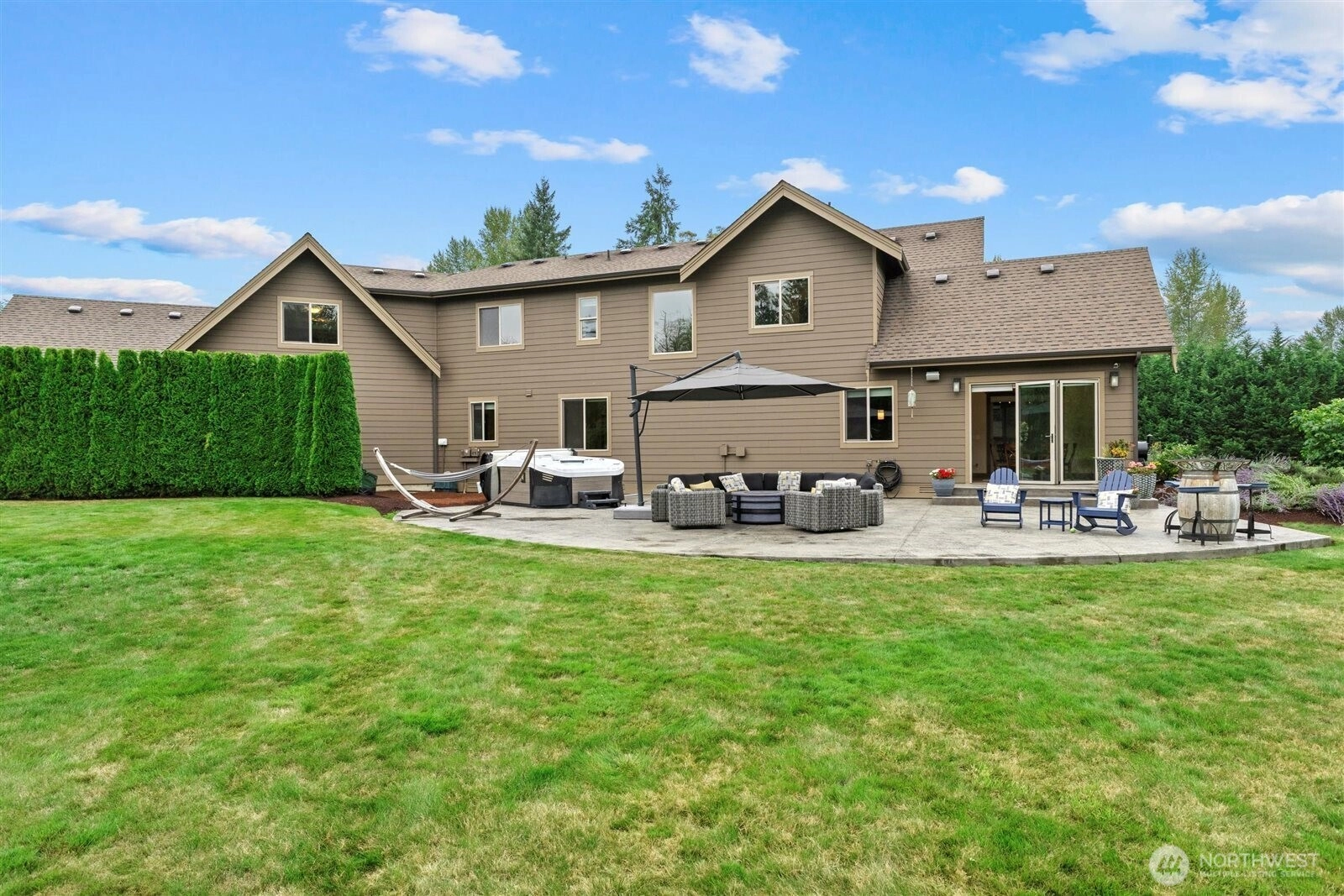 {LOCATED IN THOMASHIRE ESATES, LAKE STEVENS PREMIER GATED COMMUNITY OF 8 CUSTOM HOMES}THIS RESIDENCE SITS ON THE COMMUNITY'S LARGEST LOT SPANNING 3 PARCELS WITH BEAUTIFULLY LANDSCAPED LEVEL GROUNDS IDEAL FOR OUTDOOR LIVING. The open-concept great room and chef's kitchen flow through expansive NANO doors to a custom stamped concrete patio, creating seamless indoor-outdoor entertaining. Main floor living features a spa like primary suite plus a second bedroom with its own private bath, a dedicated office and specially designed mud room. Upstairs offers 2 bedroom's, full bath, large bonus room and an entertainment nook. Extended covered patio with tailored copper firepit. CUSTOM 12x16 SHED. Private gated access to the centennial trail.