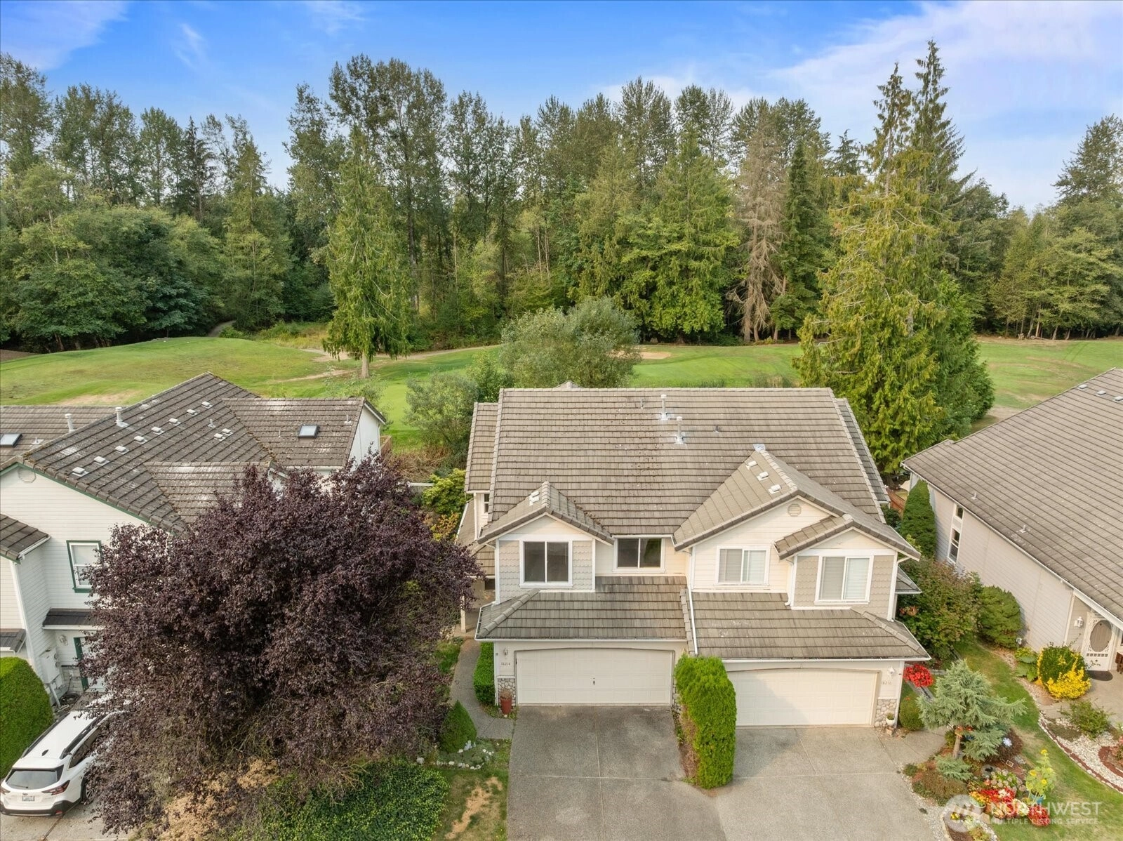 Move-in ready townhome on the 14th green of Gleneagle Golf Course! This well designed 1,750 sq ft, 3-bedroom, 2.5 bath home features an open main floor design with real hardwood floors, spacious eat-in kitchen with quartz countertops and living room with gas fireplace. Covered deck provides access to low maintenance yard with views of golf course and pond. Upstairs primary bedroom with ensuite, double closets, vaulted ceiling and private deck with views too! Two additional bedrooms, updated guest bathroom and conveniently located utility room complete the upstairs. Walkable neighborhood close to schools, shopping, restaurants and medical facilities. Great access to Highway 9 and I-5 for easy commuting! Welcome home!
