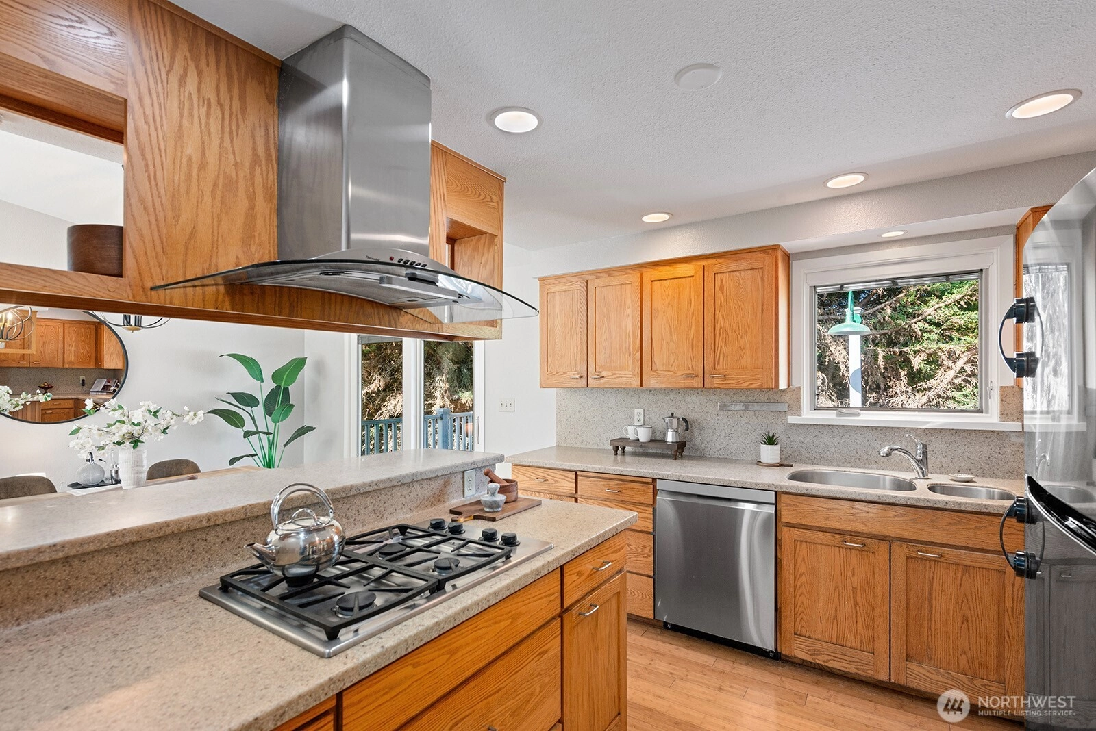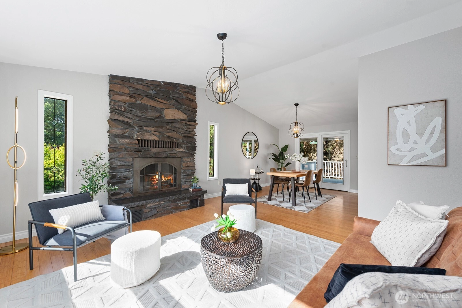 Set on a sunny 0.5-acre corner lot, this spacious 4-bedroom, 2-bathroom home offers 2,000 sq ft of comfortable living with a light-filled, open floor plan. The main level features a bright living room and kitchen, while the lower level includes a large family room—each with its own cozy fireplace. A west-facing deck is ideal for afternoon sun and summer gatherings. The expansive yard is a gardener’s dream with established fruit trees and all-day sun. Located in a peaceful, well-loved area with easy access to Raab's Lagoon Beach and Park, Dockton Park Trails, and the Golf & Swim Club—Whether you're entertaining, exploring, or simply enjoying the setting, this home has it all.