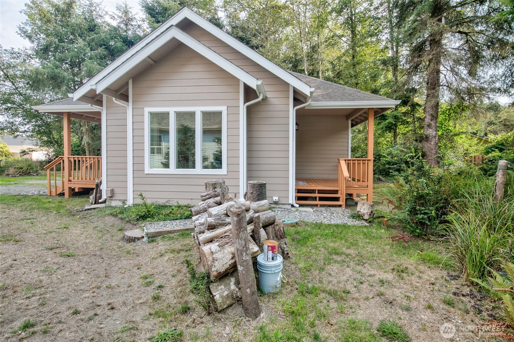 Cozy one level cottage, only minutes from the beach, Downtown, Golf Course and grand canal! Watch the wildlife from your porch and enjoy the peace and quiet, tucked away from the road in a desirable Ocean Shores neighborhood. 2 bedrooms, 1 bath, low maintenance Home and Yard for the perfect weekend getaway or small home full-time living. Lots of room to build a garage for those toys.