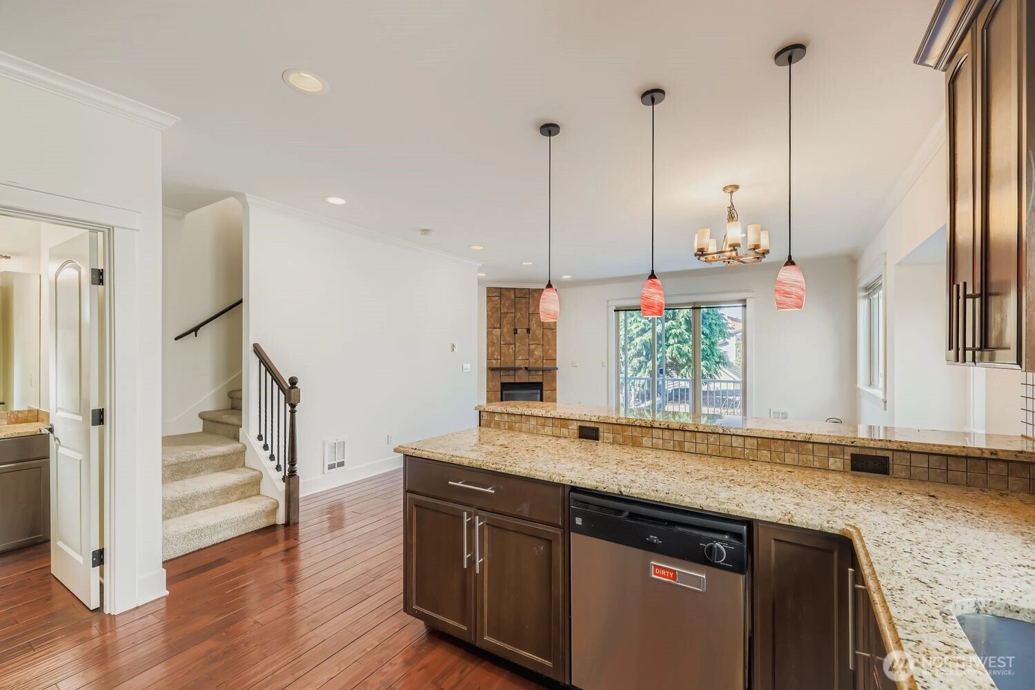 3 bed, 3.25 bath townhome in the heart of Fremont with Walkscore of 97! On a quiet street but just steps to an abundance of restaurants, cafes, and bars, and vibrant, walkable environment with numerous parks and public art installations like the Fremont Troll. Light filled, west facing great room has gas fireplace, window seat, kitchen with granite counters, eating bar, SS appliances, a half bath, and deck with westerly view. Upstairs, primary bedroom has a 4-piece bath with skylight, looking west. A 2nd bedroom has a 3/4 bath. The washer/dryer are upstairs. 3rd bedroom on the lower level has full bath and private patio. One car attached garage. NO HOA DUES!!