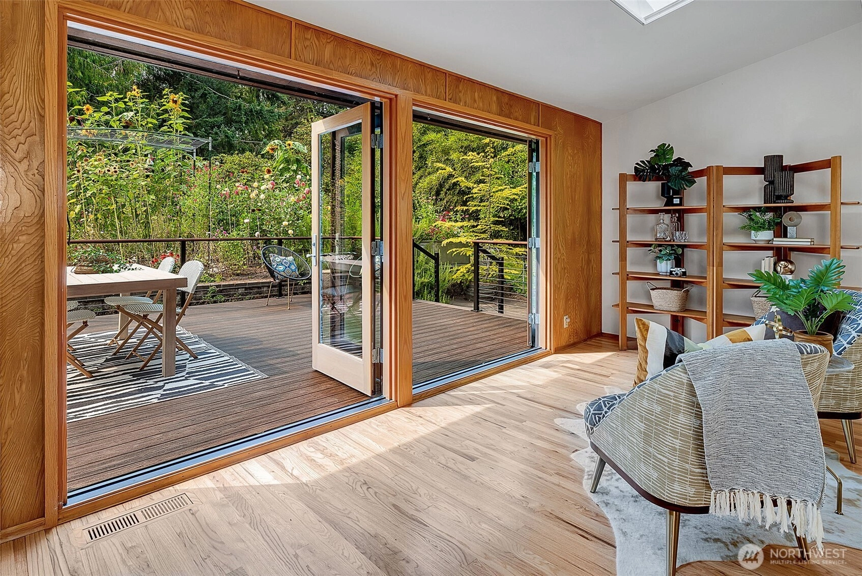 Well cared for 4 bdrm, 2 bath mid-century home is an amazing find. French doors open from the living room to a new Trex deck leading to mature landscaping with lush flower beds and a full irrigation system, creating a private retreat. The living room and lower level family room are spacious & inviting. Lower level bath is updated. Unique features include sauna, outdoor fireplace/cinema space & full shop big enough for all your projects, featuring insulated attic with ample storage space. Enjoy exclusive access to The Cove/Lot A with private beach, boat dock, athletic courts & more. Lot A rights add significant lifestyle value & exclusivity. Less than 1 mile to Marine View Park, Marvista Park, Mount Rainier Pool & Normandy Park Town Center.