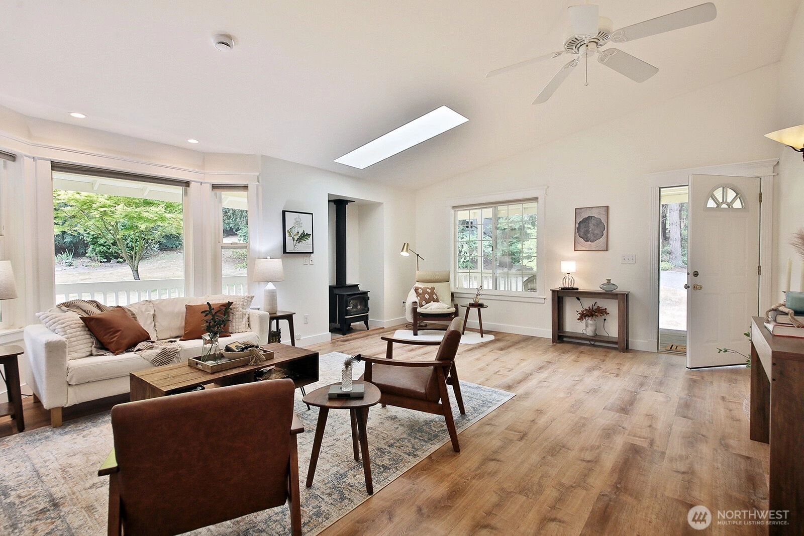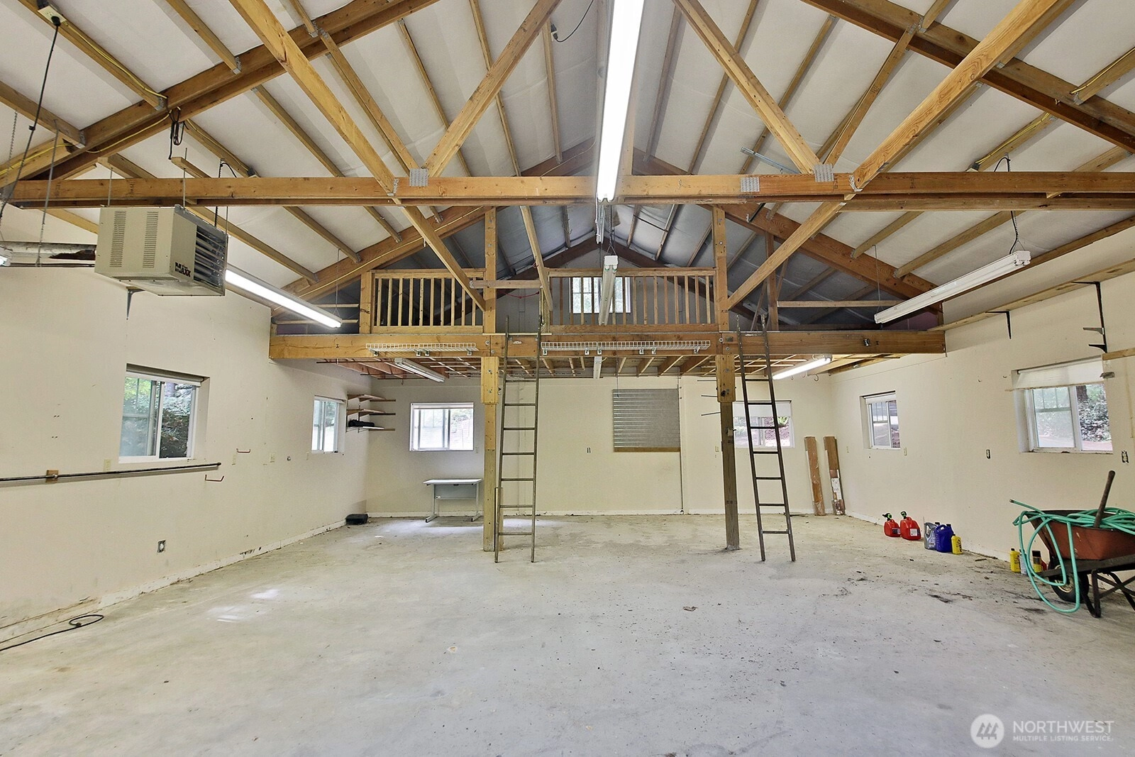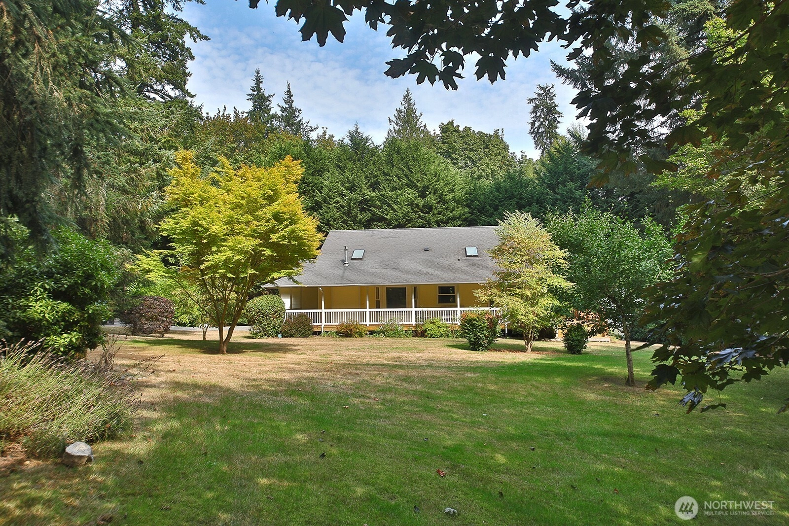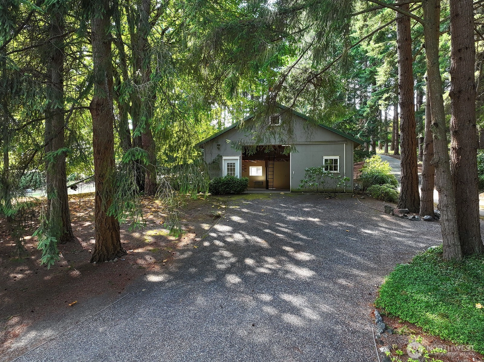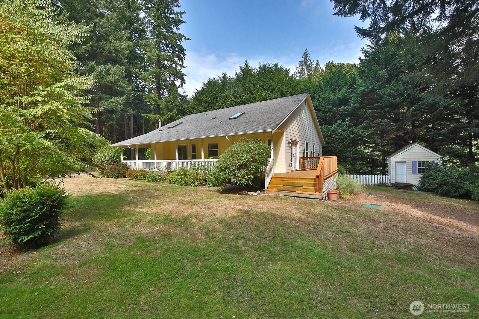 This sweet one-level home welcomes you with privacy and a picturesque .9 +/- acre lot with an exquisite balance of lawn, mature landscape, and trees, including Cedars, Firs & a magnificent Maple. Get creative with over 1000 sqft of shop space (30X60), including a loft. The freshly painted interior & new LVP flooring continue the theme of warmth with skylights, vaulted ceilings, and an abundance of windows. The generously sized eat-in kitchen has a walk-in pantry and plenty of custom cabinetry for storage. The Kitchen French doors open to a south-facing deck and over 350 sq ft of covered porch that extends along the west & north side of your home. So charming! There's even a fenced area along the east side. Welcome to Whidbey! Welcome Home!