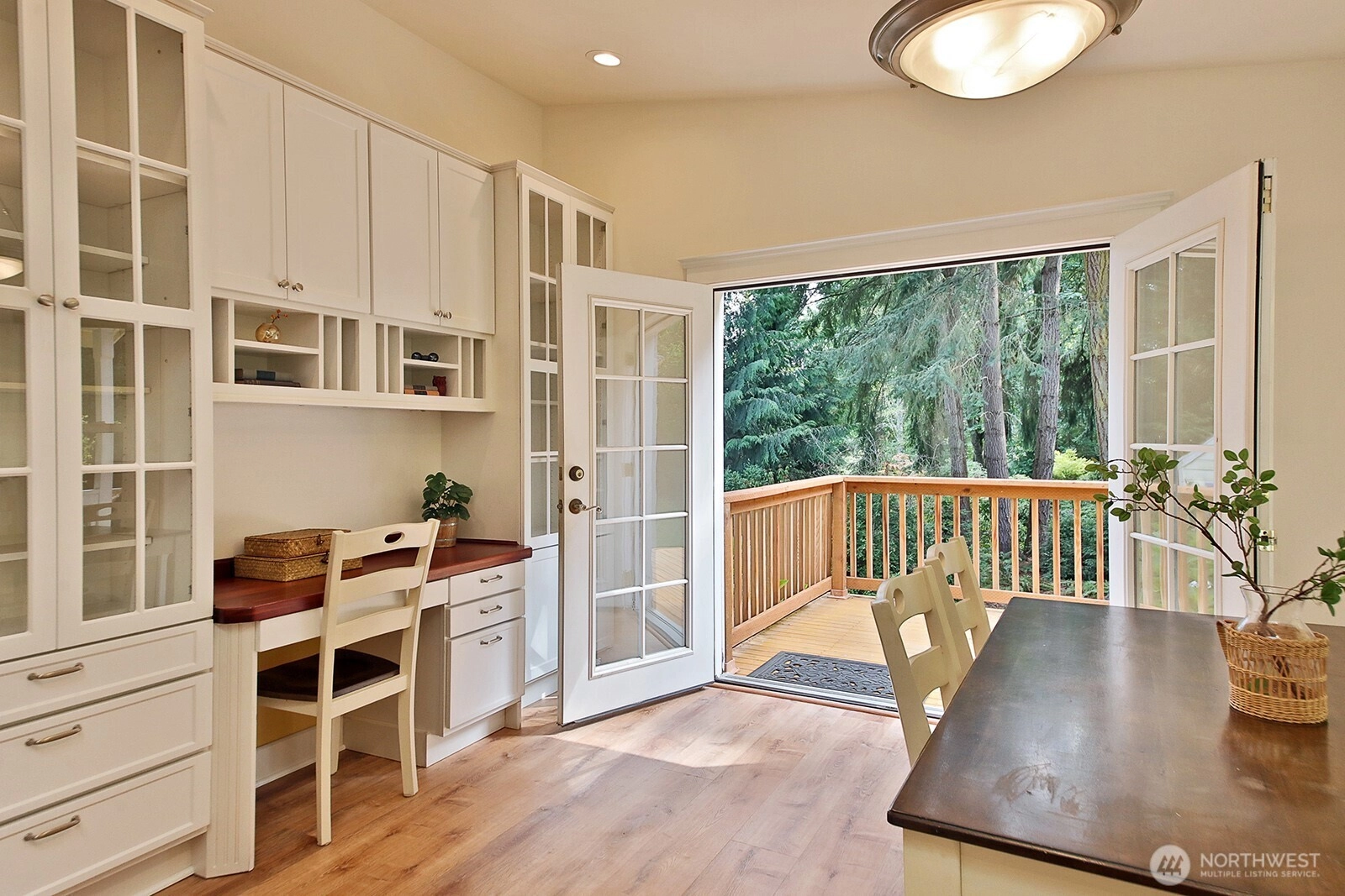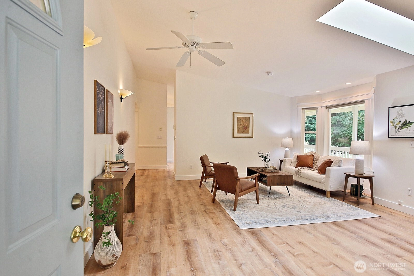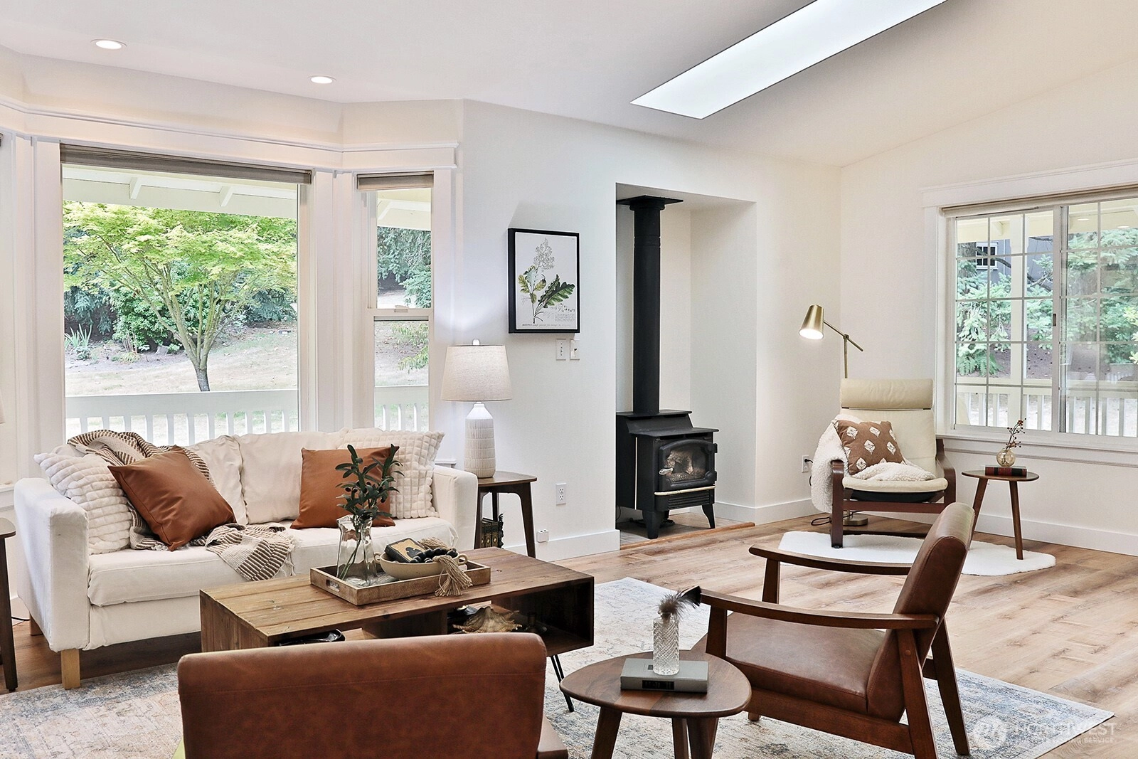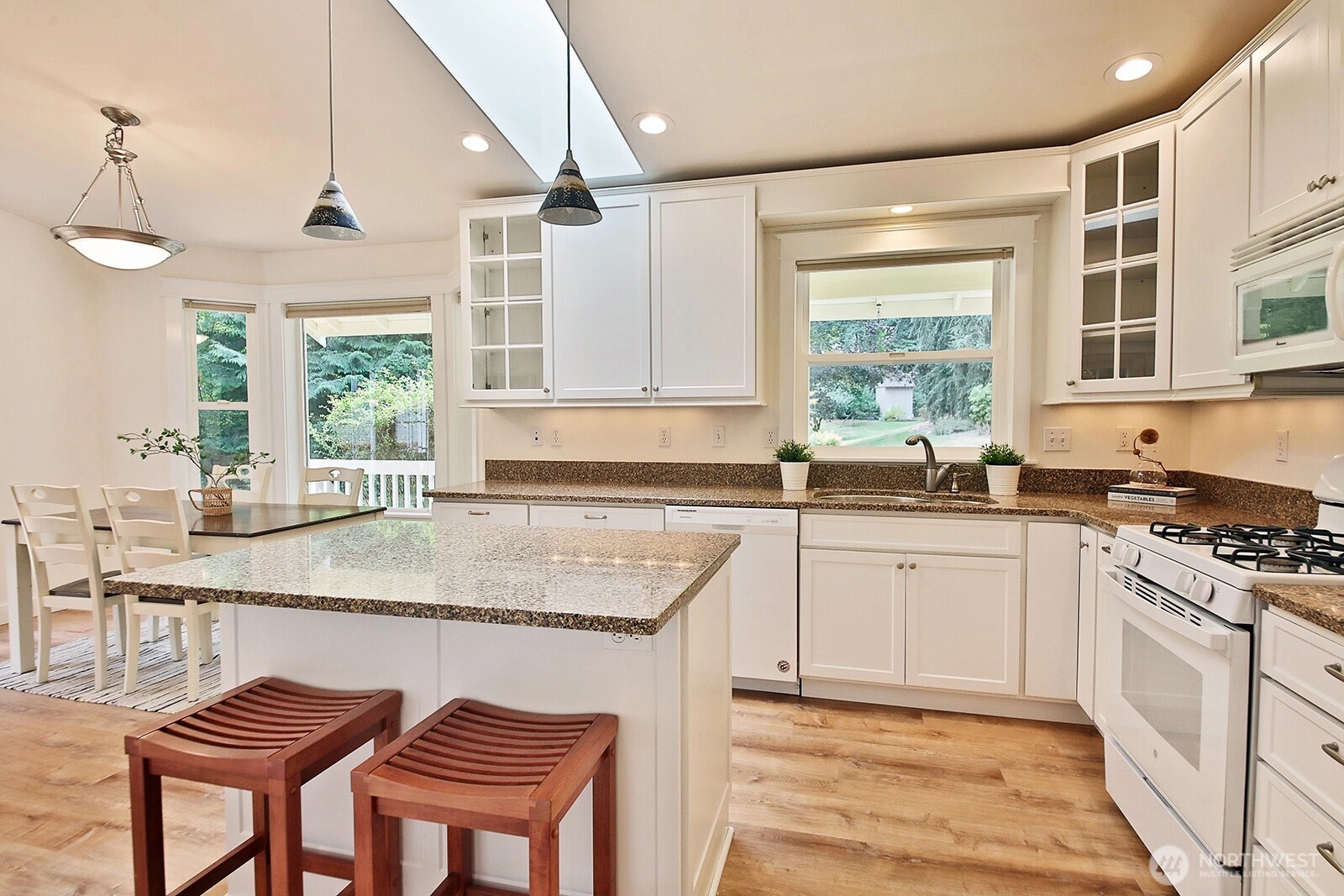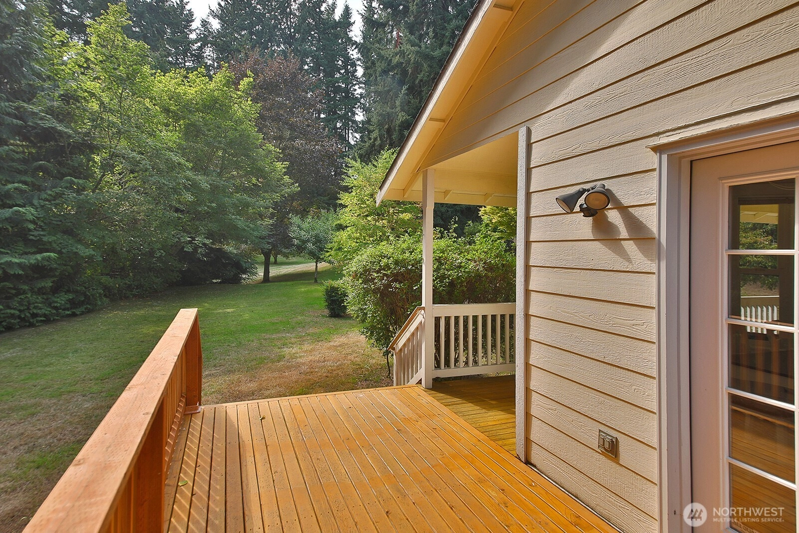 This sweet one-level home welcomes you with privacy and a picturesque .9 +/- acre lot with an exquisite balance of lawn, mature landscape, and trees, including Cedars, Firs & a magnificent Maple. Get creative with over 1000 sqft of shop space (30X60), including a loft. The freshly painted interior & new LVP flooring continue the theme of warmth with skylights, vaulted ceilings, and an abundance of windows. The generously sized eat-in kitchen has a walk-in pantry and plenty of custom cabinetry for storage. The Kitchen French doors open to a south-facing deck and over 350 sq ft of covered porch that extends along the west & north side of your home. So charming! There's even a fenced area along the east side. Welcome to Whidbey! Welcome Home!