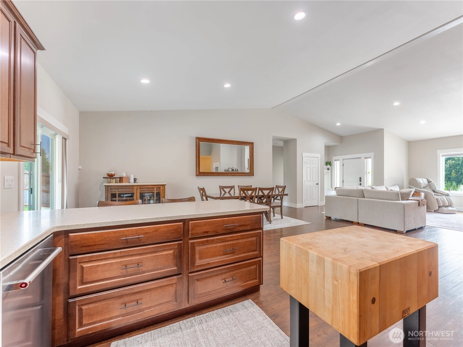 Built in 2018, this turn-key home offers the perfect blend of comfort, style, and privacy. 3 bdrms, 2.25 baths, and 2,024 sq. ft. of thoughtfully designed living space. Sitting on a .37-acre lot, tucked away at the end of a quiet cul-de-sac, you’ll find this freshly painted interior w/vaulted living room and cozy propane fireplace. LVP flooring in main living areas and halls and a spacious primary suite with large tiled shower and tile floors. The open layout is ideal for everyday living as well as entertaining. Step outside to enjoy the covered deck, fenced rear yard, garden areas! An oversized driveway, RV parking and close proximity to Three Lakes Golf Course make this home ideal!