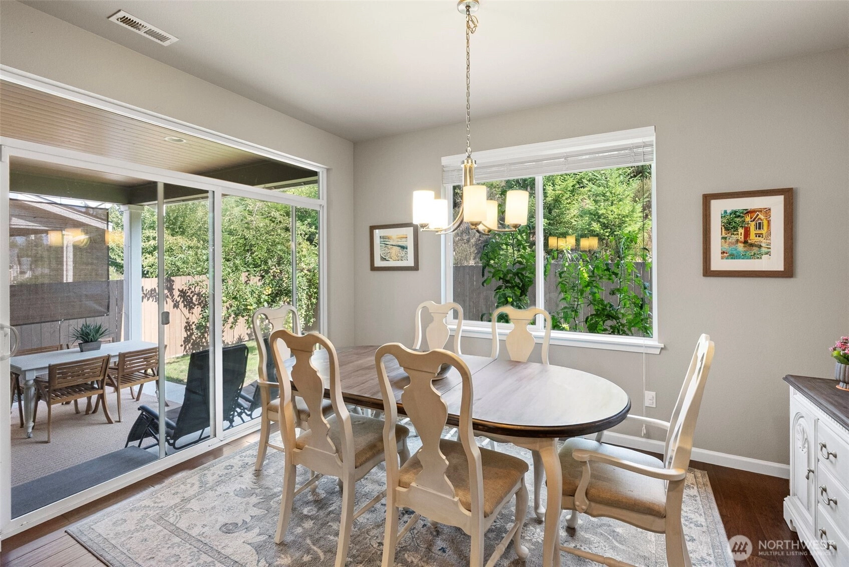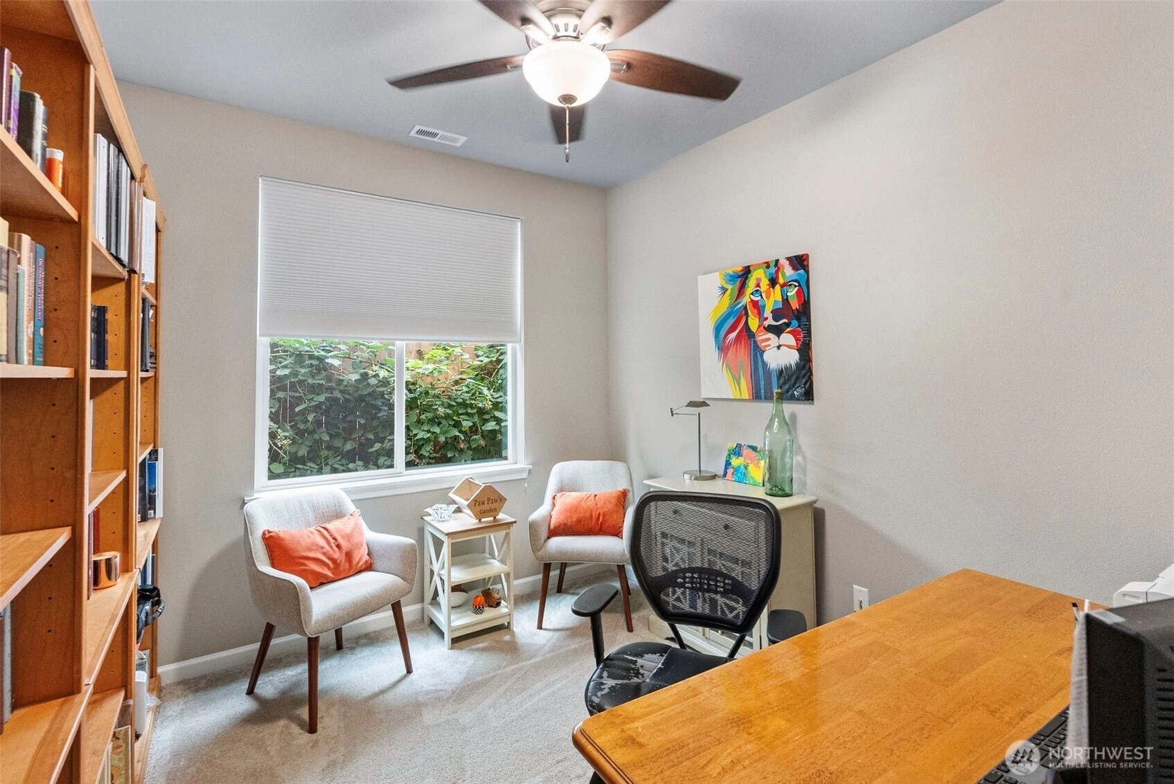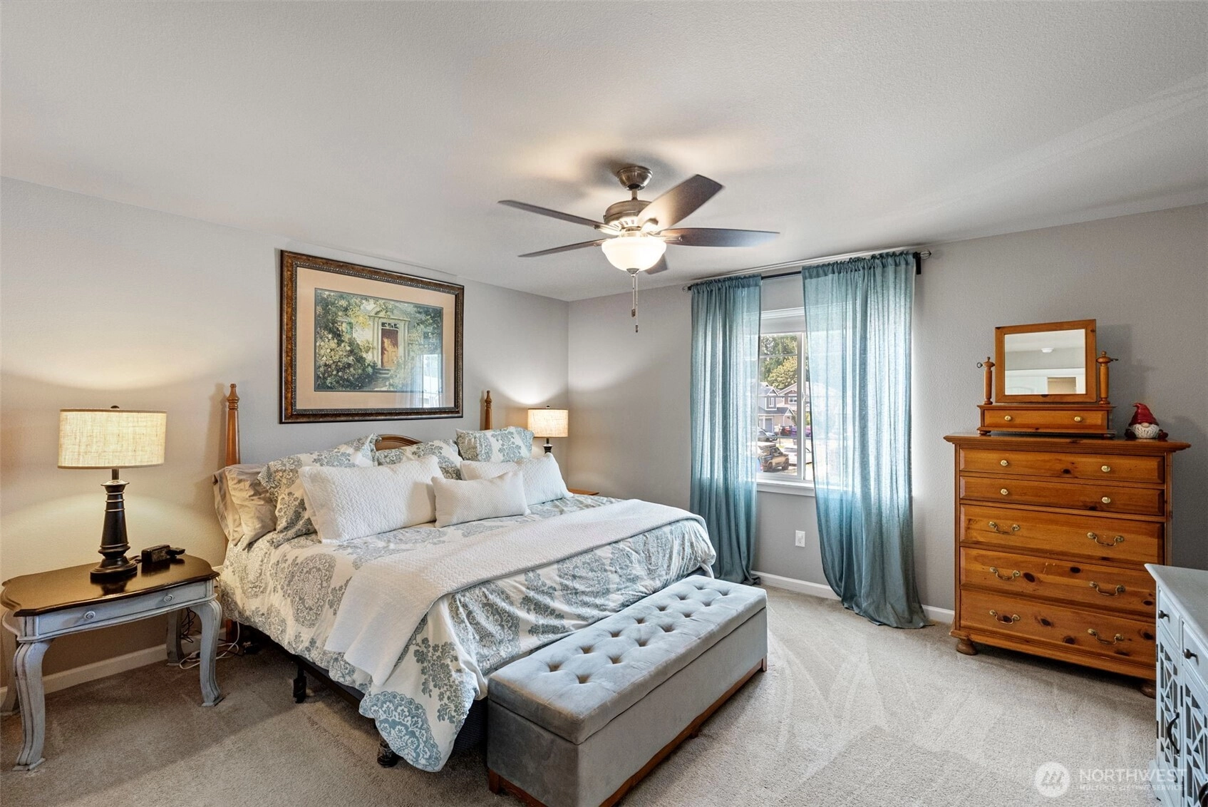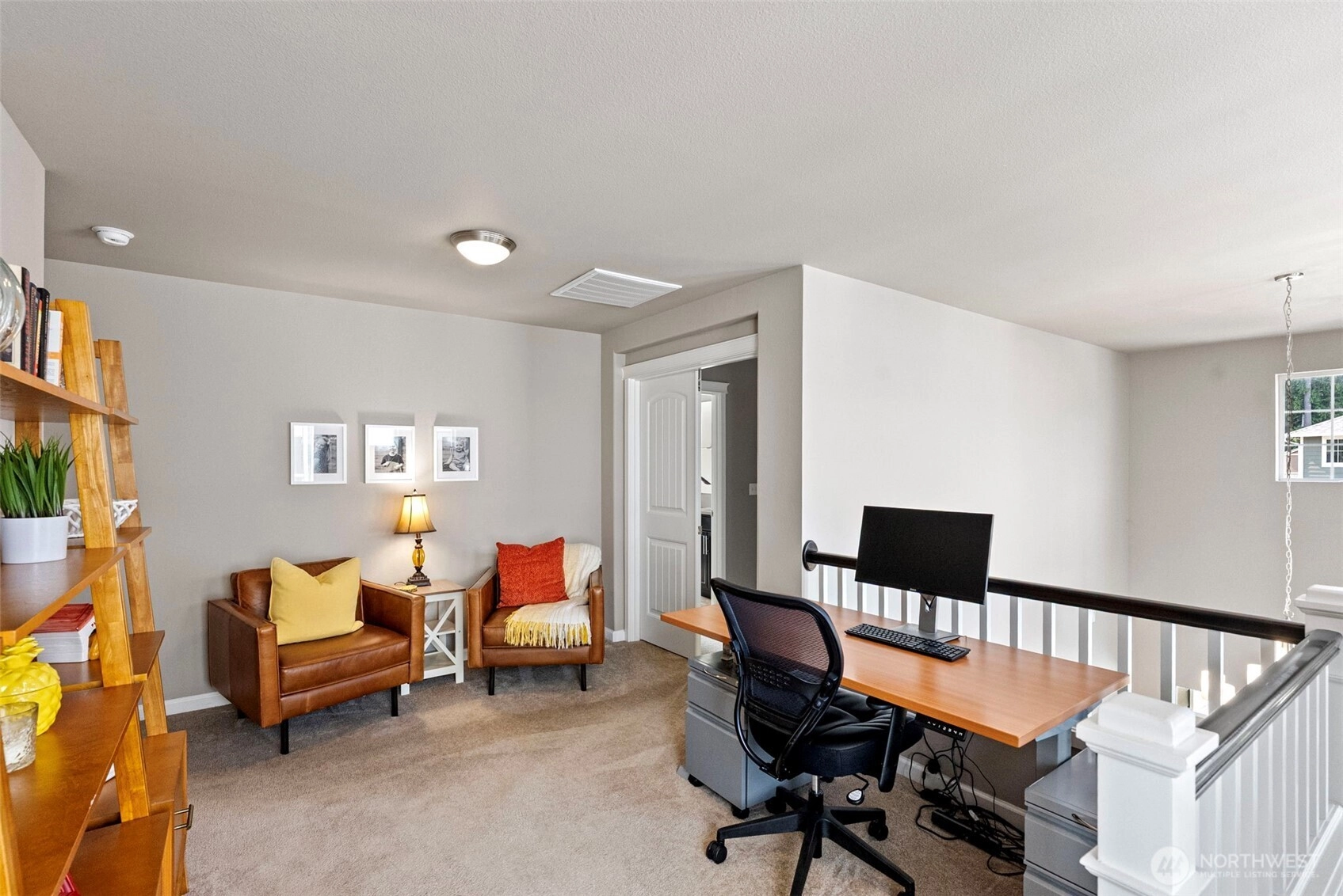 Most Popular 4-Bedroom + Office Floorplan in Bayside! Vaulted ceiling in the entryway has bright natural light. Beautiful engineered hardwood floors cover most of the main floor. Spacious kitchen features quartz counters, high-top island, walk-in pantry, double-oven, & SS appliances. Living room has a gas fireplace with tile surround & built-in bookshelves. Main floor office & full bath for added floorplan flexibility! Upstairs, the spacious primary suite includes a 5-piece ensuite bath & walk-in closet. 2nd floor includes 3 large guest bedrooms, laundry, & a loft area. Fully fenced yard with covered back patio. Enjoy the apple tree & blackberry/strawberry plants! Community playgrounds. Easy commute to PSNS, Bangor Sub base, & ferries.