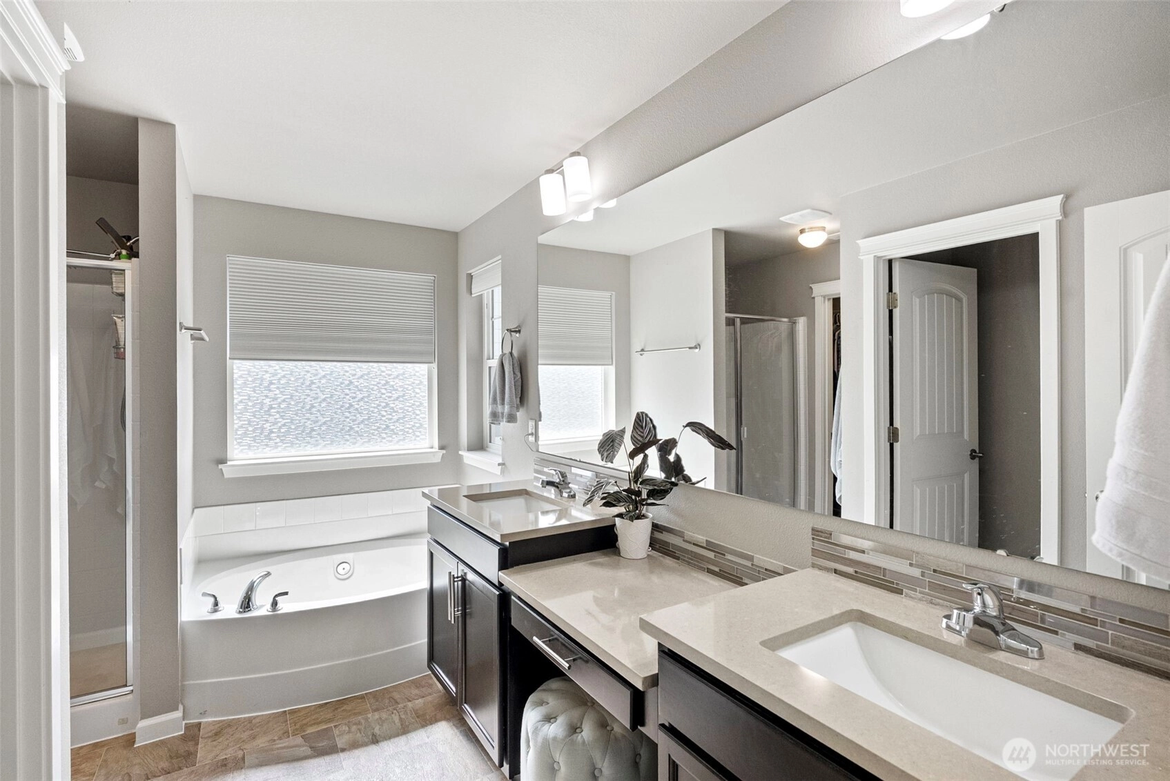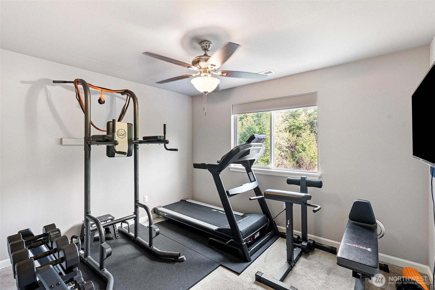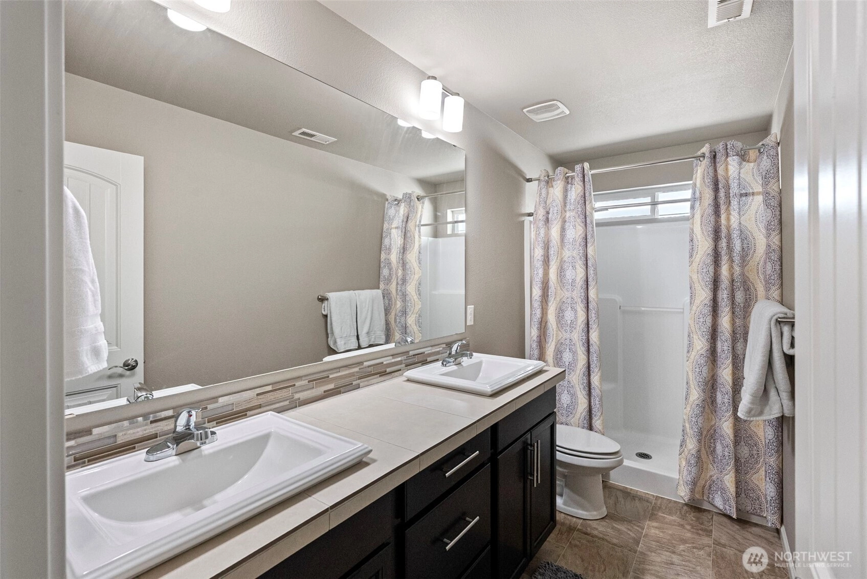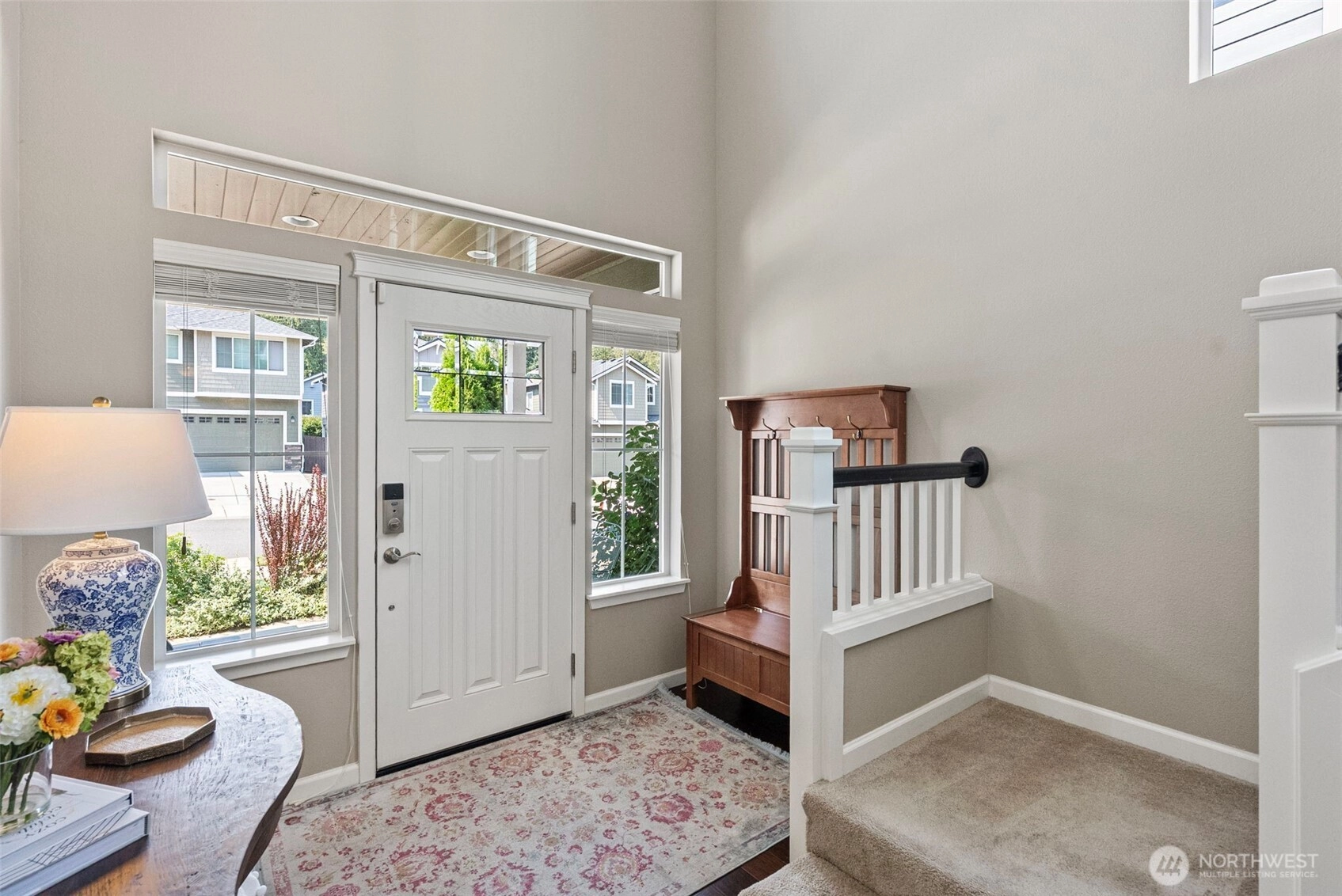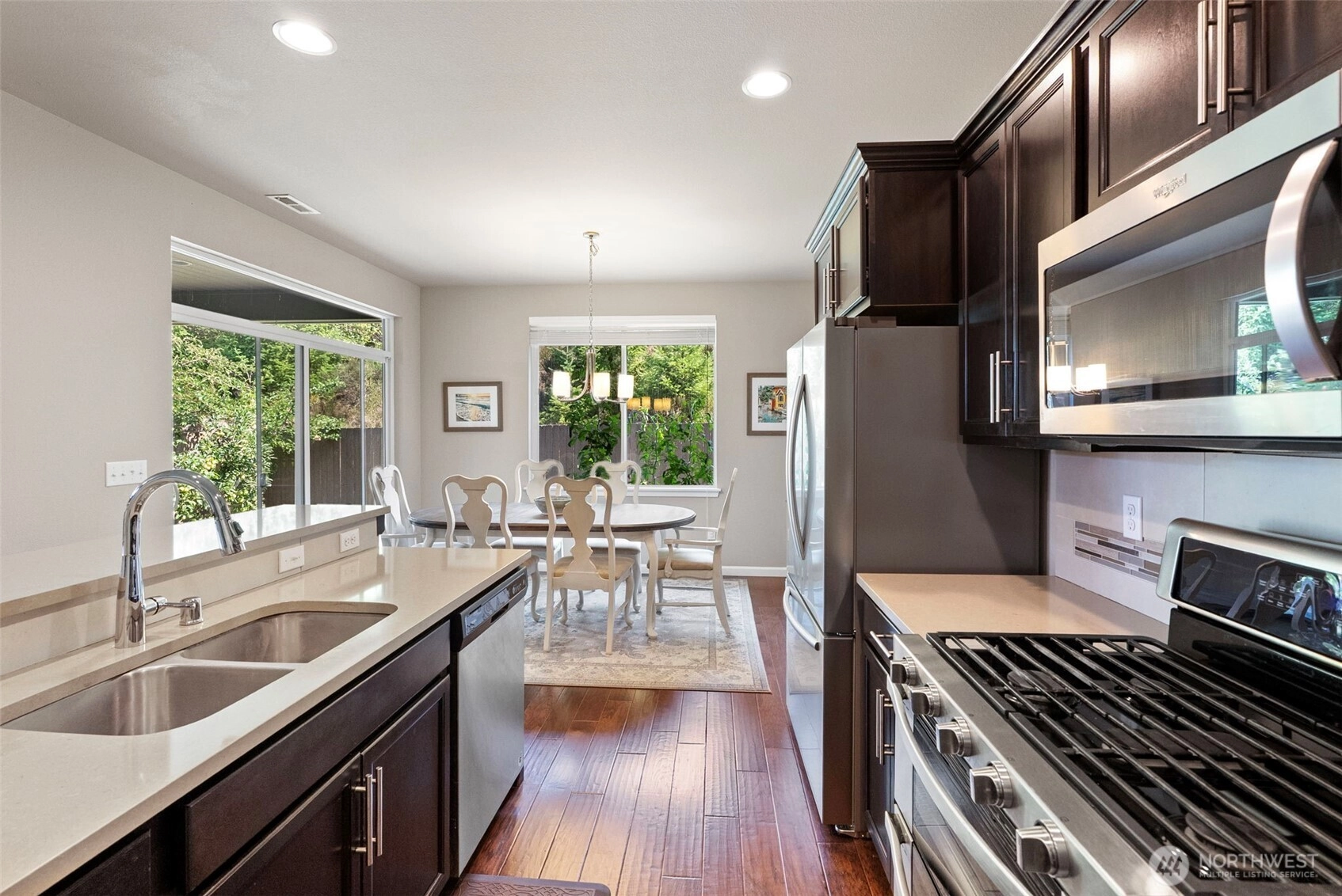 Most Popular 4-Bedroom + Office Floorplan in Bayside! Vaulted ceiling in the entryway has bright natural light. Beautiful engineered hardwood floors cover most of the main floor. Spacious kitchen features quartz counters, high-top island, walk-in pantry, double-oven, & SS appliances. Living room has a gas fireplace with tile surround & built-in bookshelves. Main floor office & full bath for added floorplan flexibility! Upstairs, the spacious primary suite includes a 5-piece ensuite bath & walk-in closet. 2nd floor includes 3 large guest bedrooms, laundry, & a loft area. Fully fenced yard with covered back patio. Enjoy the apple tree & blackberry/strawberry plants! Community playgrounds. Easy commute to PSNS, Bangor Sub base, & ferries.