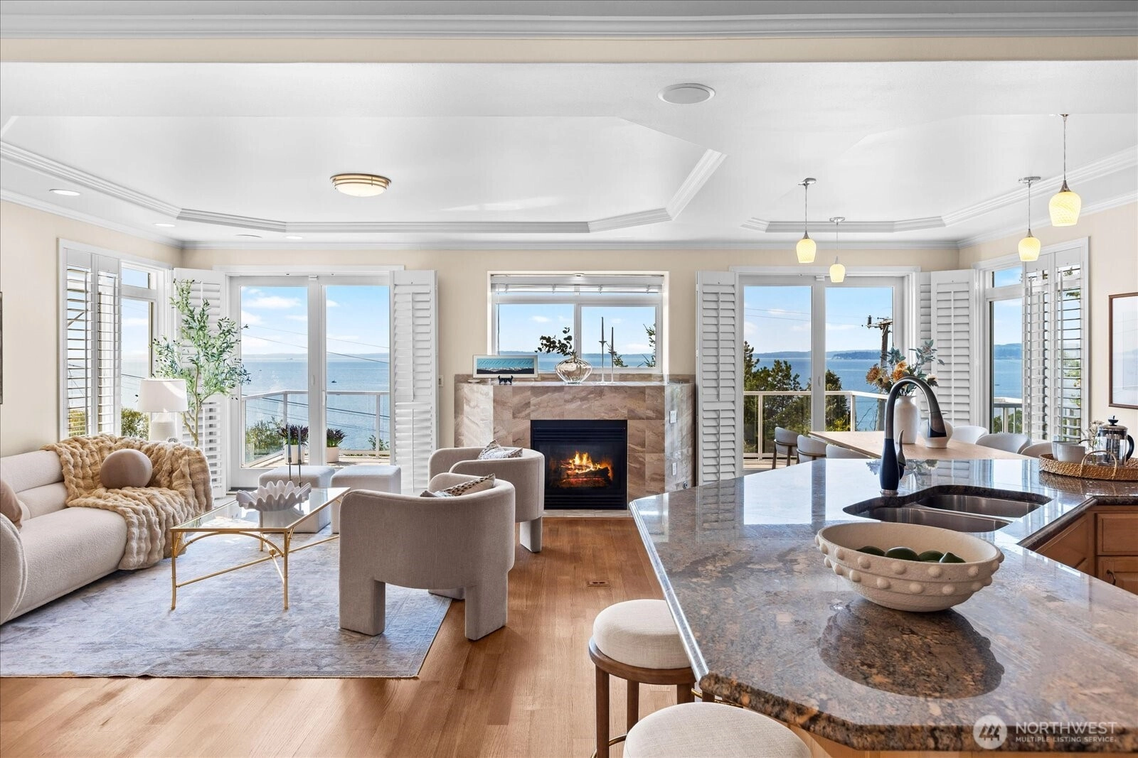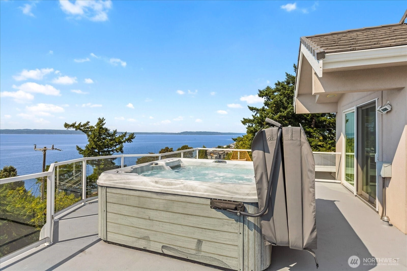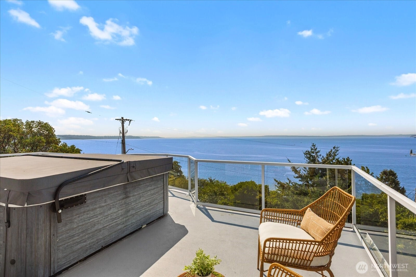 Don’t miss this stunningly Northwest contemporary with breathtaking Sound & mountain views & loads of natural light. Open-concept layout offers seamless flow, dramatic design & expansive panoramas. Every deck showcases a view—including the backyard that features a beautiful waterfall & a covered, heated patio, perfect for year-round gatherings. Entertain in style or simply relax while watching ships & storms roll by. The luxurious primary suite includes a spa-like bath, sprawling deck & hot tub. The main floor features a spectacular great room, 2 brms & a full bath—ideal for guests. Just a short stroll to the beach, library, dining & of course, The Cabin Tavern. Experience the quintessential Richmond Beach life in this unforgettable home!