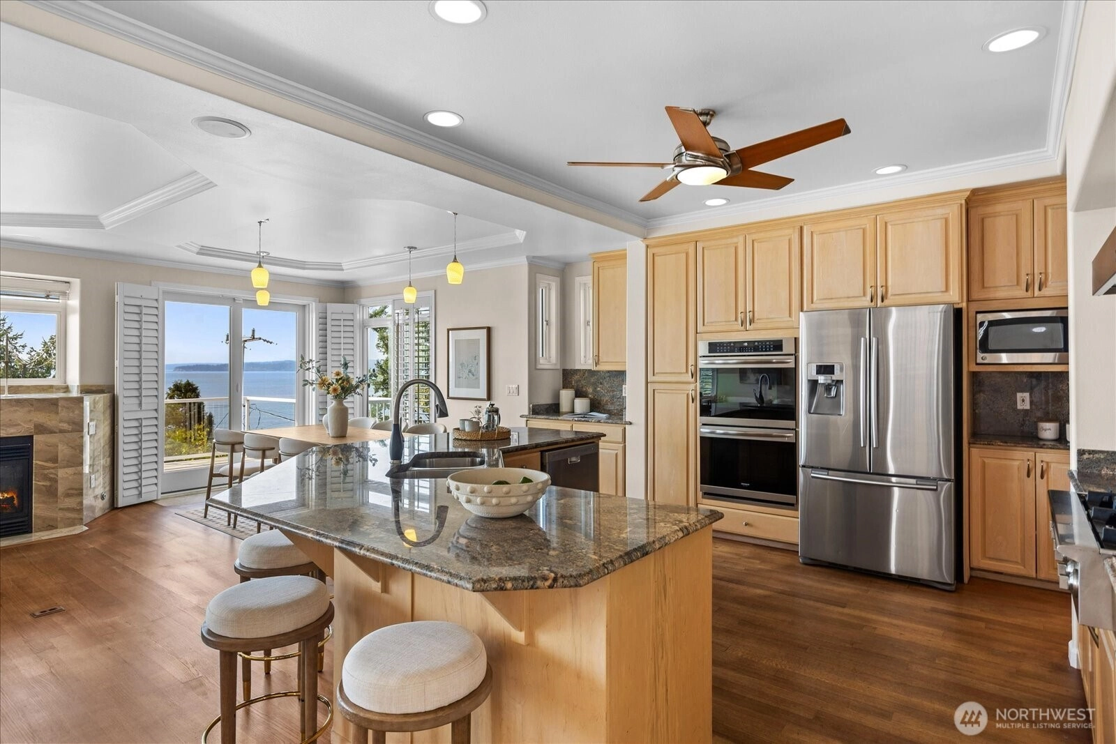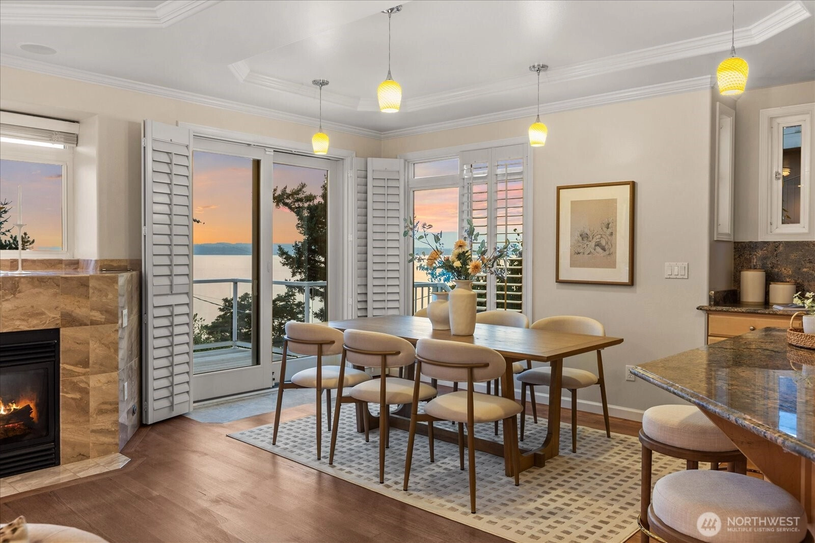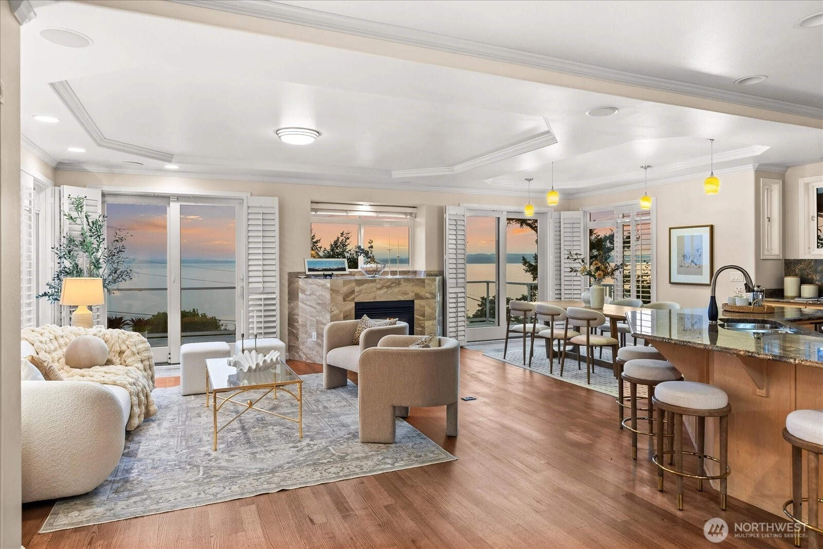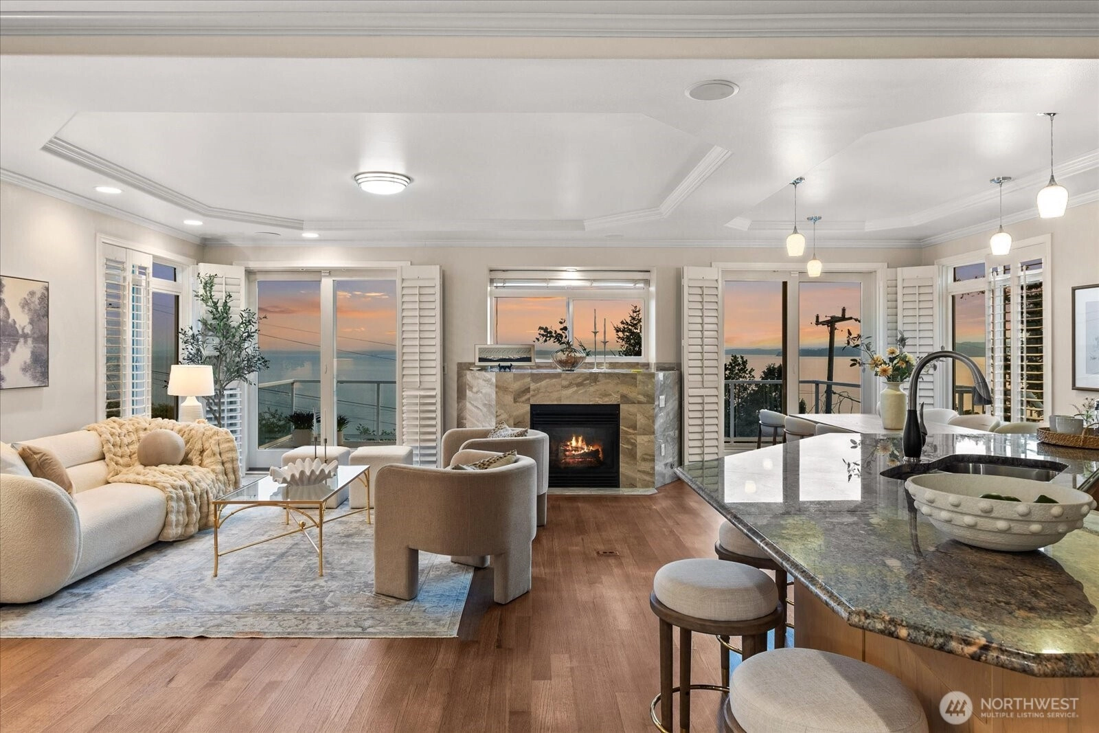 Don’t miss this stunningly Northwest contemporary with breathtaking Sound & mountain views & loads of natural light. Open-concept layout offers seamless flow, dramatic design & expansive panoramas. Every deck showcases a view—including the backyard that features a beautiful waterfall & a covered, heated patio, perfect for year-round gatherings. Entertain in style or simply relax while watching ships & storms roll by. The luxurious primary suite includes a spa-like bath, sprawling deck & hot tub. The main floor features a spectacular great room, 2 brms & a full bath—ideal for guests. Just a short stroll to the beach, library, dining & of course, The Cabin Tavern. Experience the quintessential Richmond Beach life in this unforgettable home!