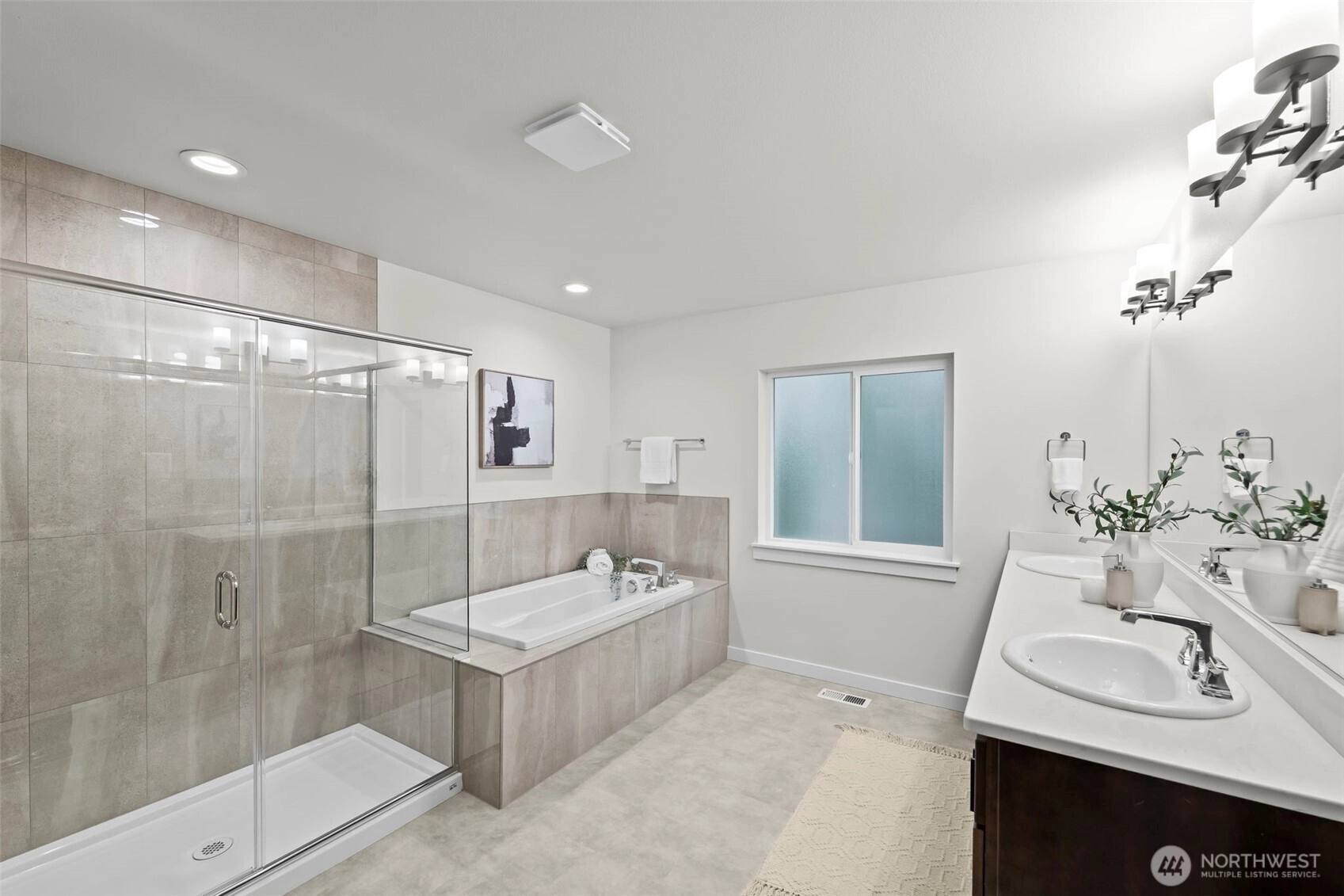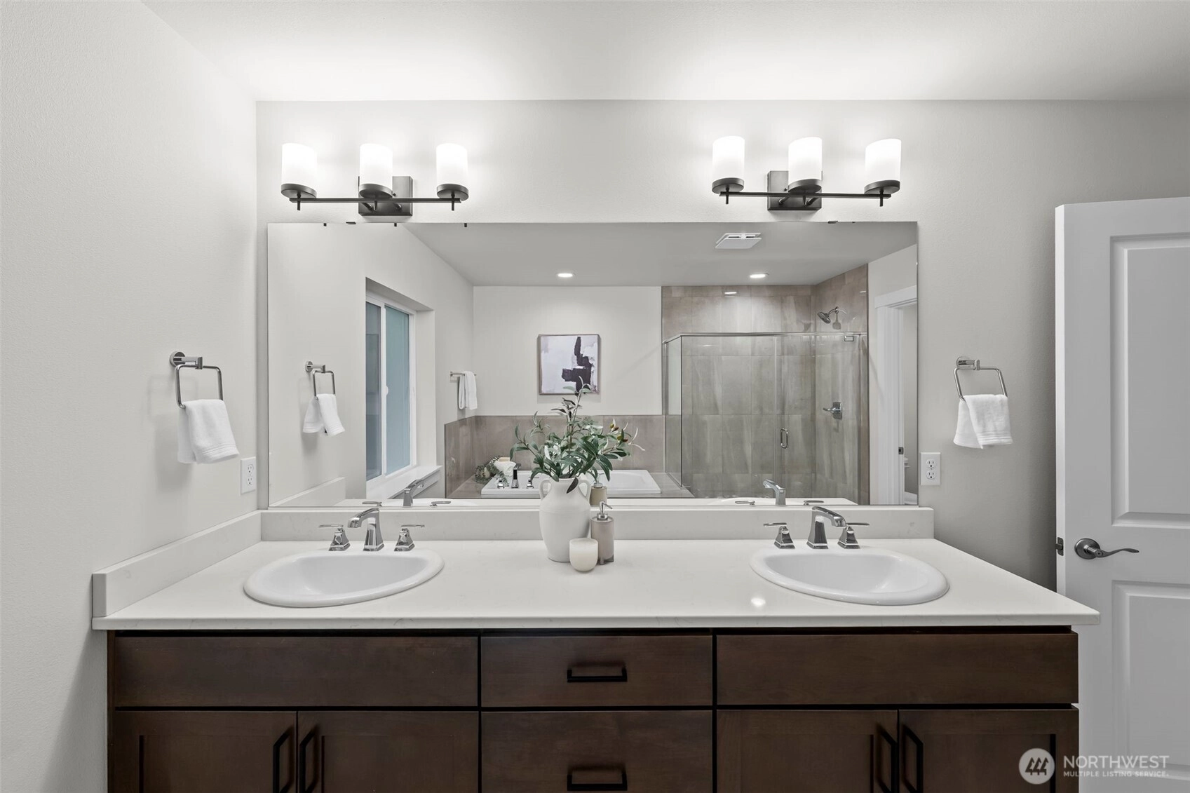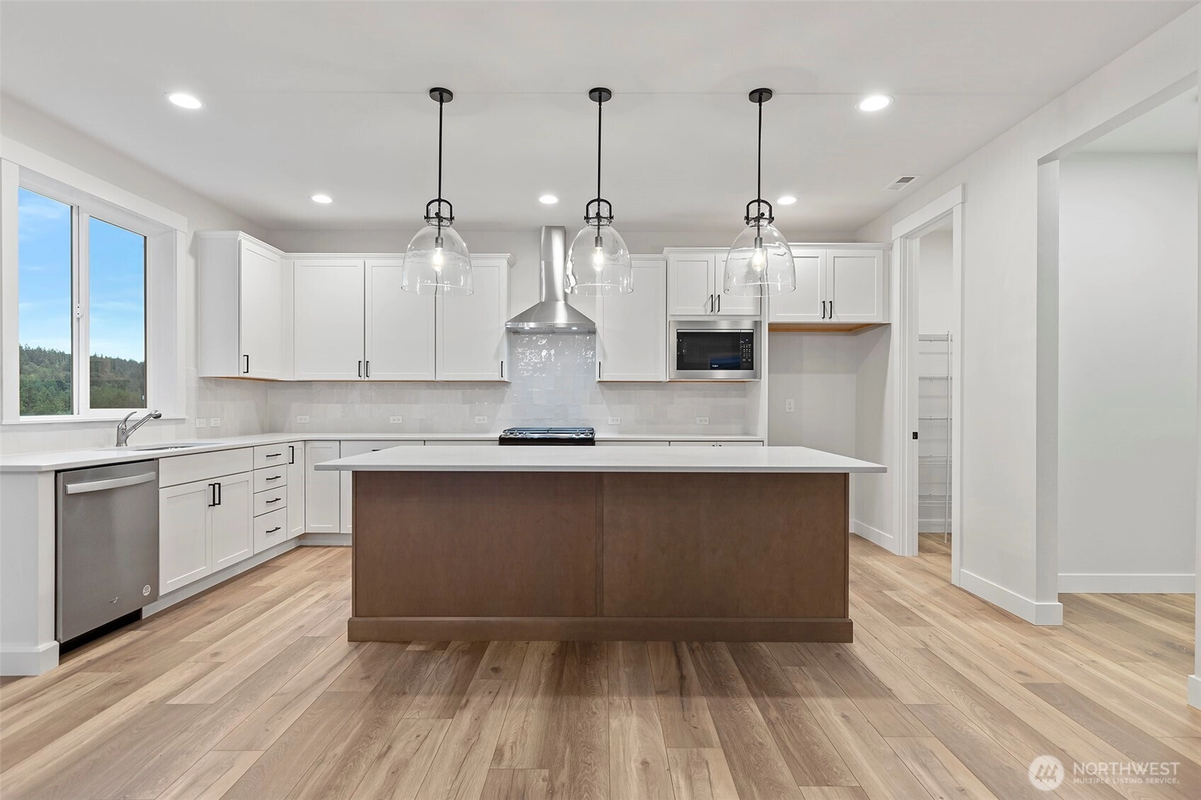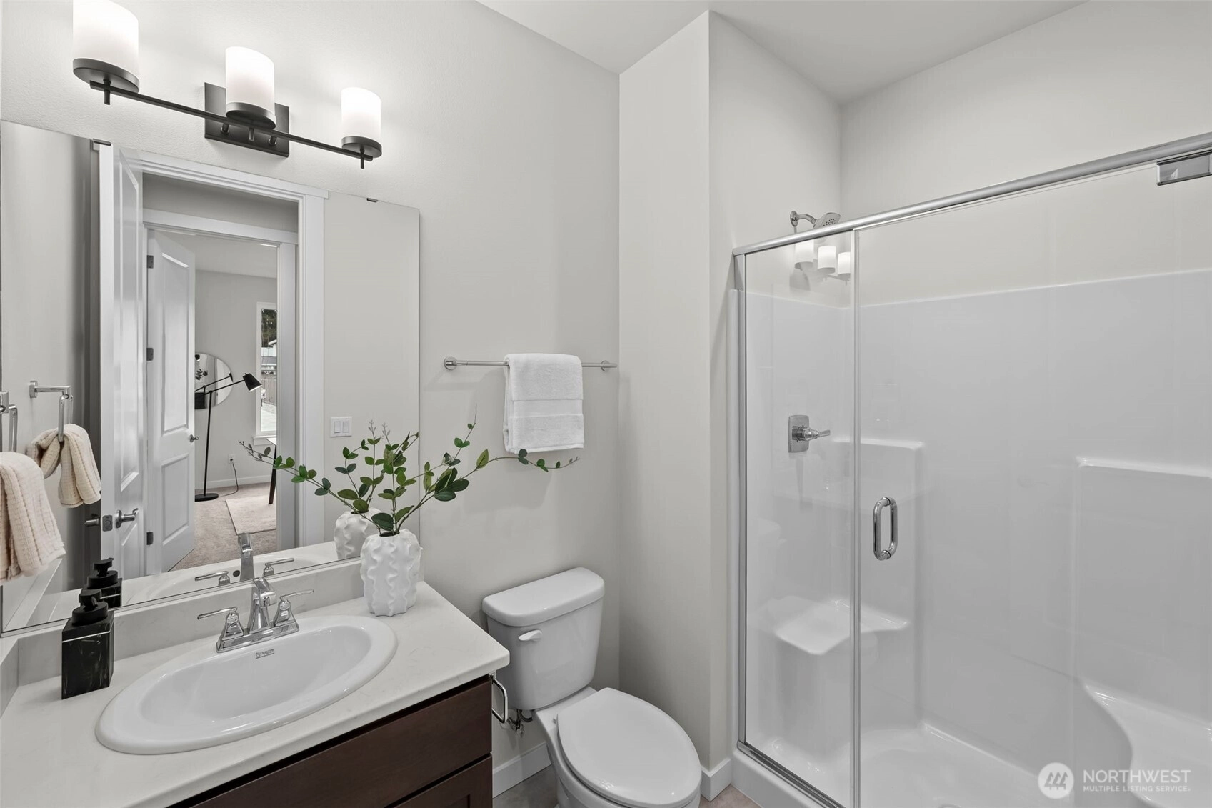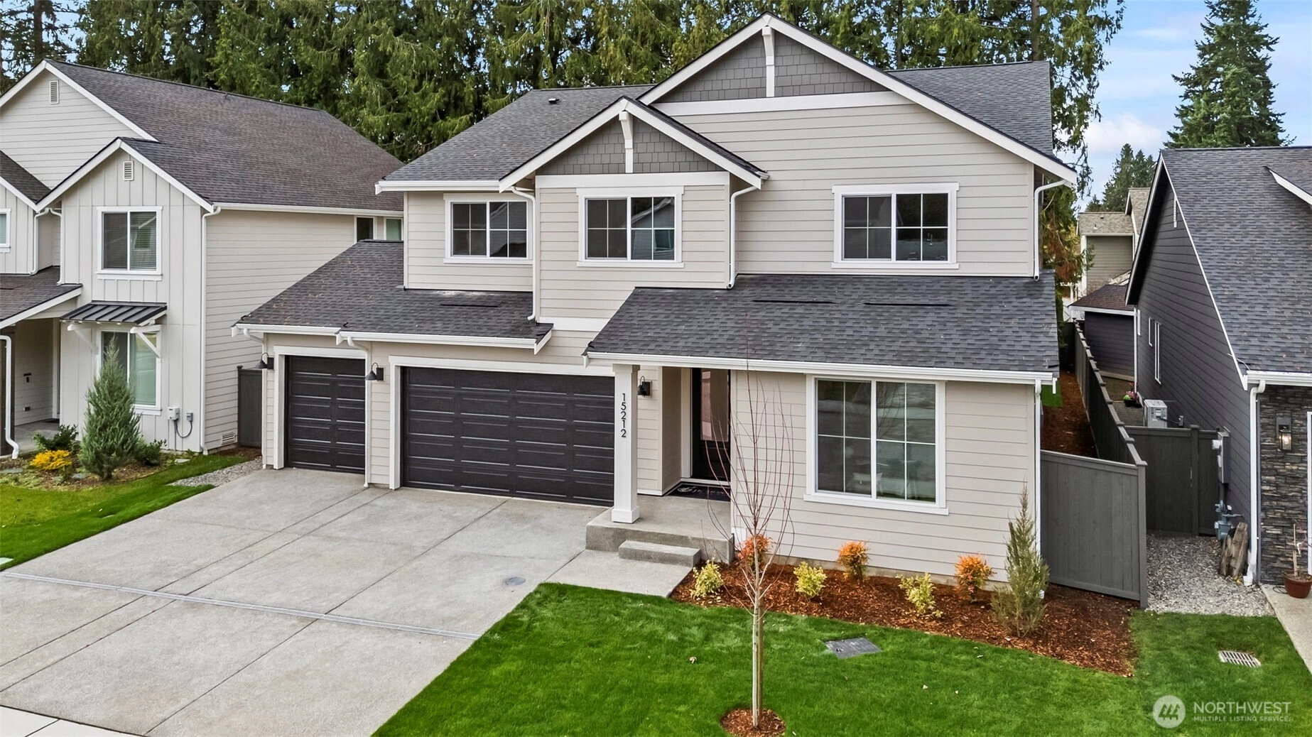 Final opportunity for one of our most popular floorplans. Homesite 2 offers this thoughtful design w/ a little bit of something for everyone! 3 car garage, 4 bedrooms, loft area, den/office w/ 3/4 bath on main. Featuring 8' interior doors, wrought-iron rails, mudroom bench/coathooks & quartz galore. Kitchen: SS appls incl gas range w/ hoodfan, 42" upper cabinets w/ soft close feature & designer lighting. Dining room opens to covered back patio. Primary suite is a true retreat w/ coffered ceiling detail, walk-in closet & spa inspired ensuite offering dual sinks, glass/tile shower & soaking tub. Heat Pump (A/C), garage w. EV prewire and fully fenced and landscaped w/treed privacy. Move-in ready. $15K Closing Cost credit!