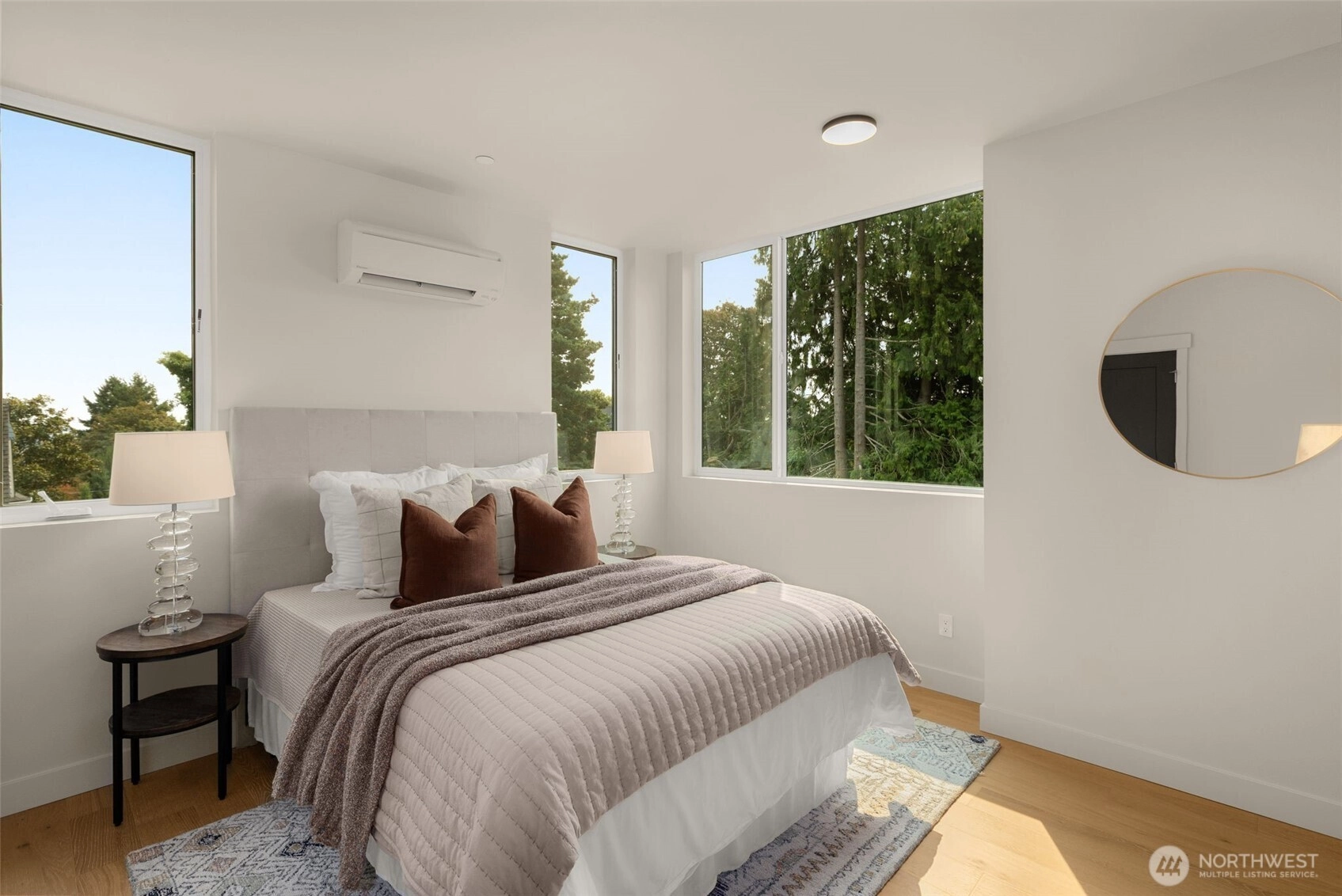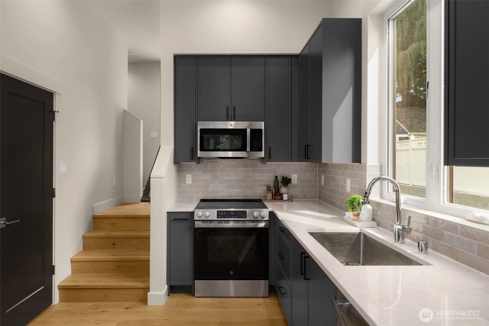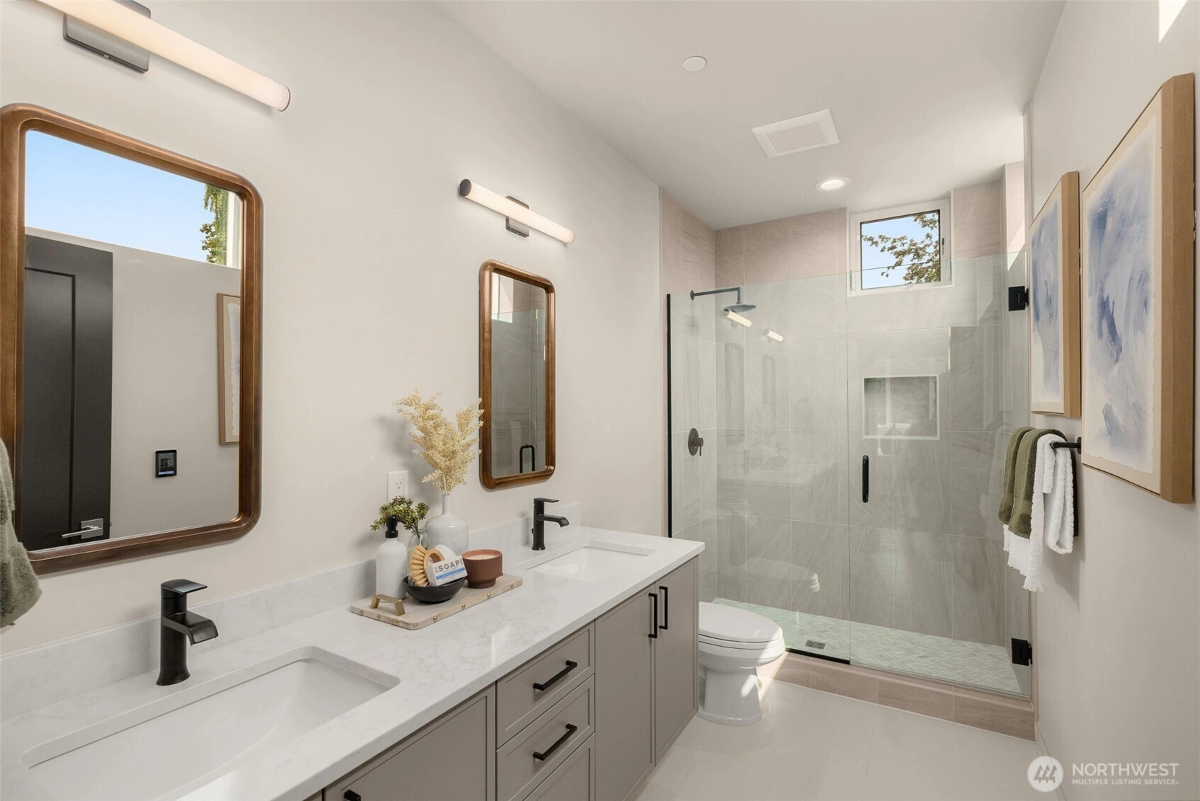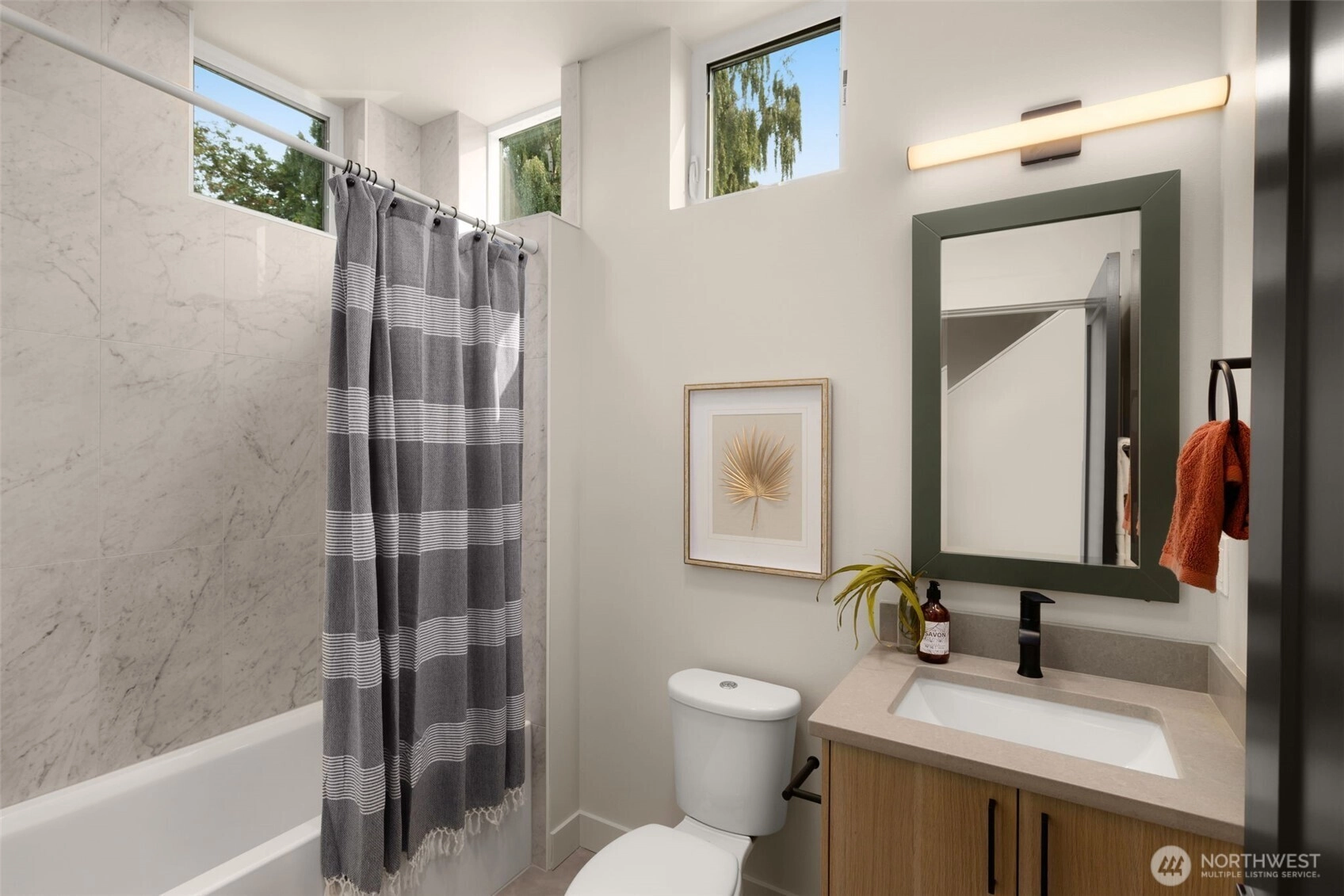 Step into your new lifestyle at Madrona & Spring! Perfectly positioned beside the lively Madrona retail corridor, this collection blends the charm of a peaceful residential setting with easy access to premier dining, shopping, and entertainment. The entry-level guest suite flows into an L-shaped kitchen that opens to a bright, window-wrapped living and dining area. Upstairs, the primary suite spans an entire floor, offering ultimate privacy with a dual vanity bath and a walk-through closet. Top it all off with a rooftop deck boasting incredible water views—hello, Sea Fair! Plus, a 90 Walk Score means everything you need is right outside your door.