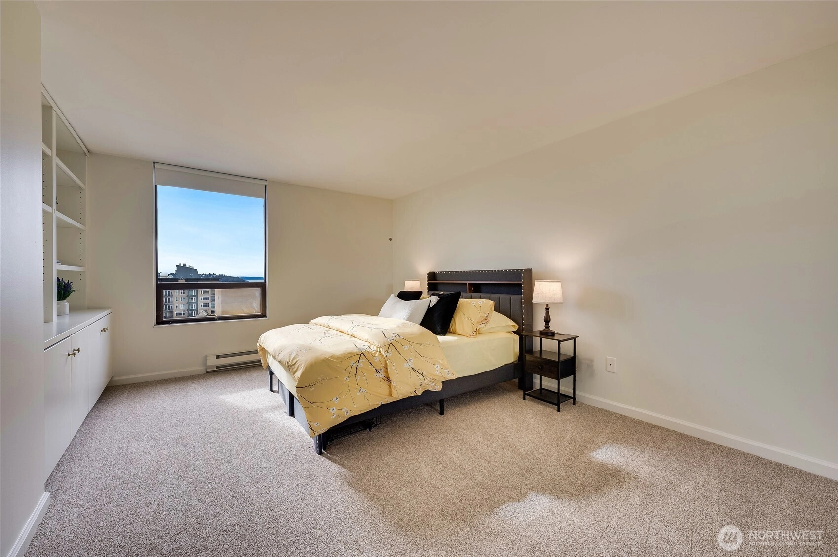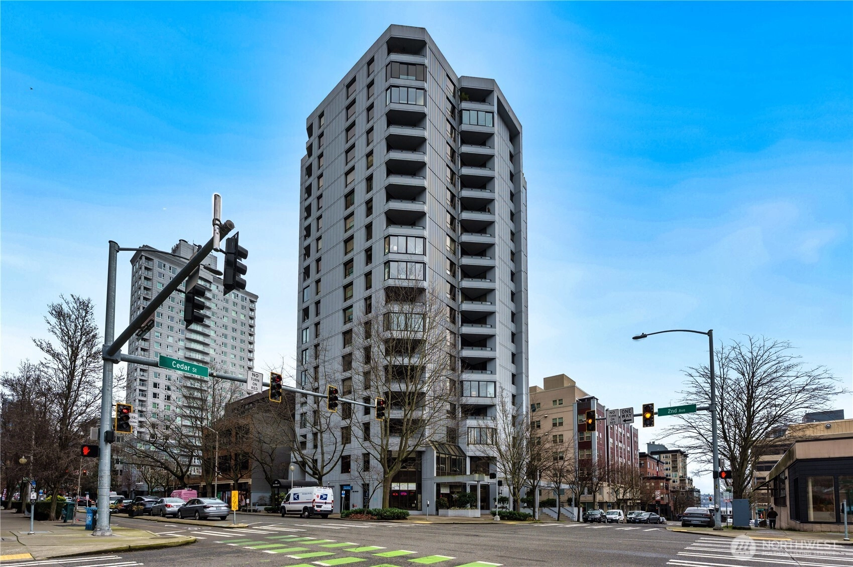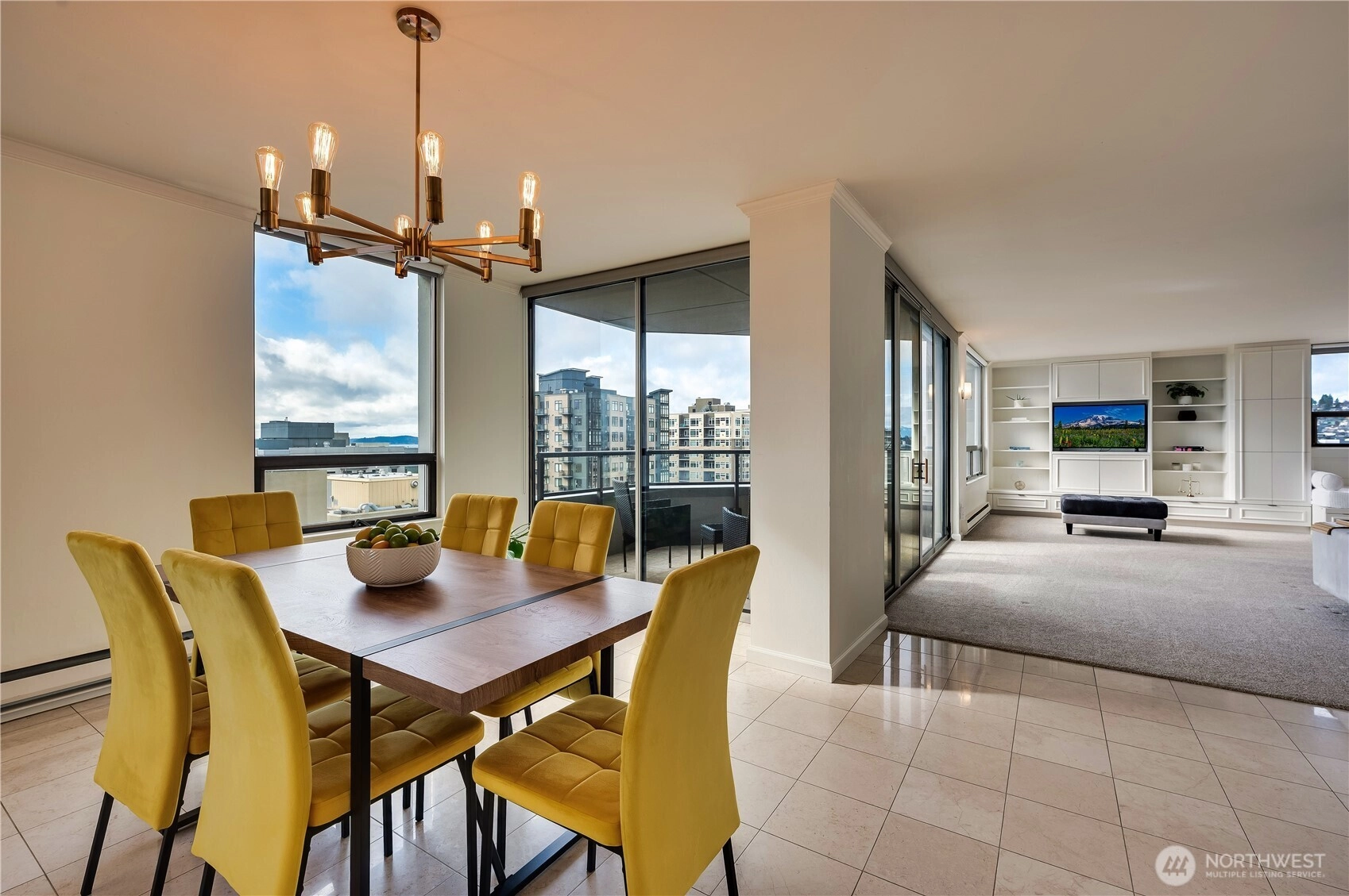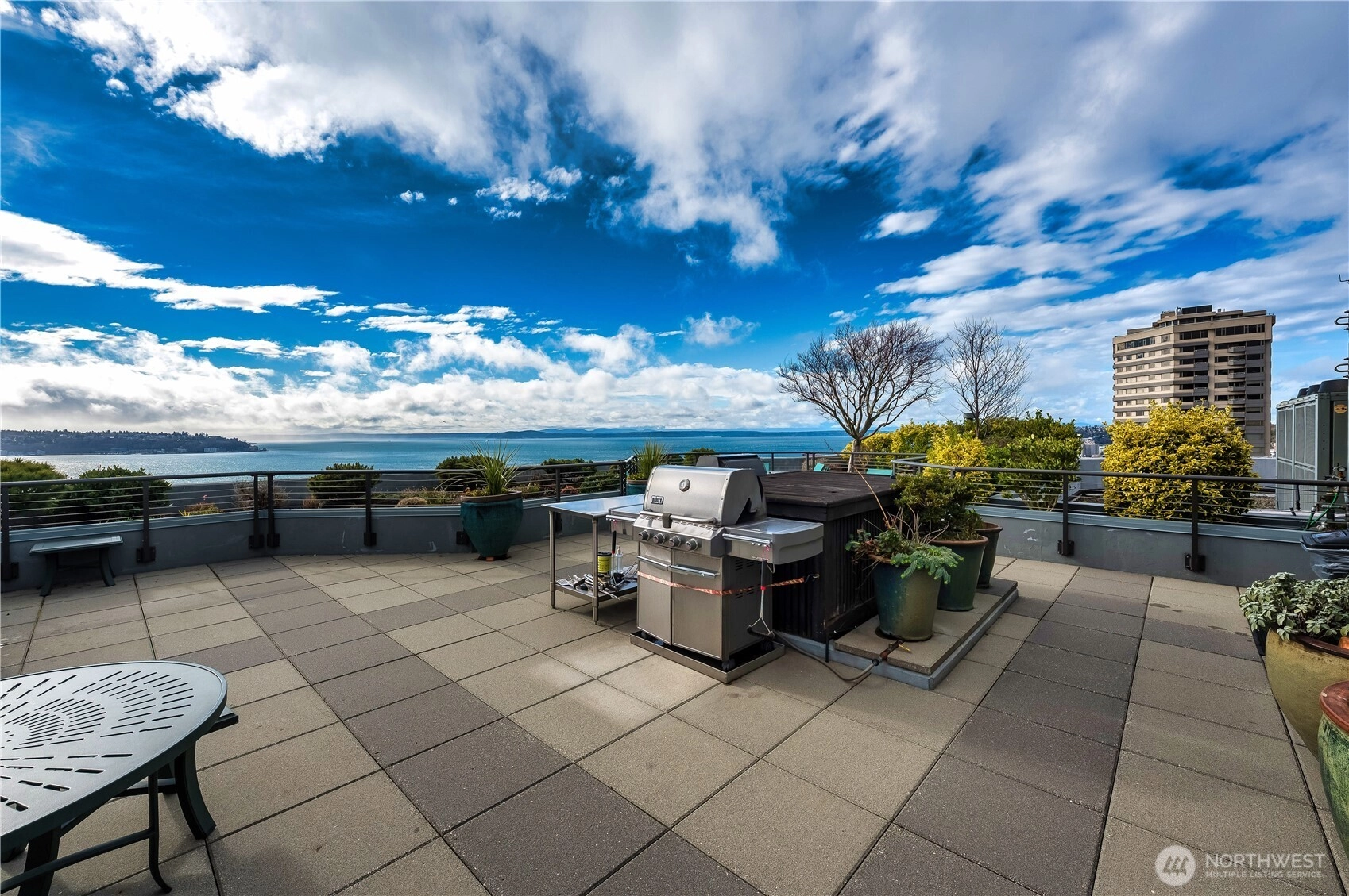 Sweepingg westerly views frm Mt. Rainier, city, snd & Oly Mtns frm this redesigned 2BR + den style hme, one level living w/over 1900sf! Grand LR w/walls of glass drenched in nat light. Formal DR for ultimate entertaining. Awesome cov'd view deck. Beautiful new carpets, new window shades & A/C! Awesome private den. Lots of custm built-ins for max storage. King size primary suite w/window seat & built-in desk + db vanity 5-piece primary bath & WIC. Spacious 2nd bdrm w/custom built-in shelving & cabinetry. Amenities incl gym, party rm, sauna, spa, outdoor pool & 270-degree views frm spectacular rooftop deck! Outstanding loctn - dining, shopping, Sculpture Pk, Wtrfrnt, PPMkt, Seattle Center, pub trans & more! Incredible price & value!