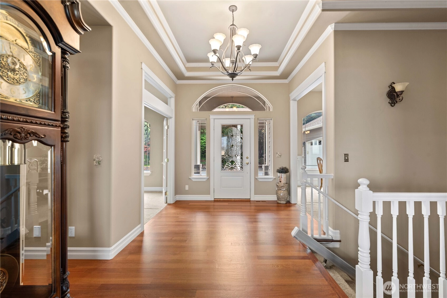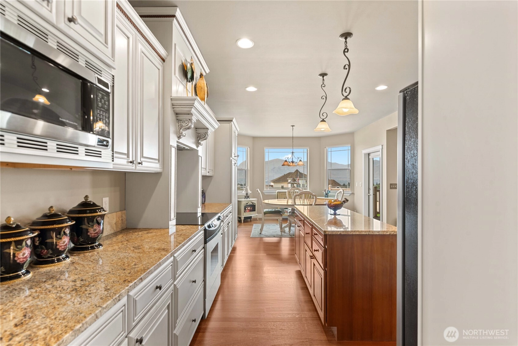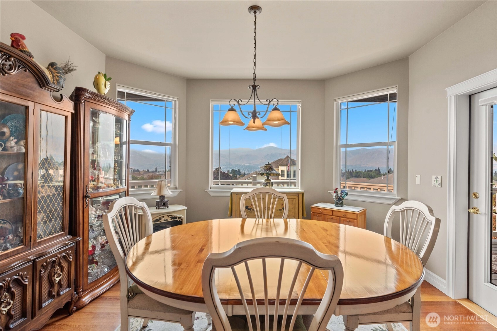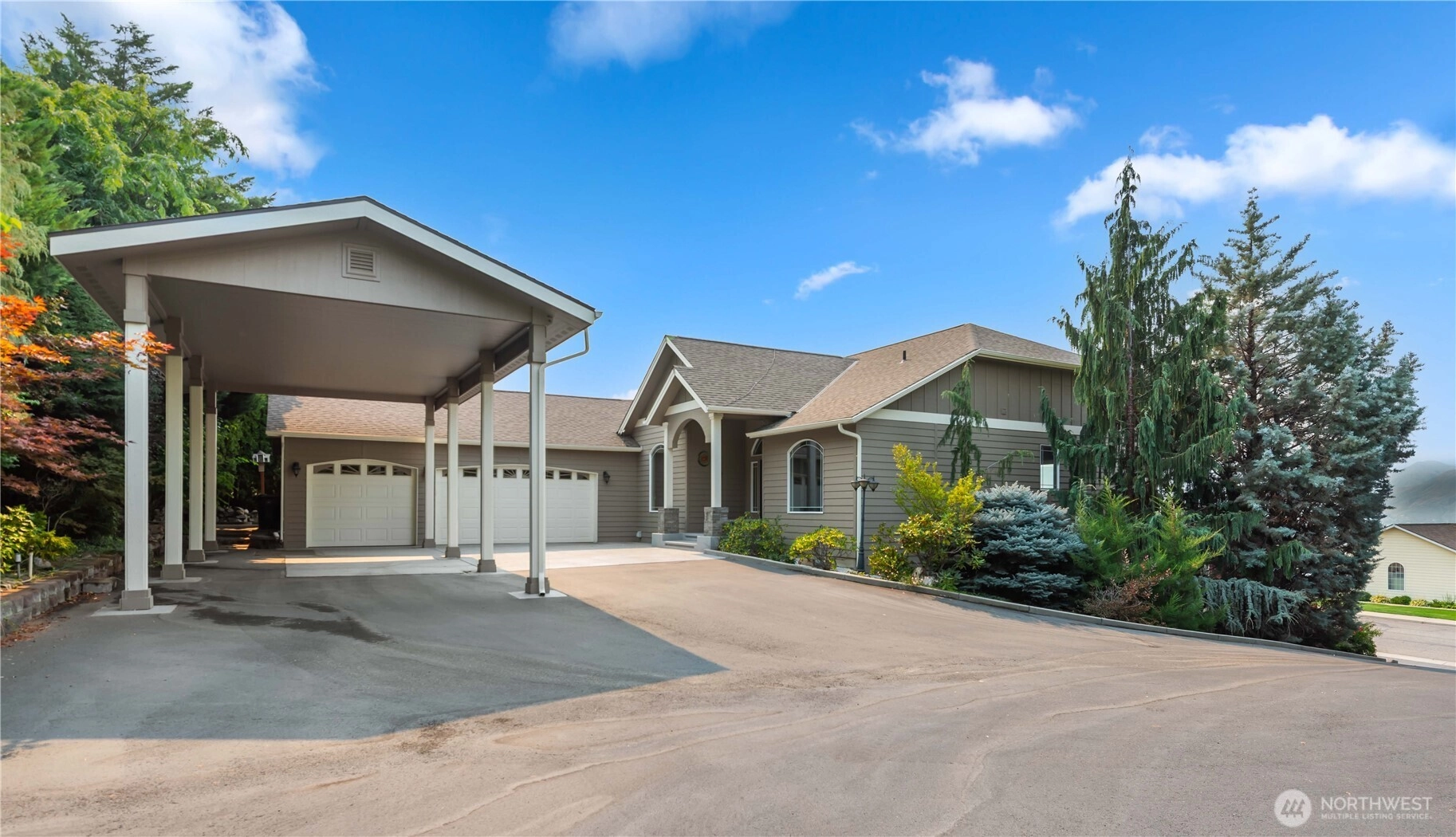 Stunning daylight rambler located in desirable Briarwood. Elegant entry with high ceilings, hardwood floors, exquisite crown molding and millwork. Great room features vaulted ceilings with many beautiful windows overlooking the gorgeous mountain views. Spacious kitchen features stainless steel appliances, large center island and custom cabinets. Main floor primary suite with double vanities, shower, tub and access to the view deck. Lovely Main floor den with French doors. Downstairs features 3 more bedrooms and two baths plus large family room with stone fireplace. 3 car garage plus covered RV parking. Many different outdoor spaces to enjoy the views and peaceful setting. This home will not disappoint!