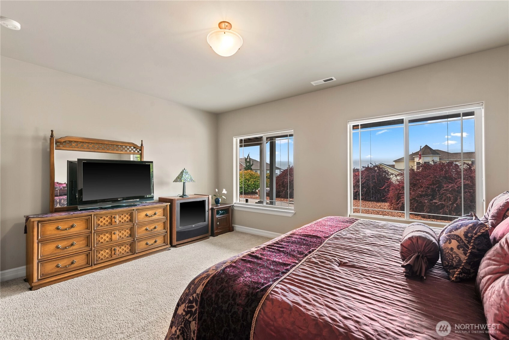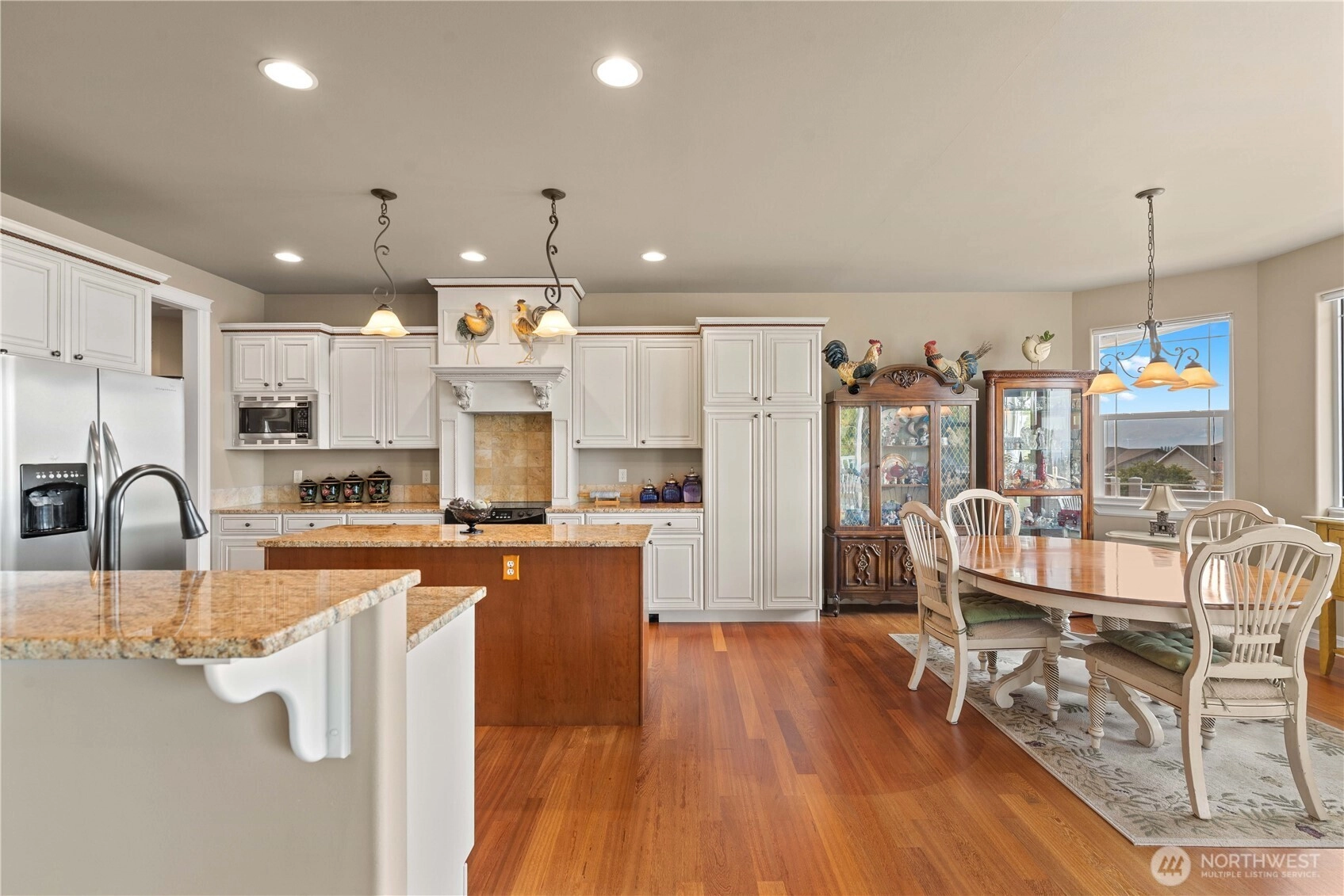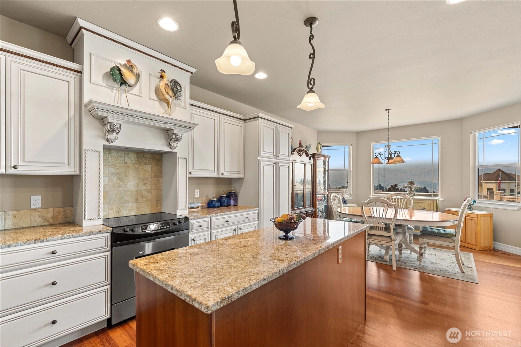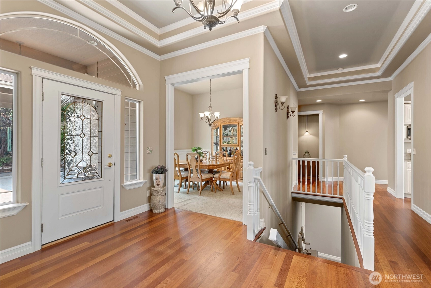 Stunning daylight rambler located in desirable Briarwood. Elegant entry with high ceilings, hardwood floors, exquisite crown molding and millwork. Great room features vaulted ceilings with many beautiful windows overlooking the gorgeous mountain views. Spacious kitchen features stainless steel appliances, large center island and custom cabinets. Main floor primary suite with double vanities, shower, tub and access to the view deck. Lovely Main floor den with French doors. Downstairs features 3 more bedrooms and two baths plus large family room with stone fireplace. 3 car garage plus covered RV parking. Many different outdoor spaces to enjoy the views and peaceful setting. This home will not disappoint!