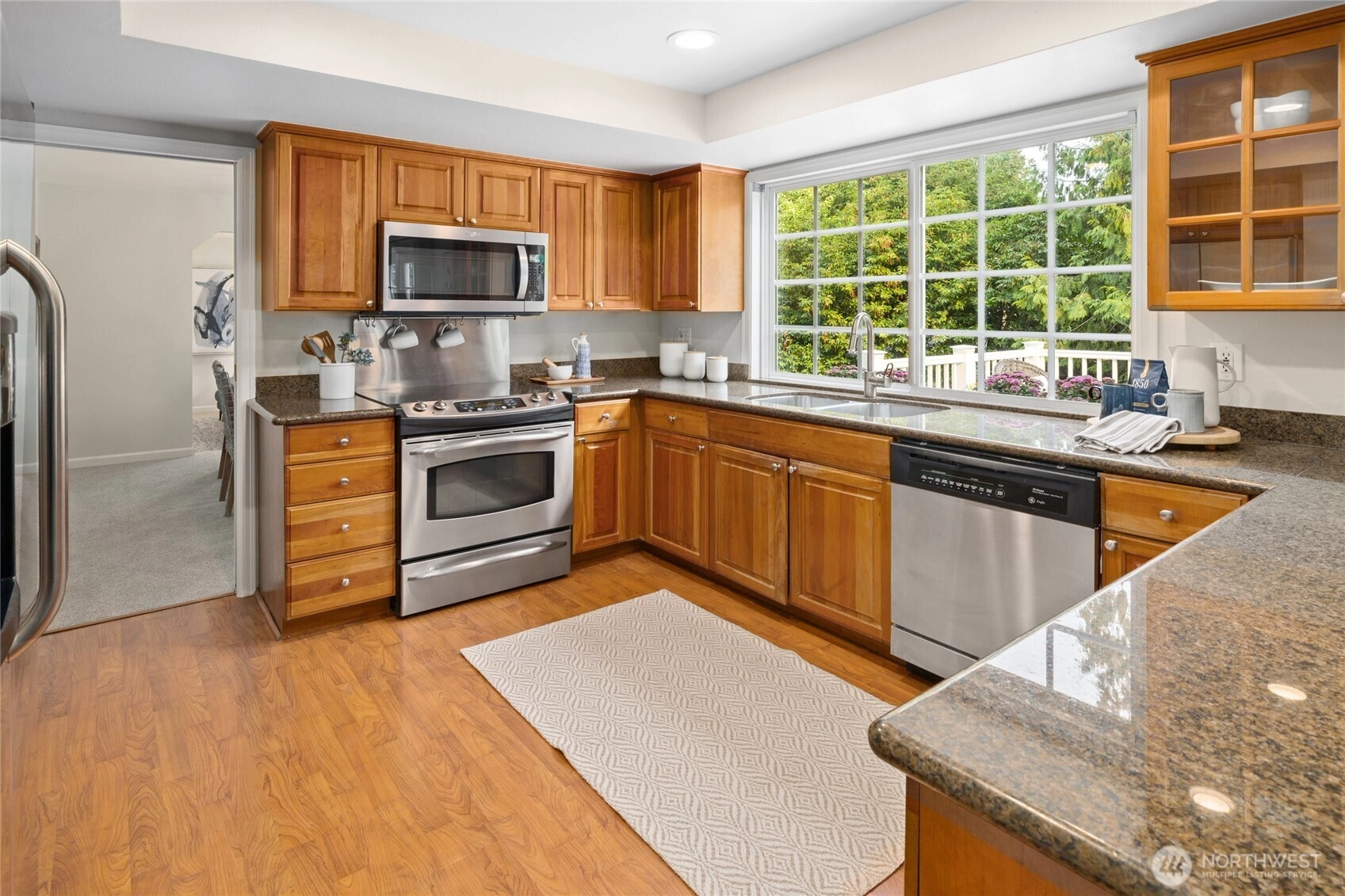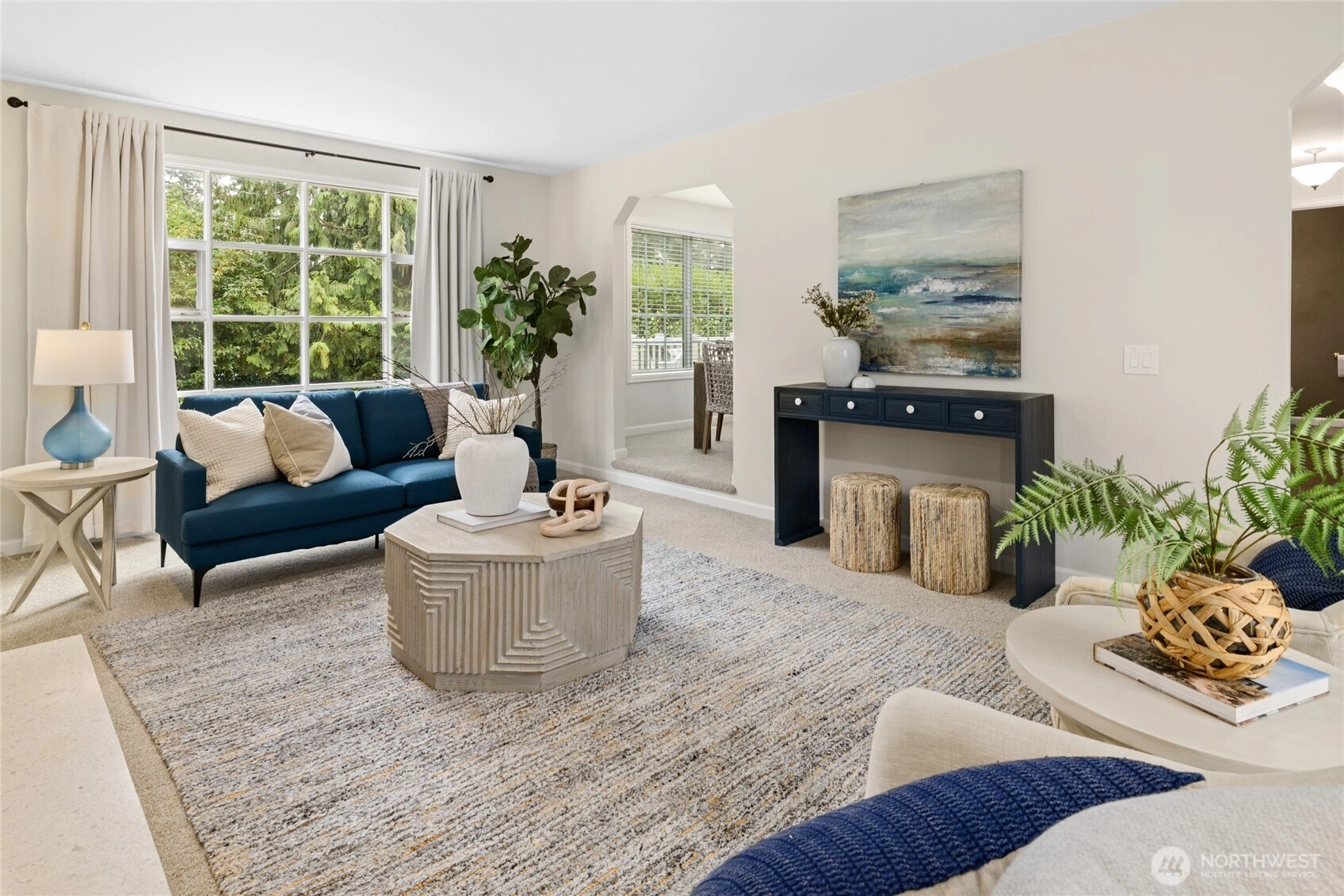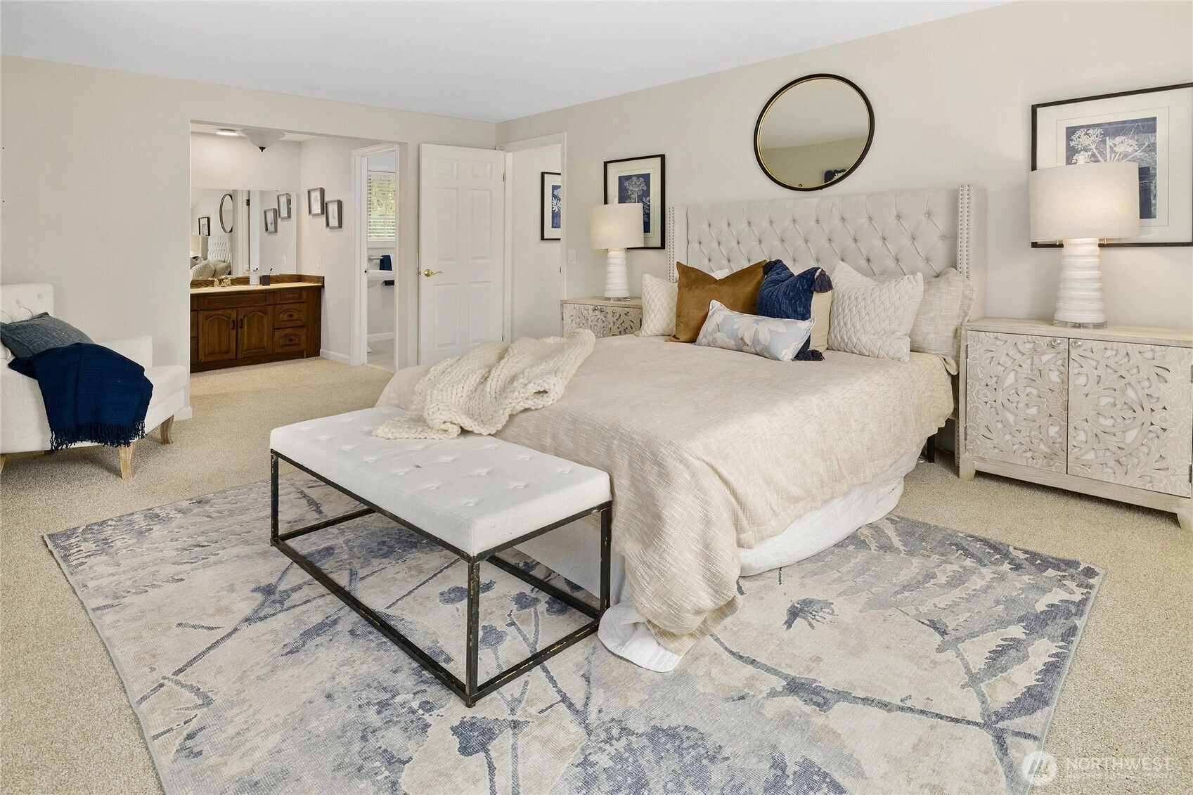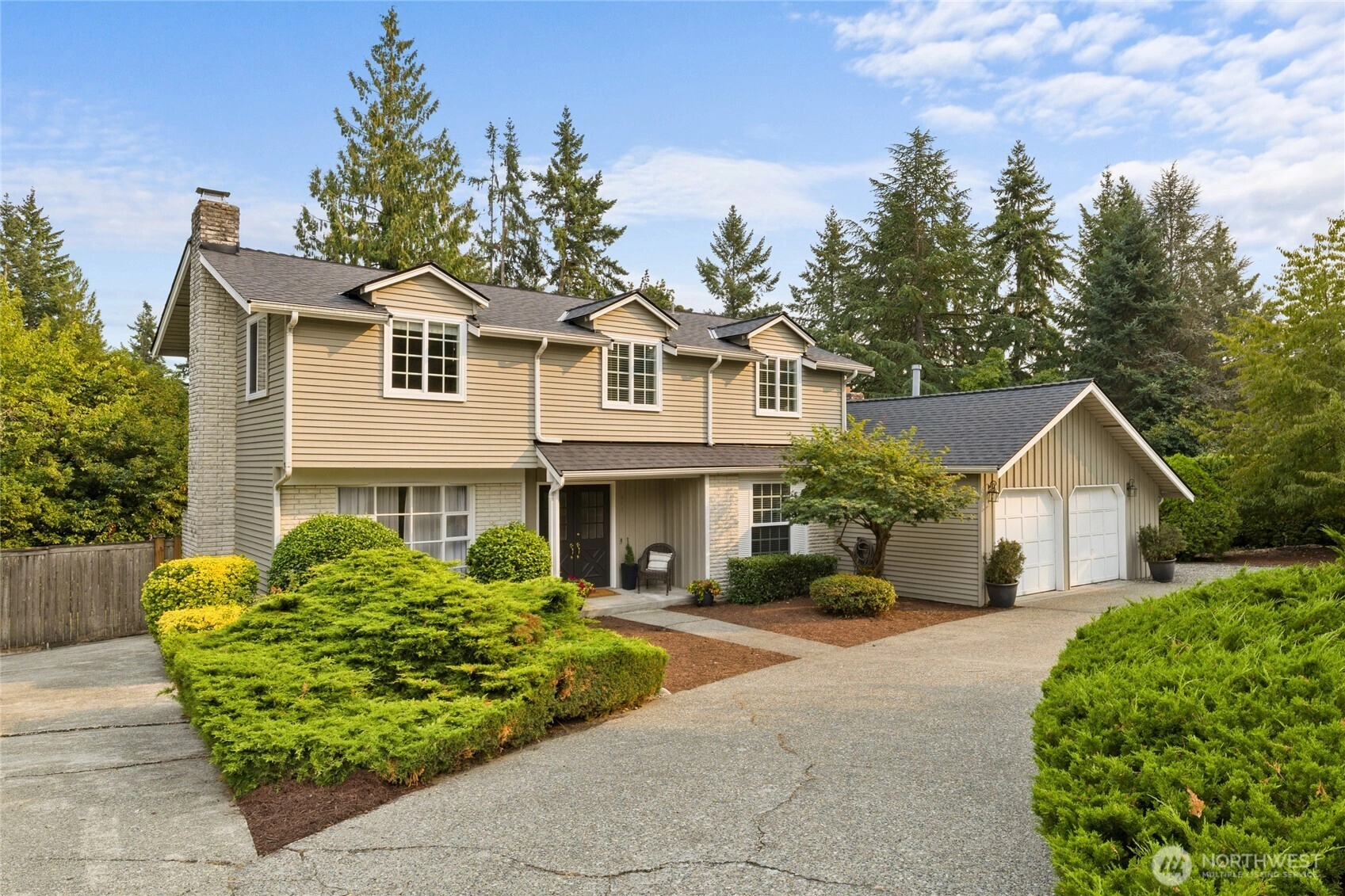 An incredible and lovingly maintained gem located in Bellevue's desirable Bretton Wood! A dreamy corner lot with a circular drive greets you. Welcoming and inviting, enter through double doors and enjoy the light and bright spaces throughout. Beautifully refreshed with fresh paint, all-new carpet, a brand-new roof, and a newer water heater. 5 bedrooms or 4 beds + an office (you decide!) offer flexibility for a multitude of lifestyles. The large backyard and sunny deck invite new memories to be made! Prime location near Tam oShanter, parks, trails, Lake Sammamish, breezy commuting. A/C, pre-inspected, no HOA, all within the prized Bellevue School District! This is the one you don’t want to miss. Welcome Home!