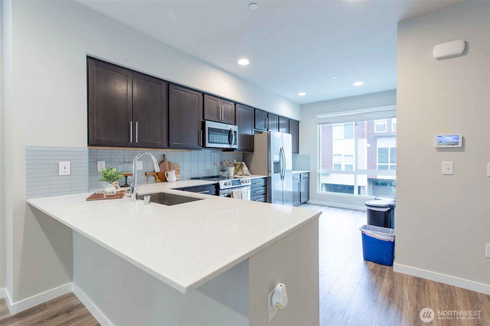 Built in 2020 and offering 1,406 sq. ft., this stylish townhome combines comfort and functionality. Featuring 2 spacious bedrooms each with a private full bathroom, plus a convenient half bath on the main floor, the home is designed for both privacy and entertaining. The open-concept living area flows seamlessly into a modern kitchen with quality finishes. A tandem 2-car garage provides ample parking and storage. Enjoy contemporary living in a well-maintained community, close to shopping, dining, and commuter routes. Move-in ready and thoughtfully designed, this home is perfect for today’s lifestyle. No Rental Cap.