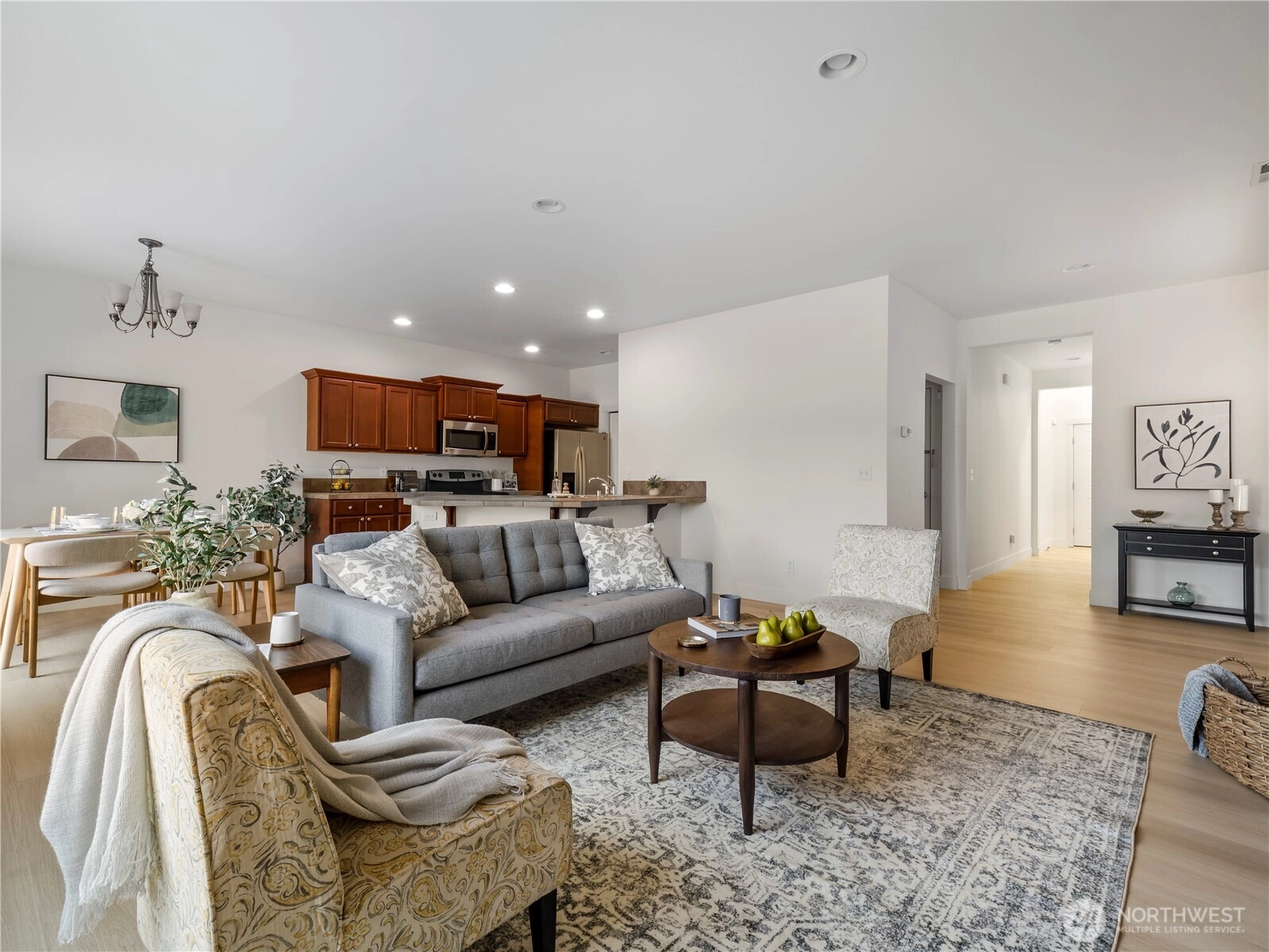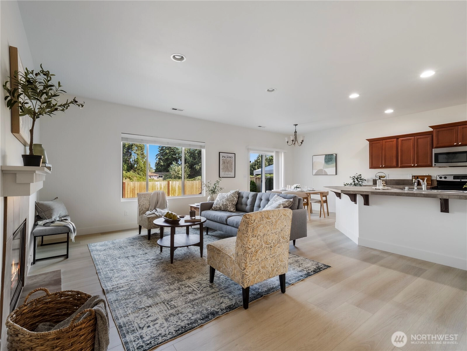 Welcome to Kelsey Lane, a peaceful community nestled among mature trees and open spaces, with sidewalks, streetlights, & a small park with playground. Featuring 1,842 sqft, 3 bedrooms & 2.5 baths, this move-in ready home offers a bright, open main floor w/new LVP flooring, fresh interior paint, & vaulted ceilings. The kitchen includes tile counters, stainless steel appliances, breakfast bar & pantry. Upstairs you'll find a spacious primary suite, two add’l bedrooms, a versatile bonus room, and a laundry room with front-load washer and dryer. Enjoy energy-efficient living with a tankless water heater & heat pump and the backyard is fully fenced, waiting for your finishing touches. A commuter's dream w/easy access to I-5, River Road & HWY167.