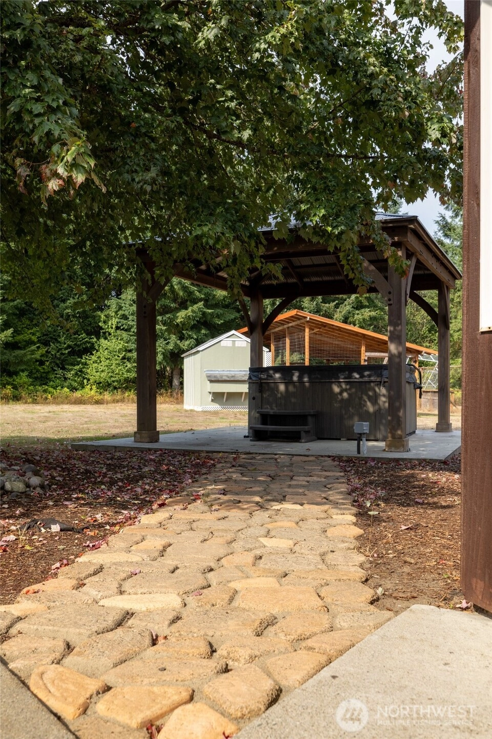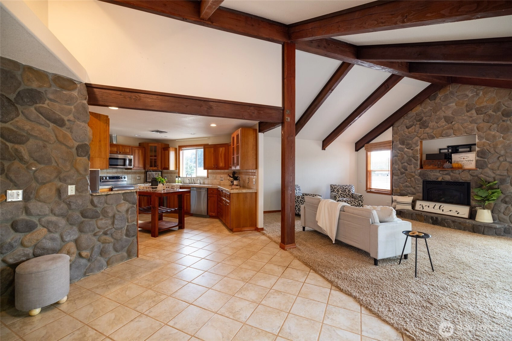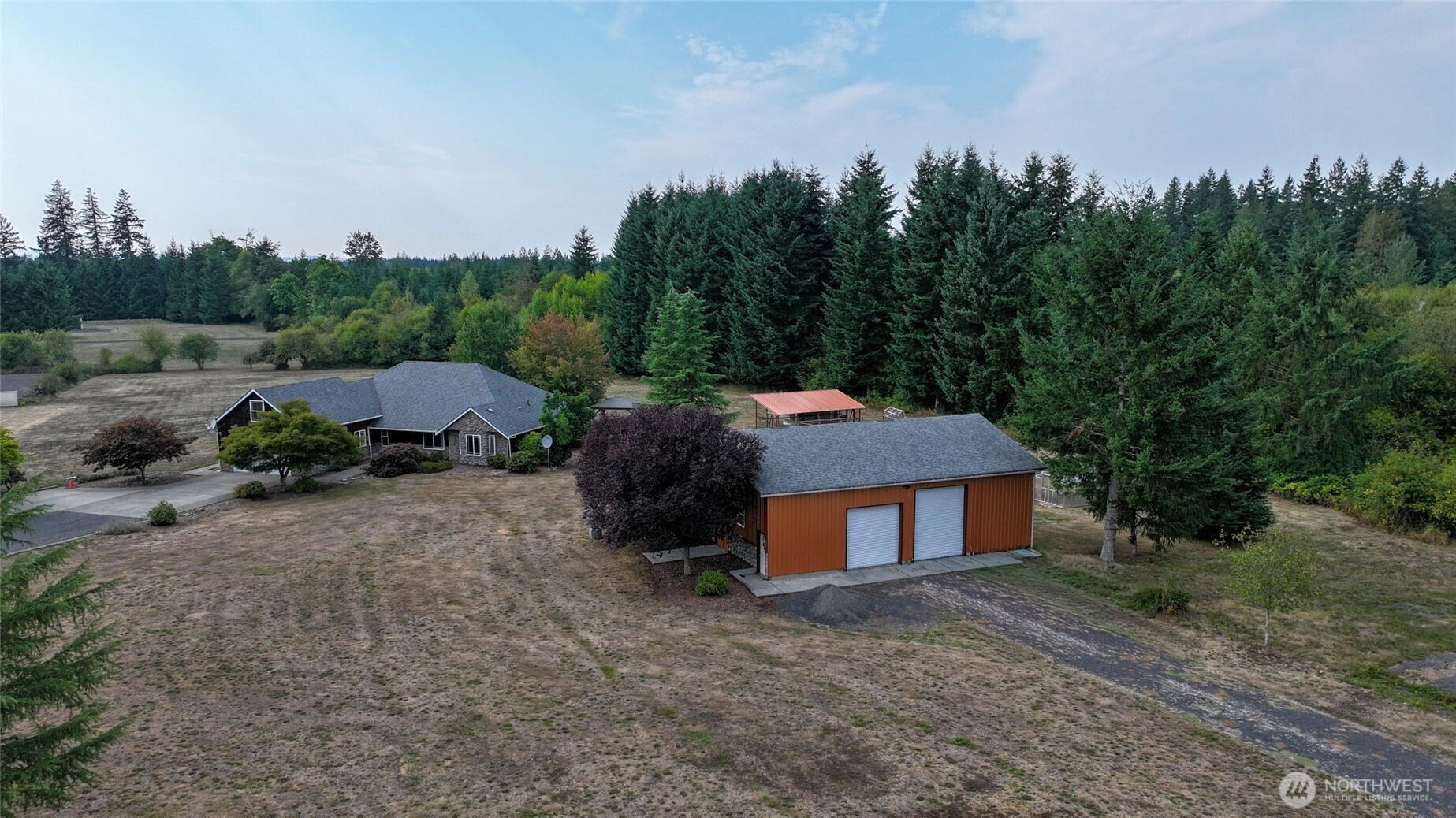 Gorgeous 3200+ sq. ft. single story 3 bed/3 bath home sits at the end of a private road. 5 flat acres with 1.5 ac. of timber, a 36 x 48 shop, green house, chicken coup & garden. Exterior recently painted & stained. Stunning rock work throughout the interior & exterior. Large living room w/gas fireplace, vaulted ceilings, double French doors opening to a large patio, wildlife & a covered hot tub. Kitchen has tile counters & floors, lg. pantry, stainless appliances & plenty of space to work. Second living room area opens up to a dining room giving plenty of room to entertain. Large primary bedroom w/walk in closet, 5 piece bath, sitting area & a door to that beautiful patio. Room above garage would make a great game room, gym or office.
