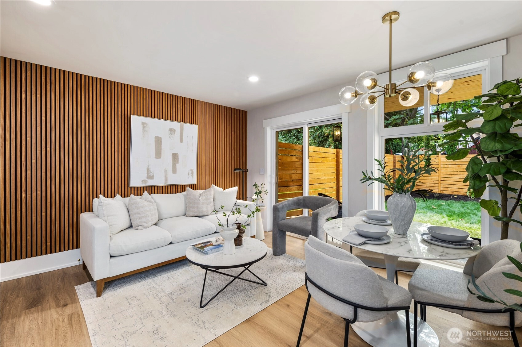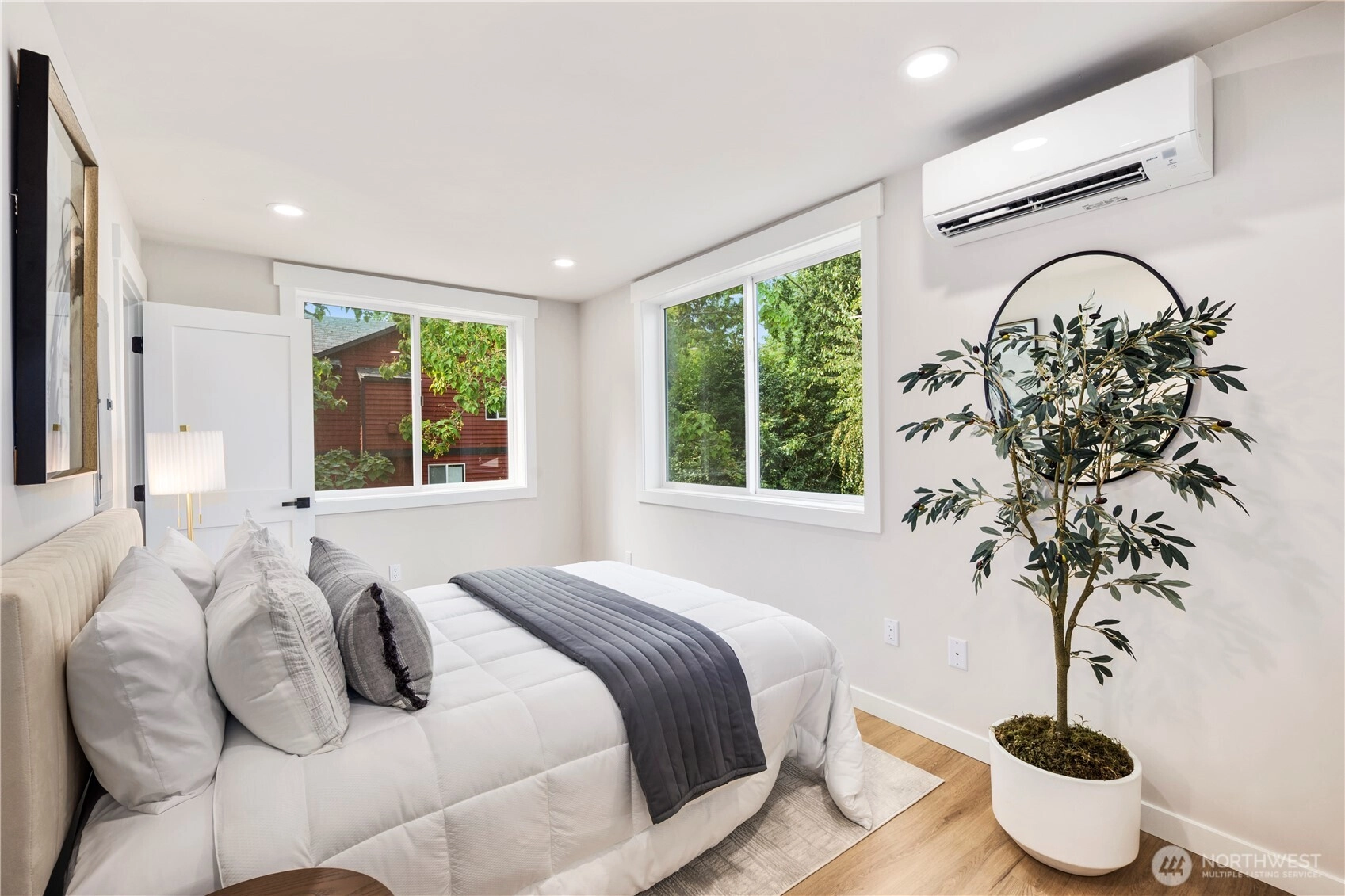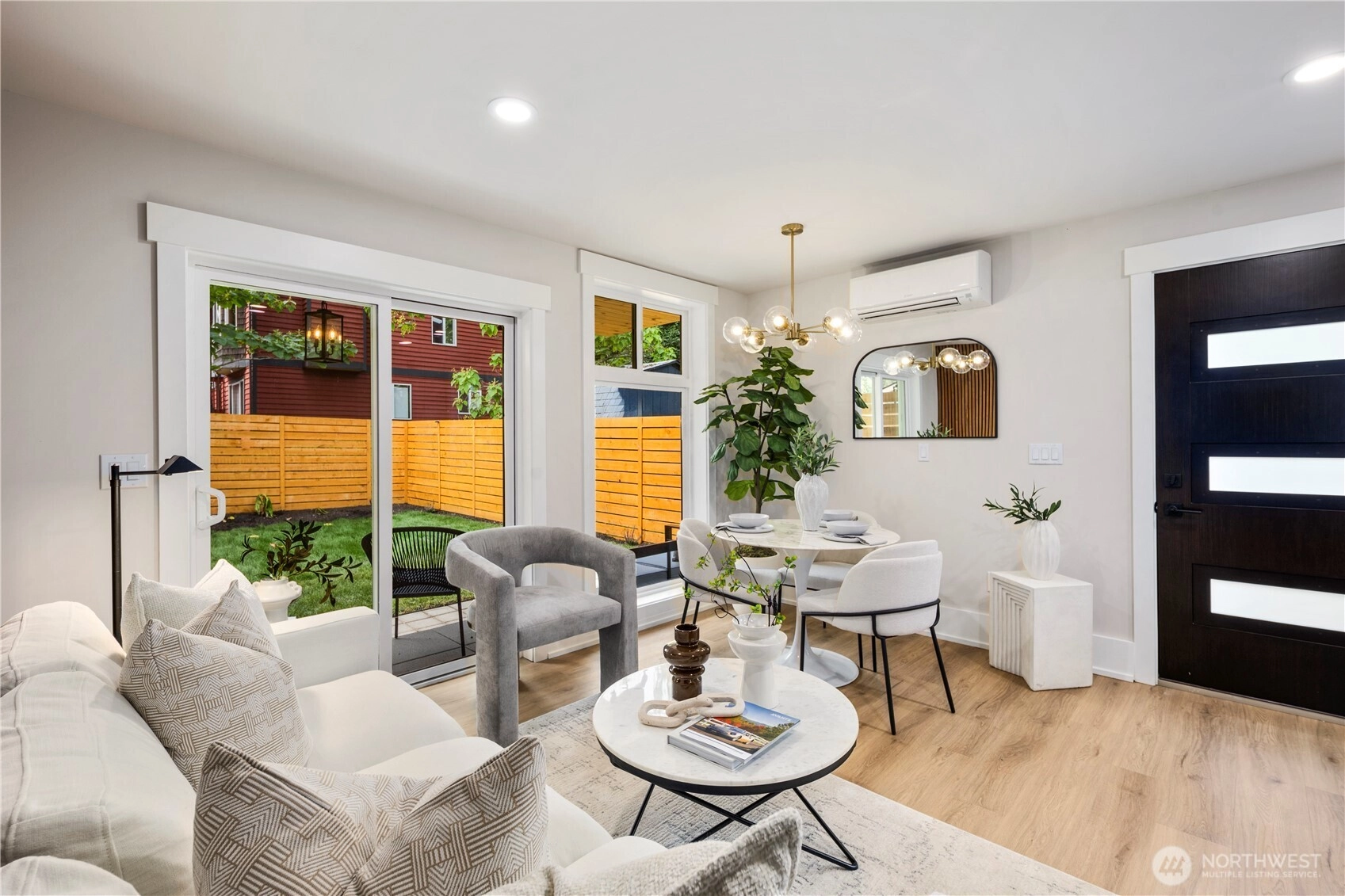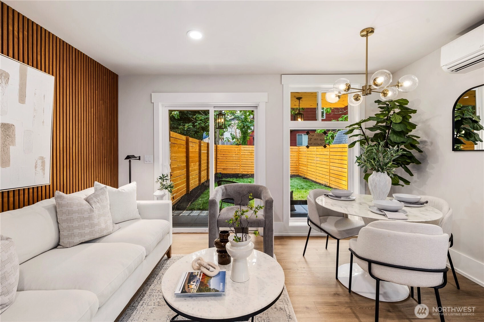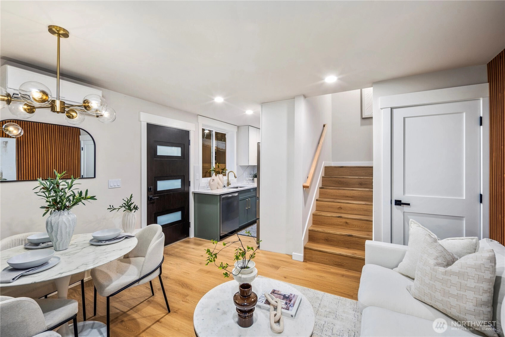 Organic Luxe meets modern living in this brand-new 2BR/2BA townhome in Greenwood/Crown Hill. Sophisticated finishes include wood-slat accents, custom millwork, and a designer kitchen with soft-close cabinetry and stainless steel appliances. The open-concept layout is filled with natural light from the windows, creating a seamless flow from living to dining. Upstairs, a spacious primary suite offers a private retreat with spa-inspired bath. Energy-efficient mini-splits ensure year-round comfort, while thoughtful design details add warmth and style throughout. Nestled near top-rated schools, Ballard’s vibrant breweries, Green Lake, parks, and direct transit to Downtown & SLU, this home blends everyday ease with timeless design. A Lifestyle!