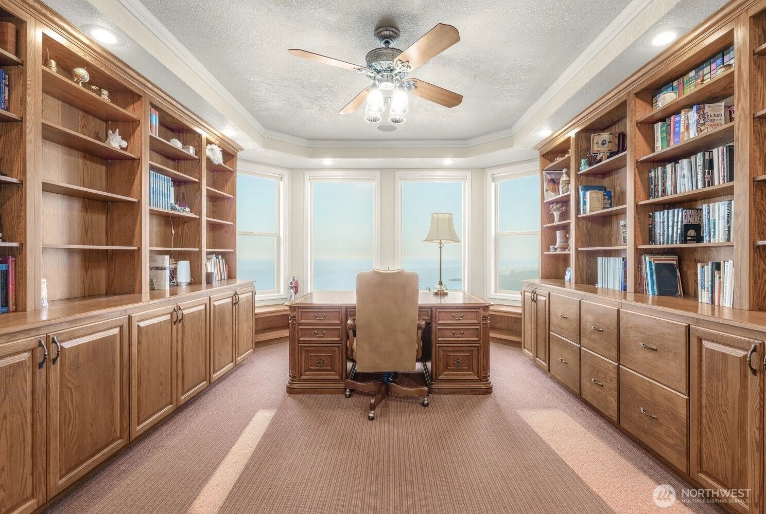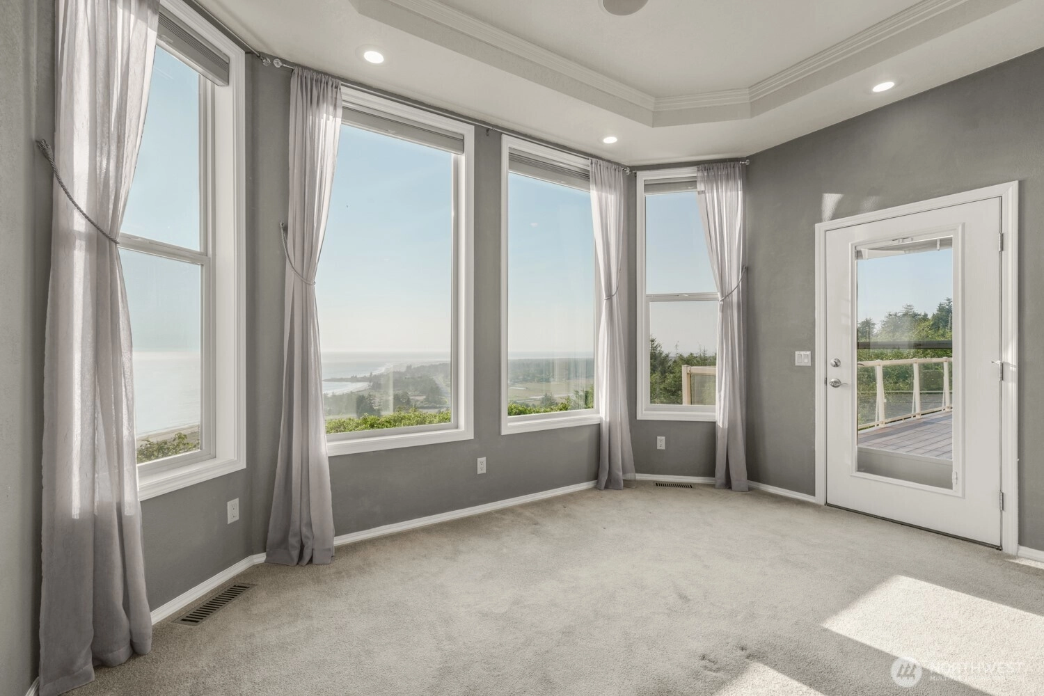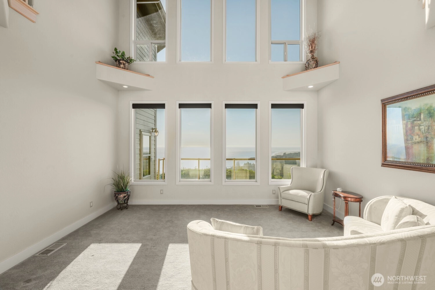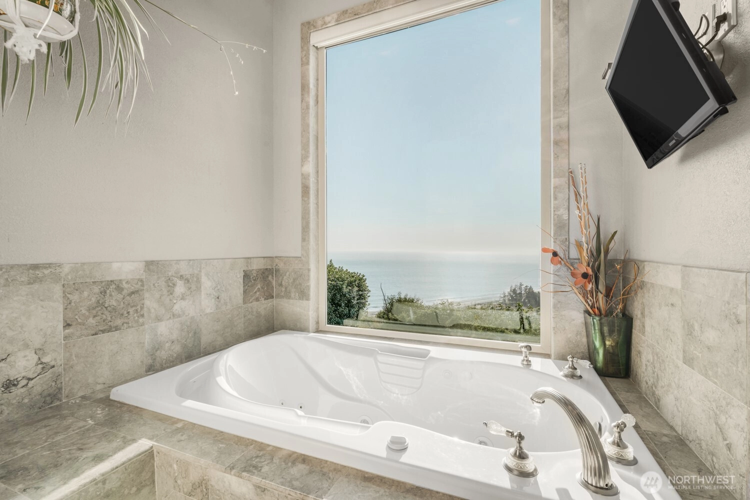 Enjoy breathtaking views of the Pacific Ocean, Willapa Estuary, and miles of sandy shoreline from this 4,000 sq ft home in the gated Willapa Heights community, just 15 minutes from Westport. This 4-bed, 4-bath retreat features a main-level primary suite with panoramic vistas, spa bath, walk-in closet, and deck access. Vaulted living room with picture windows, multiple view-filled living spaces, a gourmet kitchen with walk-in pantry, formal dining, office/library, theater, and expansive sun deck offer comfort and elegance. Set on 5 serene acres with a 3-car garage and lush landscaping, this home blends privacy, luxury, and stunning sunsets, all near Shoalwater Bay Casino.