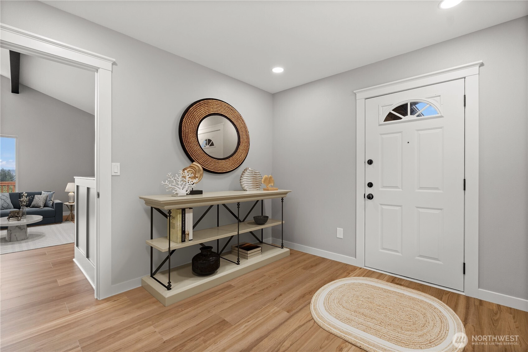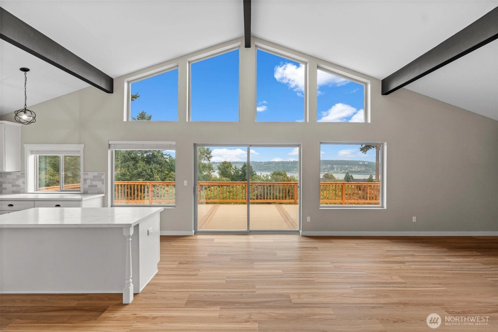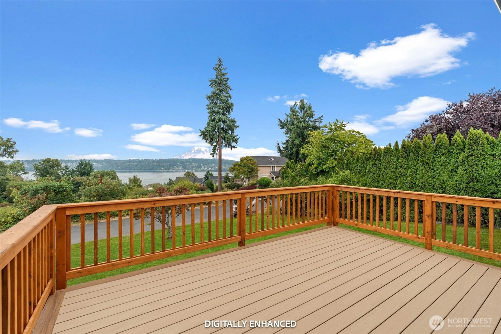 Experience refined living in this fully remodeled 3-bedroom + office, 2.25-bath home, set in a quiet, coveted Fox Island community. Updates include new paint, a new roof, and new composite decking, paired with luxury vinyl plank flooring and a chef’s kitchen with quartz countertops. The expansive main-level deck showcases sweeping vistas of Mount Rainier, the Sound, and even a small piece of Chambers Bay Golf Course—perfect for entertaining or serene mornings. A fully finished walk-out basement adds versatile living space, while the corner lot features a sprinkler system and covered carport. Turn-key, sophisticated, and crafted for those who appreciate the finer side of living.