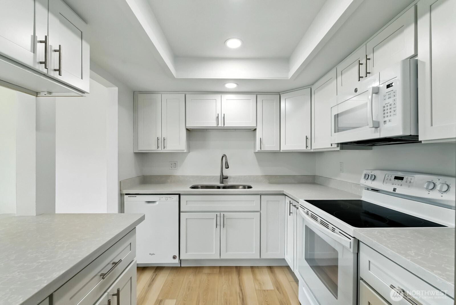 Discover your dream at the Firgrove Condominiums, located in the heart of University Place, WA! This charming 1550 sq ft condominium offers comfort and convenience. Imagine waking up to a serene courtyard with a stream, enjoying coffee on a balcony with a territorial view. The gated entry and detached garage provide security and peace of mind. Inside, you will find 3 beds, 1.75 baths, new kitchen cabinets, luxury vinyl plank flooring, and modern appliances. Walk to Trader Joe's, Whole Foods, University Place library and many nearby restaurants and shops. Chances are your bank is within walking distance also. BECU, Key Bank, and B of A to name a few. Chambers Bay Park is about 5 min away for long daily walks along the water.
