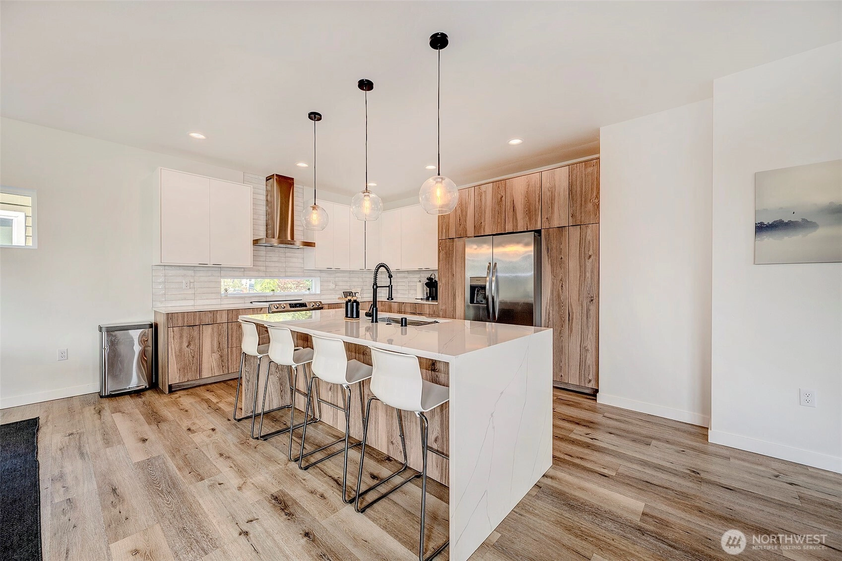 Welcome to Magnolia. Pinterest-worthy gorgeous home boasting quality finishes, 9ft ceilings, abundant natural light & an open concept living space. Featuring over 2,300 square feet, 4 bedrooms, 2.5 bathrooms, this well designed home will leave you in awe. Front entrance welcomes you with a unique awning & vertical LED strips. Large kitchen boasts an 8ft long waterfall island, Samsung appliances, & two-tone cabinetry. Generously sized bedrooms throughout. Huge primary bedroom with vaulted ceiling, large walk-in closet & a 5-piece bathroom. Ductless mini-split heat pump system for heating & A/C. Cedar fencing encloses the entire backyard. No HOA! This home is a must see. Welcome Home!