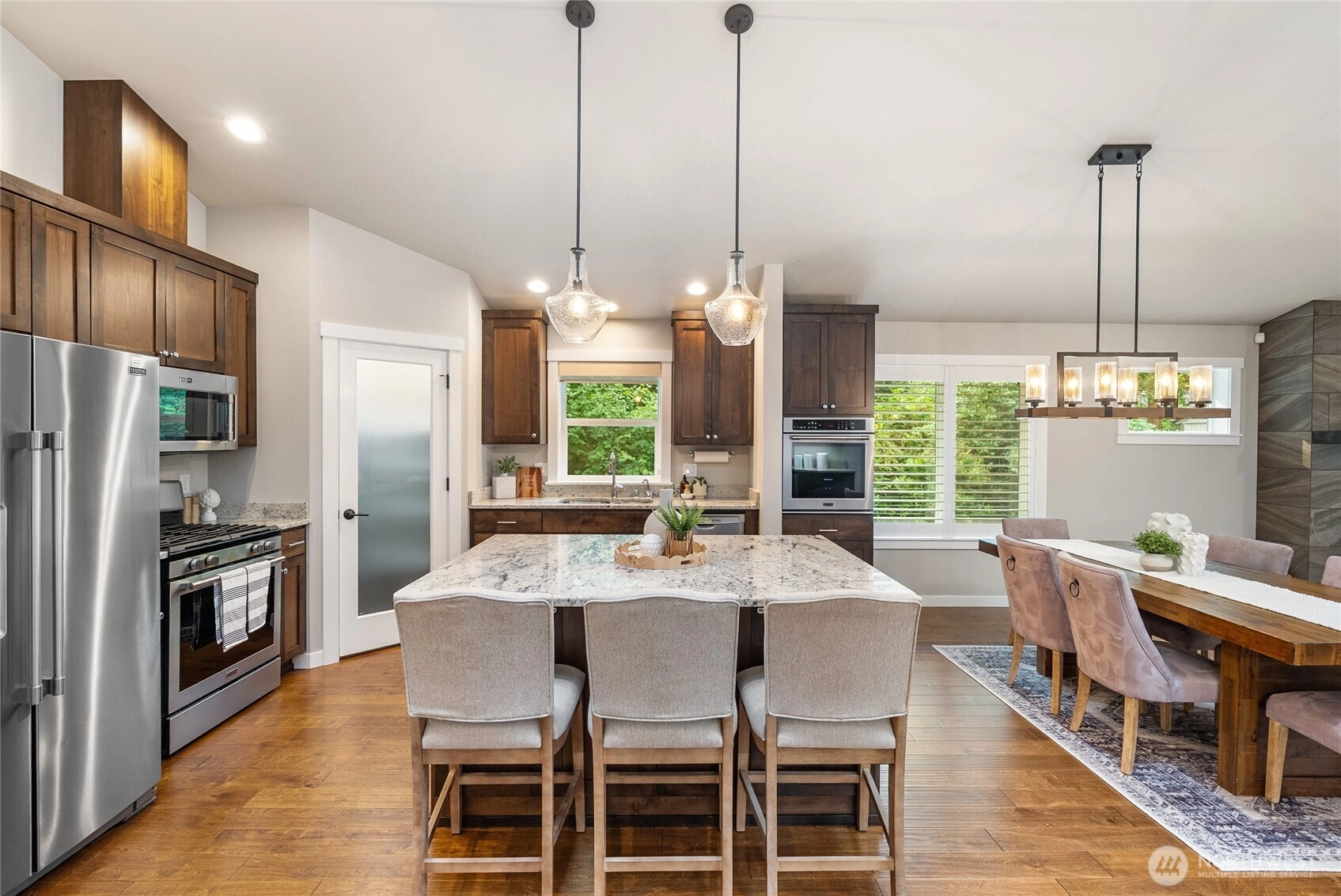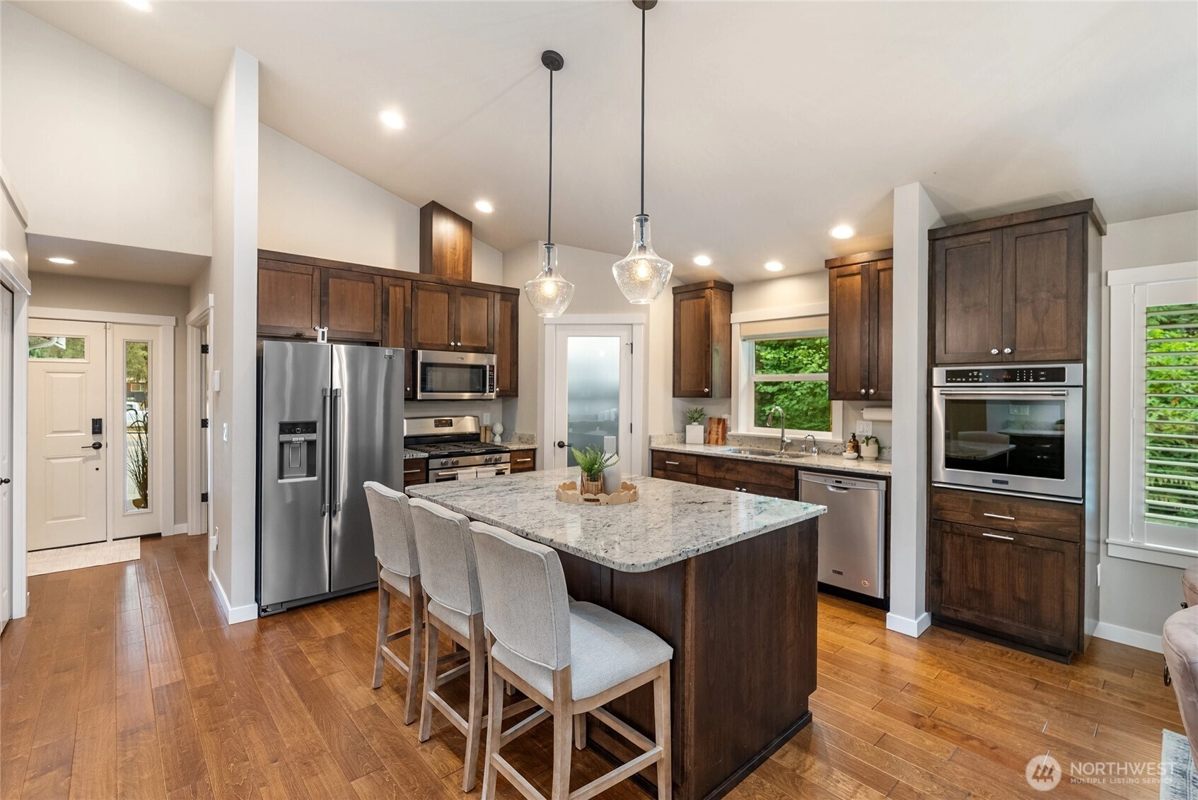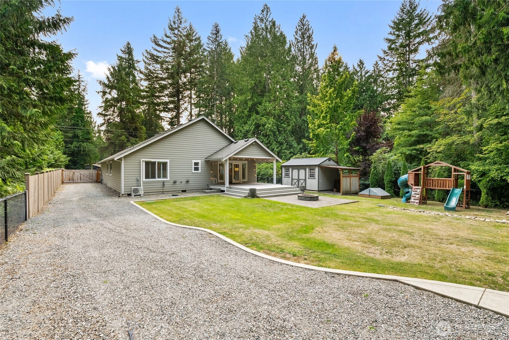 Gorgeous 3 bed, 2 bath + office Snohomish home sits on over half acre of private park like land & is better than new! Inside you'll find stunning hardwood floors, vaulted ceilings, a bright open layout & gourmet kitchen w/ double ovens, wine fridge, & beautiful finishes. Plantation shutters & AC keep things stylish & comfortable year round. The main living area flows effortlessly to a spacious covered back patio perfect for entertaining! The property also offers a full covered RV bay & add'l RV space both w/ septic & power hookups, shed w/ power, 2 car garage w/ storage, add'l parking slabs & discreet year round holiday lighting! Minutes from Evergreen St Fairgrounds, shops & amenities! The perfect blend of privacy, convenience & style!