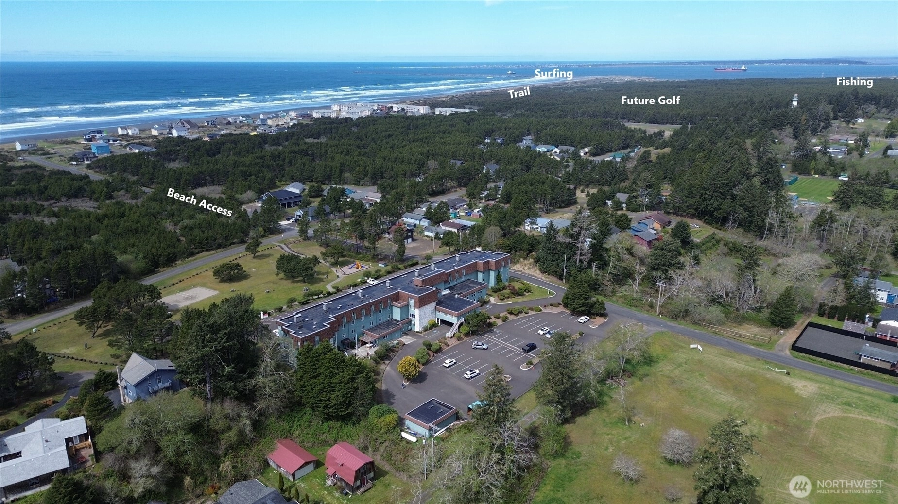 Top-floor oceanview getaway at The Chateau in Westport! This rare triple unit combines three adjoining rooms into one spacious retreat—perfect for family or friends. Enjoy a cozy fireplace, kitchenette, and beds for everyone: one king, one queen, and two queens. The Chateau offers the only indoor pool in town, plus a playground, kid zone, volleyball, basketball, and direct beach access. Owners and immediate family can use the unit up to 45 days per year (no full-time living or rentals). HOA will update flooring and furniture. With a proposed Scottish Links golf course nearby, it’s the perfect coastal escape.