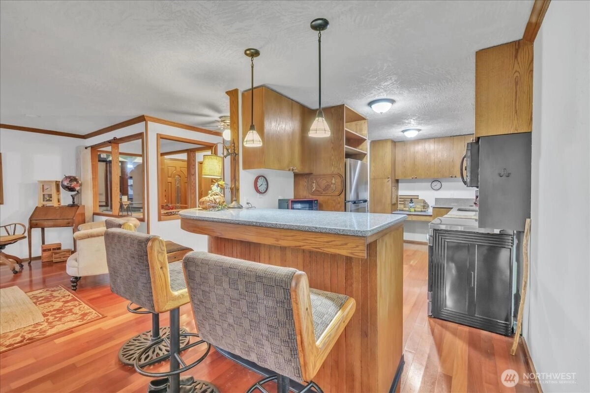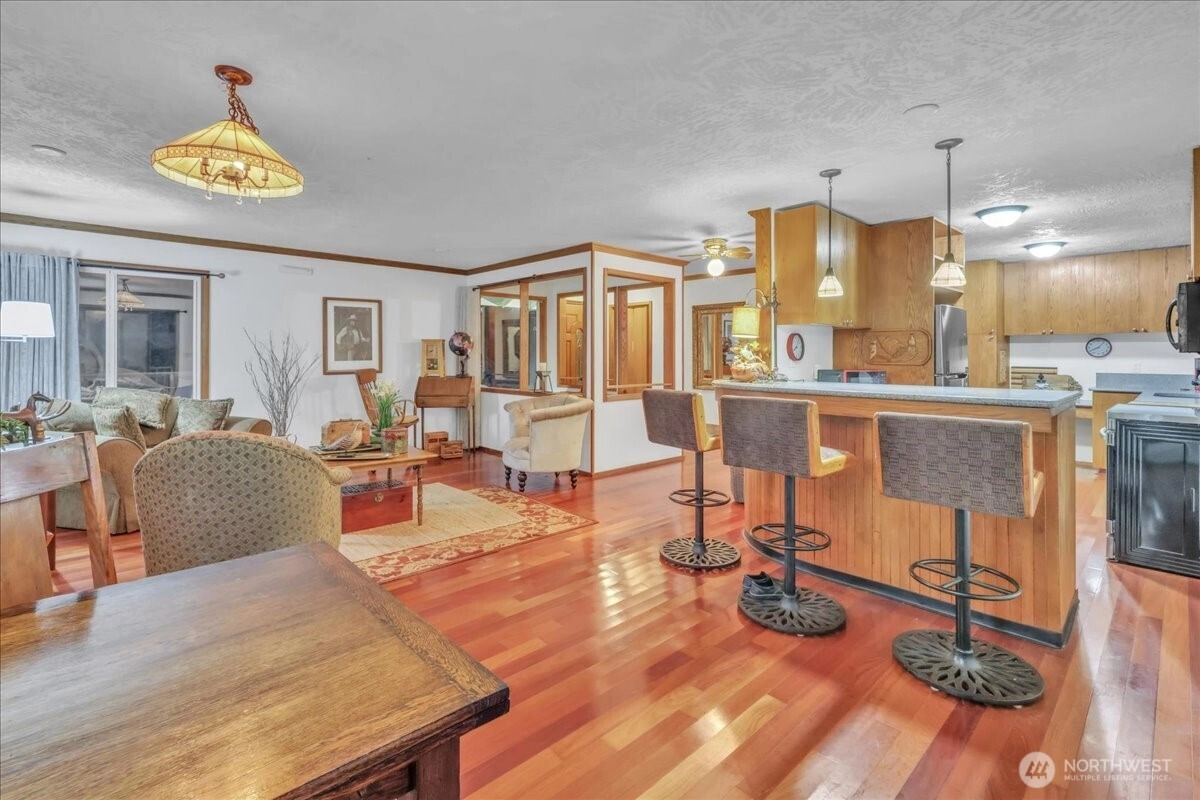 Welcome home to your private retreat on Bingham Creek! This 2 bedroom, 1.5 bath home lives large at over 1900 Sq Ft of interior light filled living space. The daylight basement offers lots of possibilities for multi-gen living or a rental. Piped for a kitchen W/ it's own entrance. Double lot lot was combine to 1. Development potential & possible value in timber. Detached garage w/ power & storage shed. Custom chef's kitchen w/ solid-surface countertops & beautiful wood finished breakfast bar. Views galore! Enjoy the beautiful landscaping & patio overlooking creek. All new appliances! Fresh interior paint throughout the whole house. Lots of other updates to appreciate. Don't miss the opportunity for affordable home ownership in Elma!