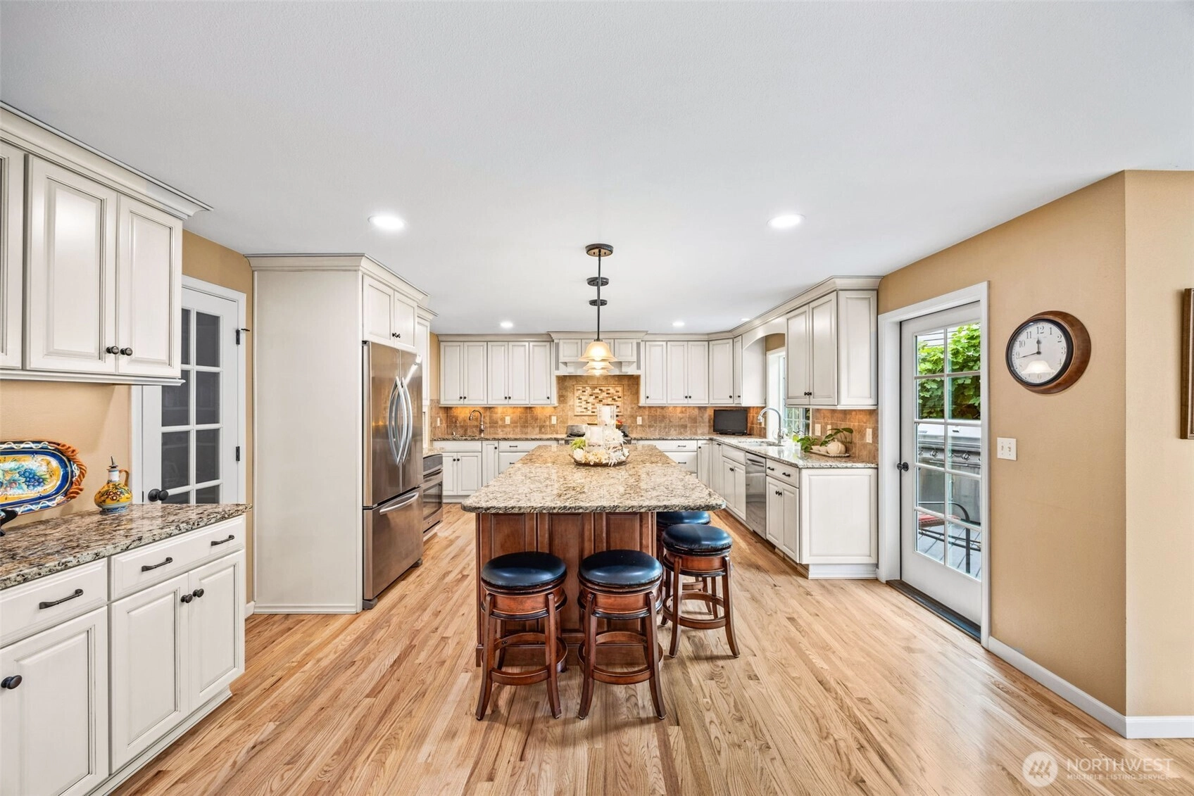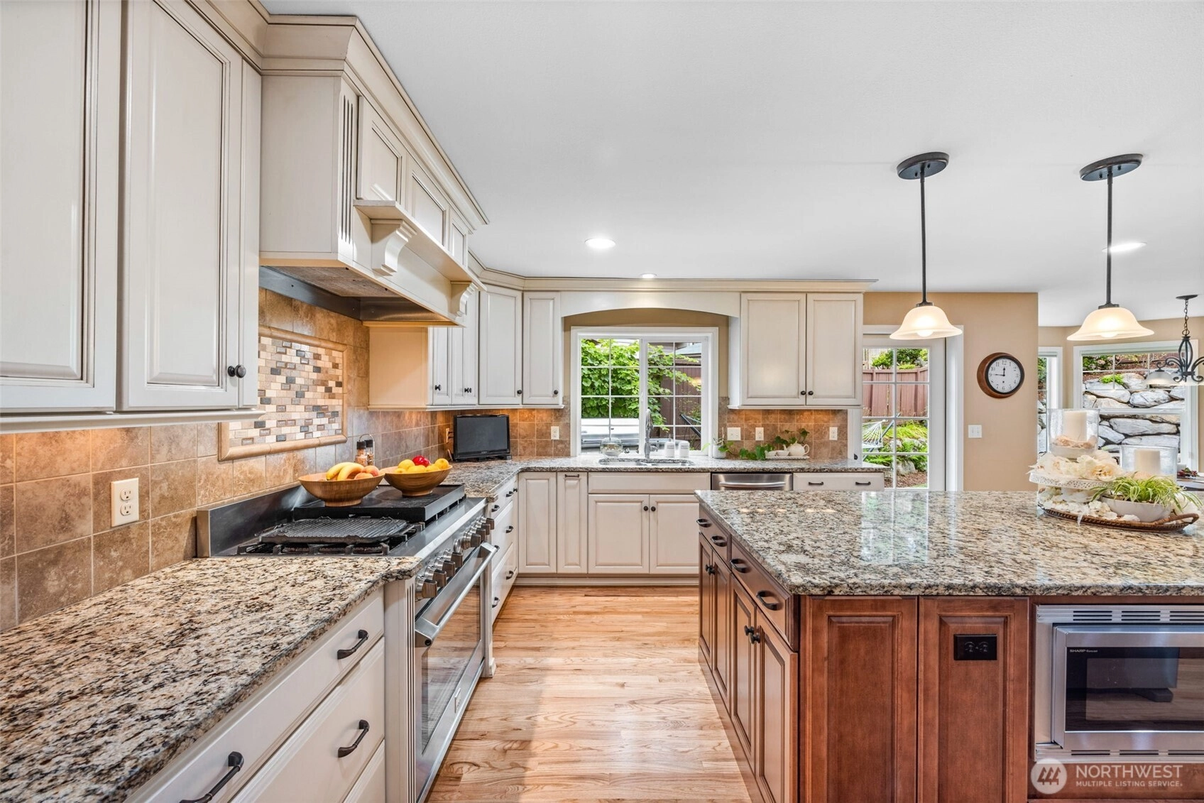 Welcome to this stunning Auburn West Hill home, easy access to HWY 167, I-5, and the new light rail station! A true Chef’s kitchen features a gas range, dual pantries, and an expansive island, true heart of the home for gathering. Hardwoods flow through the kitchen, family room, entry, and bonus room. Enjoy outdoor living with a private sport court, expansive deck, and secluded patio. Central A/C and generator for year-round comfort. The spacious primary suite impresses with a remodeled bath, dual closets, and a spa shower with dual fixtures. Flexible ADU potential features kitchenette, living room, bedroom, and bath. A freshly painted exterior, stately brick details, lush landscaping, and a 3-car garage complete this exceptional property.