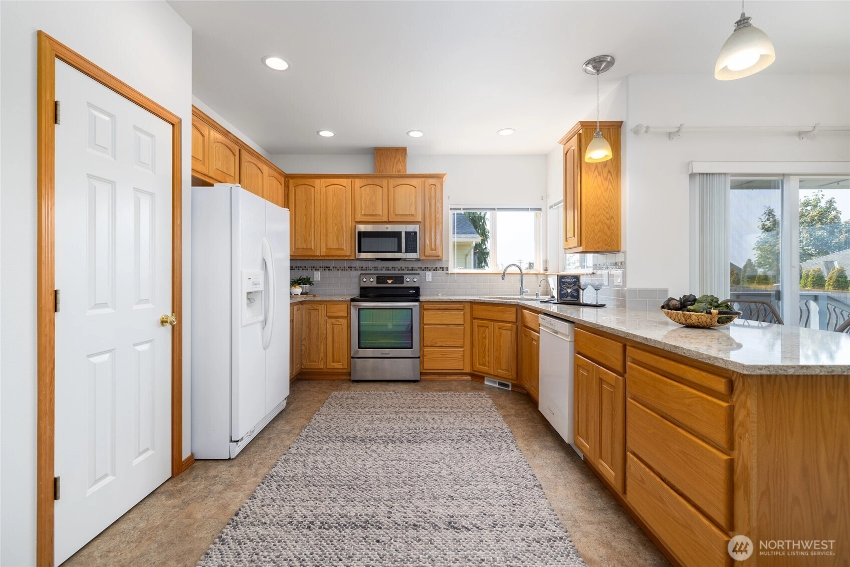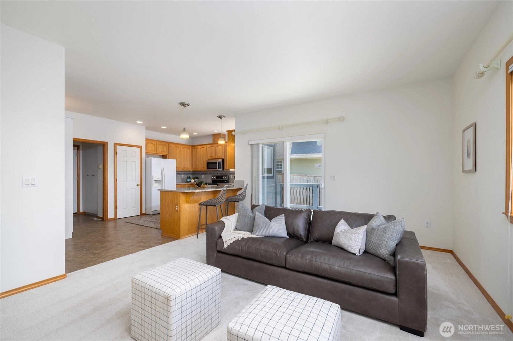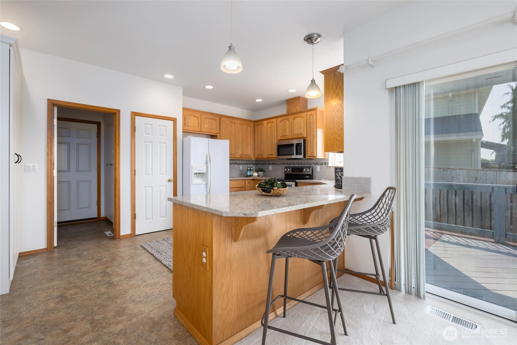 Meticulously maintained rambler in the tranquil and pristine Candle Ridge neighborhood, with scenic walking trails and parks. Enjoy the morning sun and spectacular sunsets with peek-a-boo views of Skagit Bay and the Olympics out of your kitchen, living room, family room and expansive primary suite. Beautiful picture windows stream in natural light throughout the home. Fresh paint, new carpet, and the owner’s careful living, make this home feel new inside. The new deck is perfect for a hot tub or outdoor living/entertaining space. Fully fenced back yard, walk-in tile shower, AC. Easy access to the delightful downtown Stanwood, coastal and mountain activities and I-5. This is a must see!